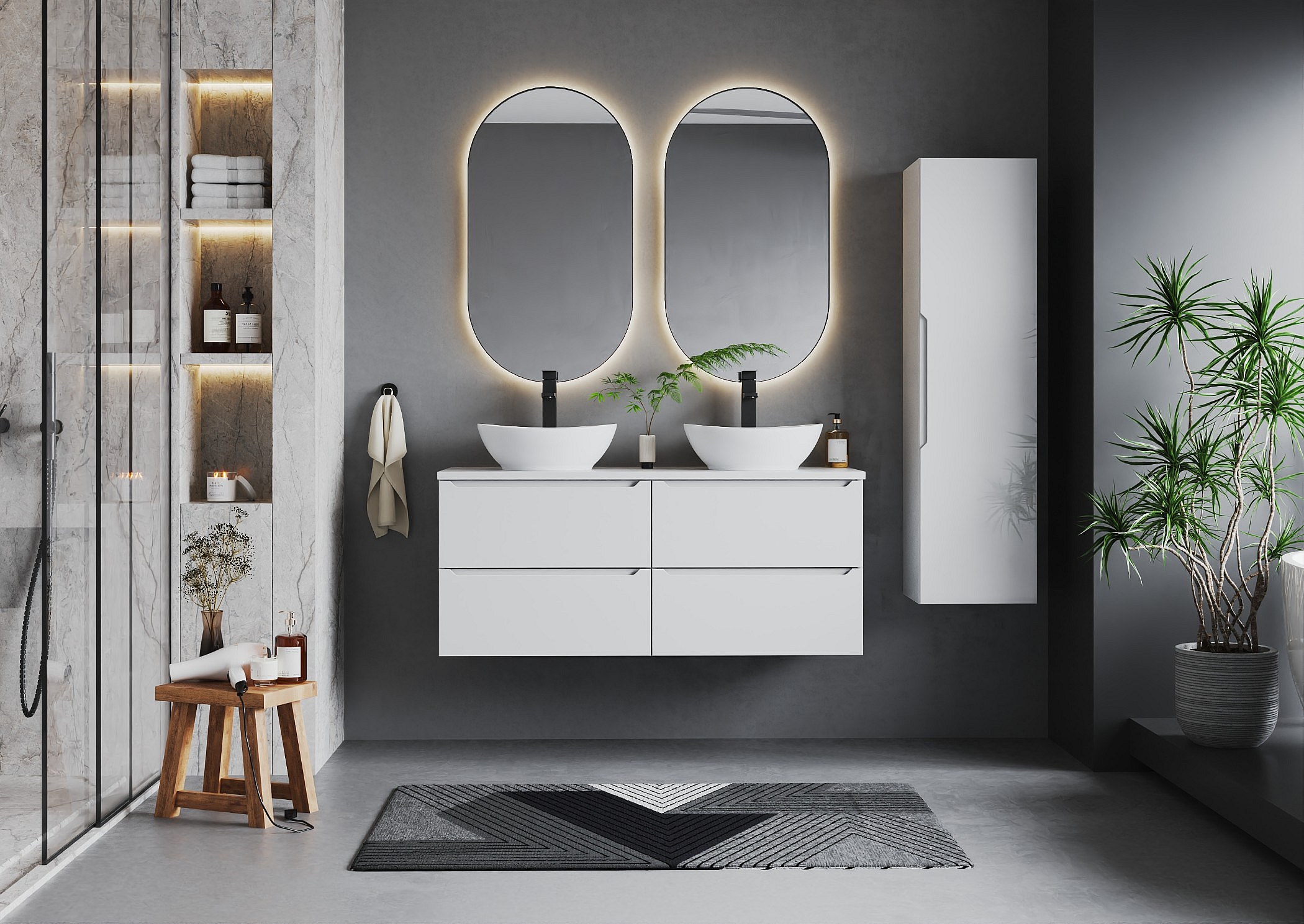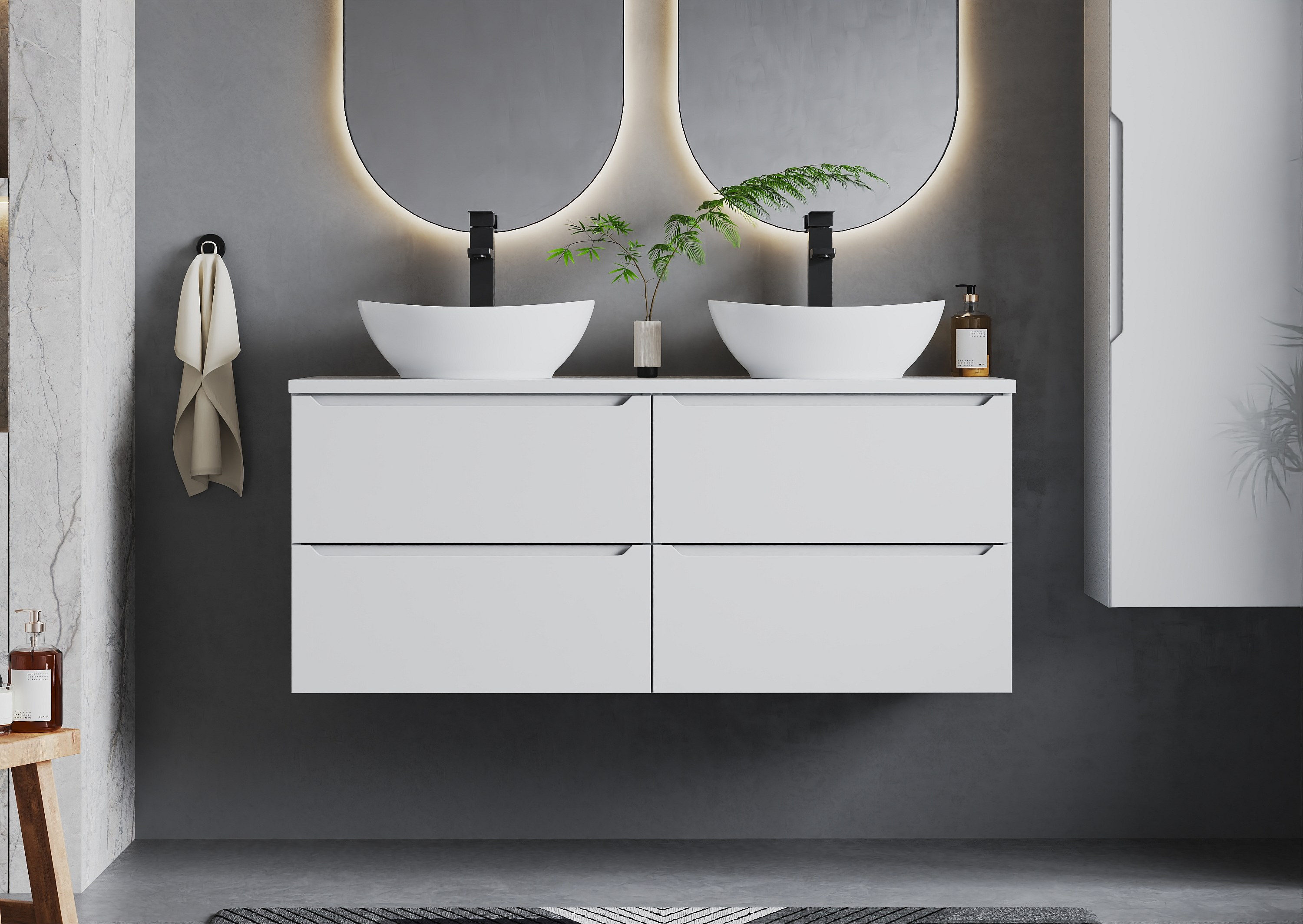 Ensemble de salle de bain blanc 120 cm Armoire Plan de travail Lavabo Etna