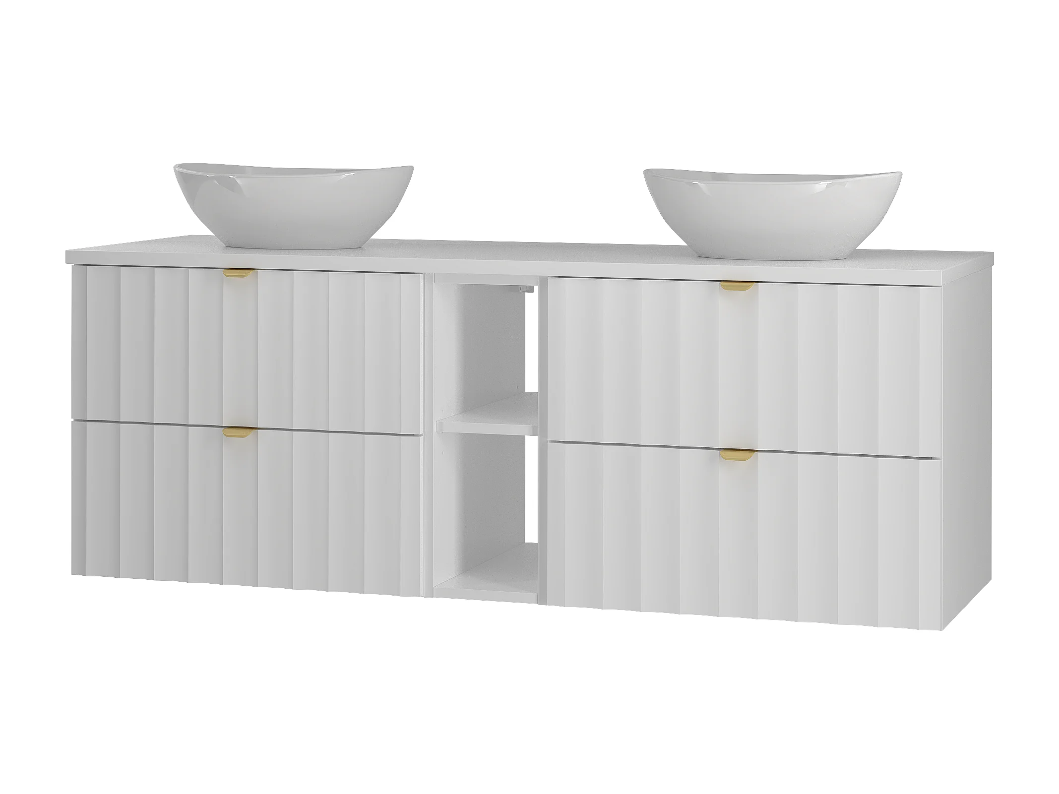 Ensemble de salle de bain blanc 140 cm Armoire avec plateau Étagère Lavabo Façades rainurées Arcos