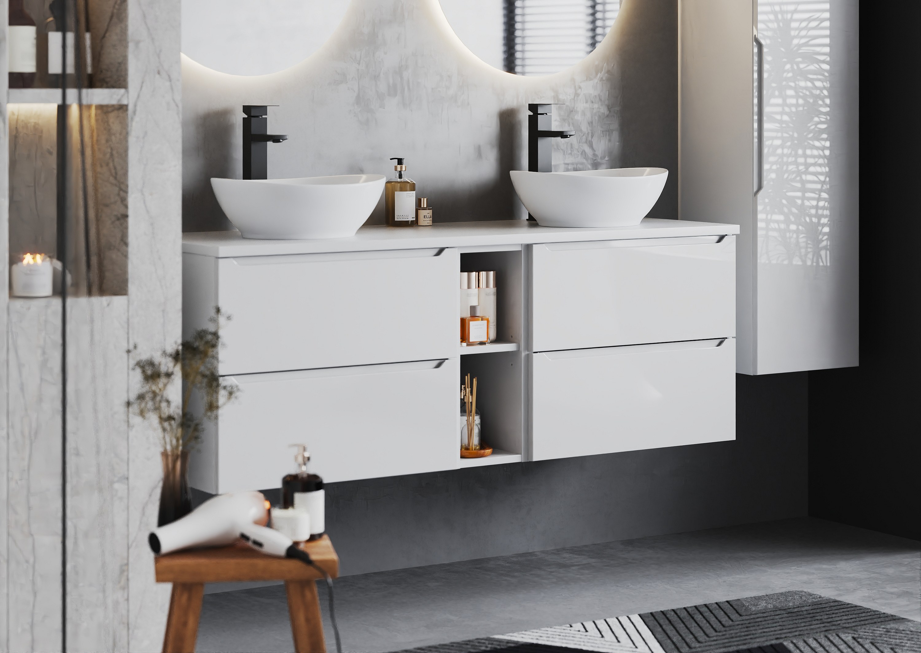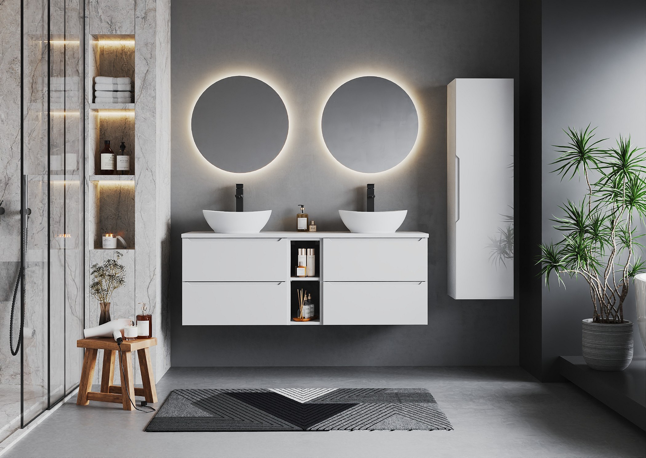 Ensemble de salle de bain blanc 140 cm Armoire Étagère Plan de travail Lavabo Etna