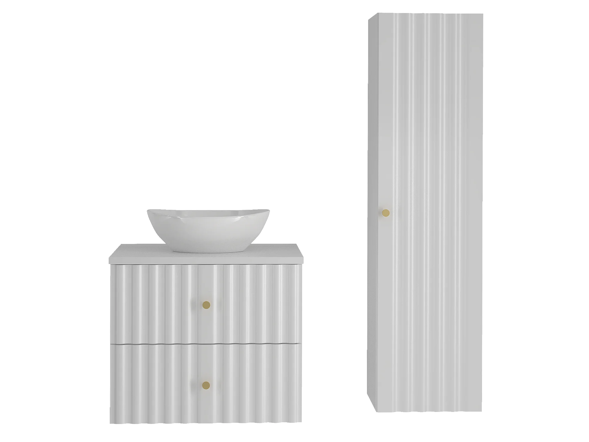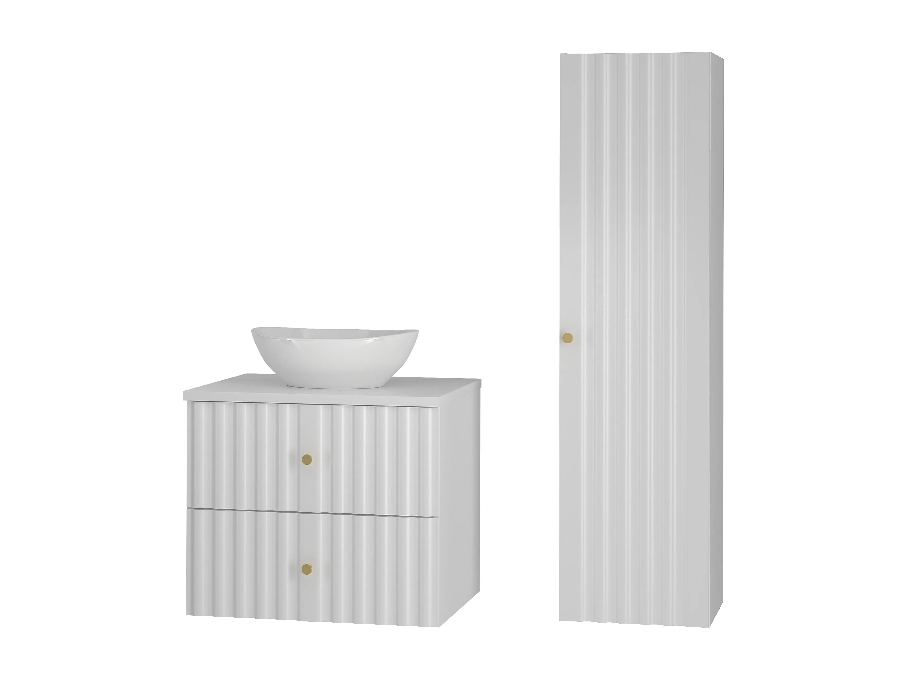 Ensemble de salle de bain blanc 60 cm Armoire avec plan de travail Lavabo Colonne Façades rainurées Aqua