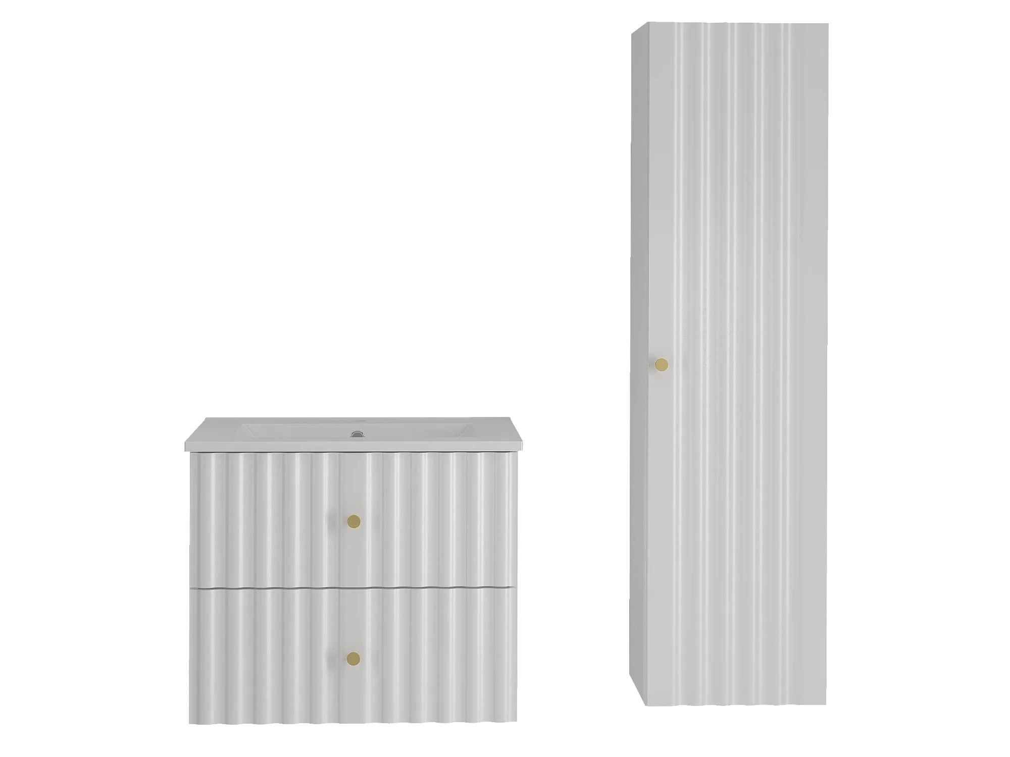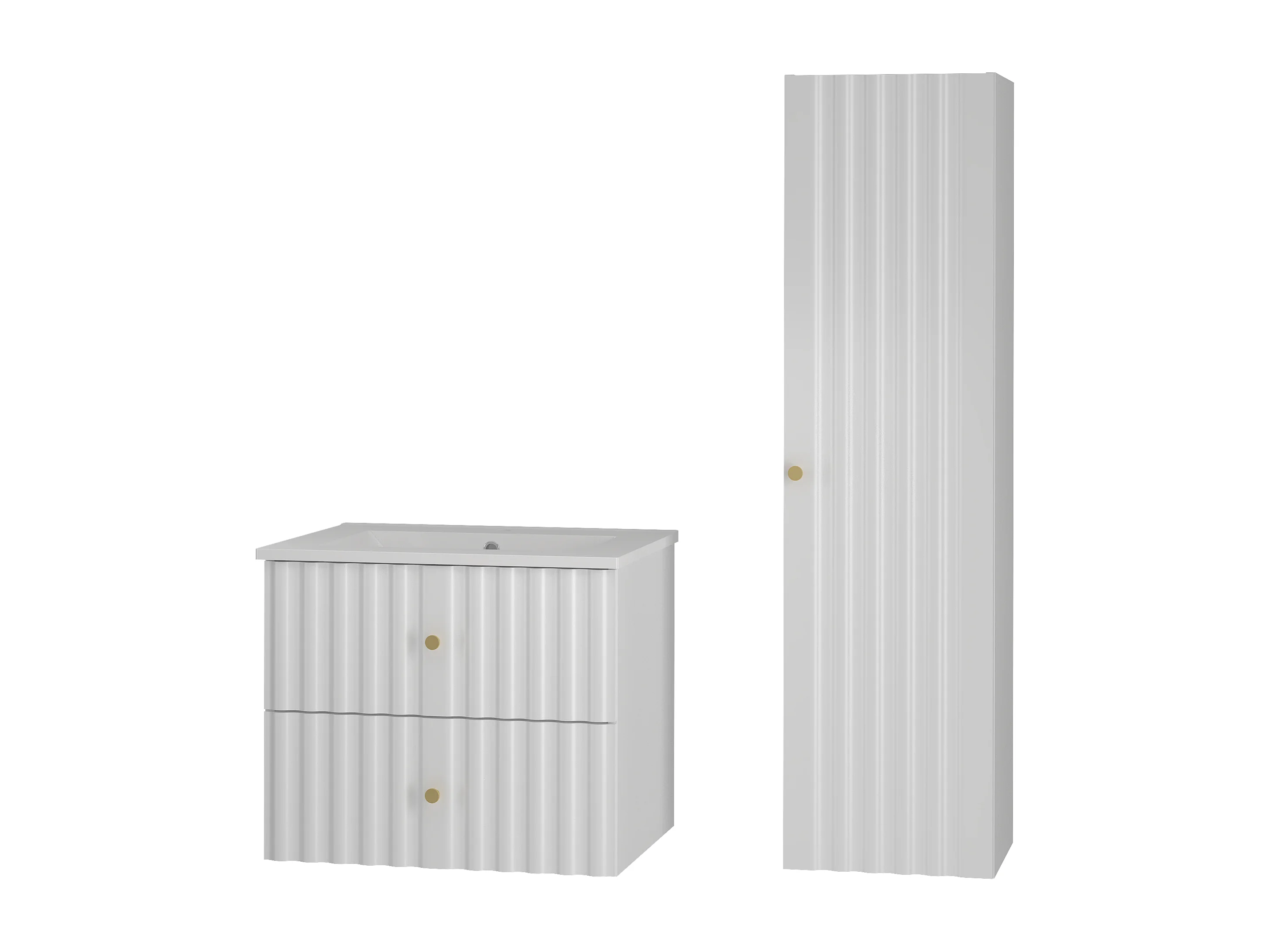 Ensemble de salle de bain blanc 60 cm Meuble avec lavabo Colonne Façades rainurées Aqua