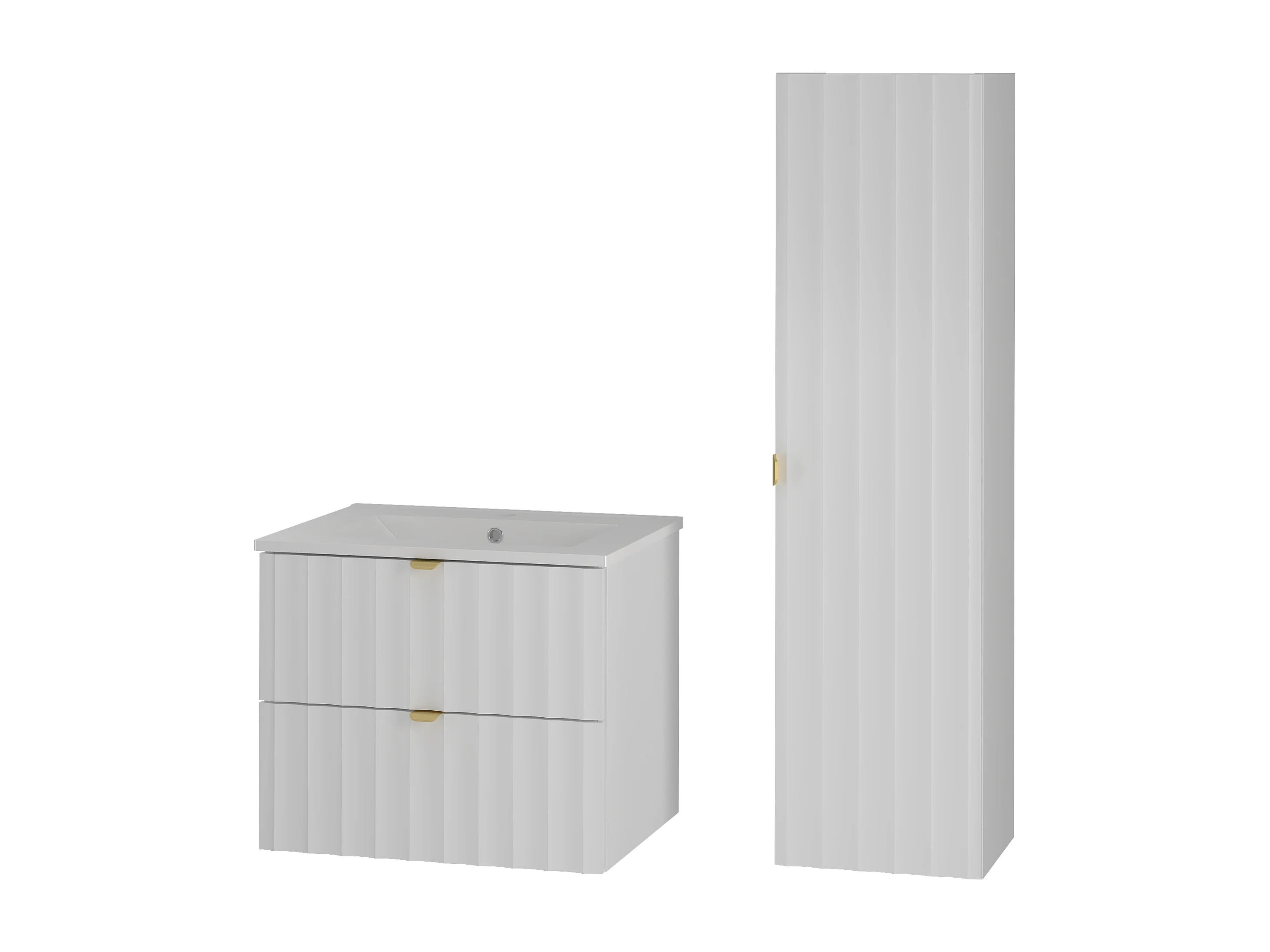 Ensemble de salle de bain blanc 60 cm Meuble avec lavabo Colonne Façades rainurées Arcos