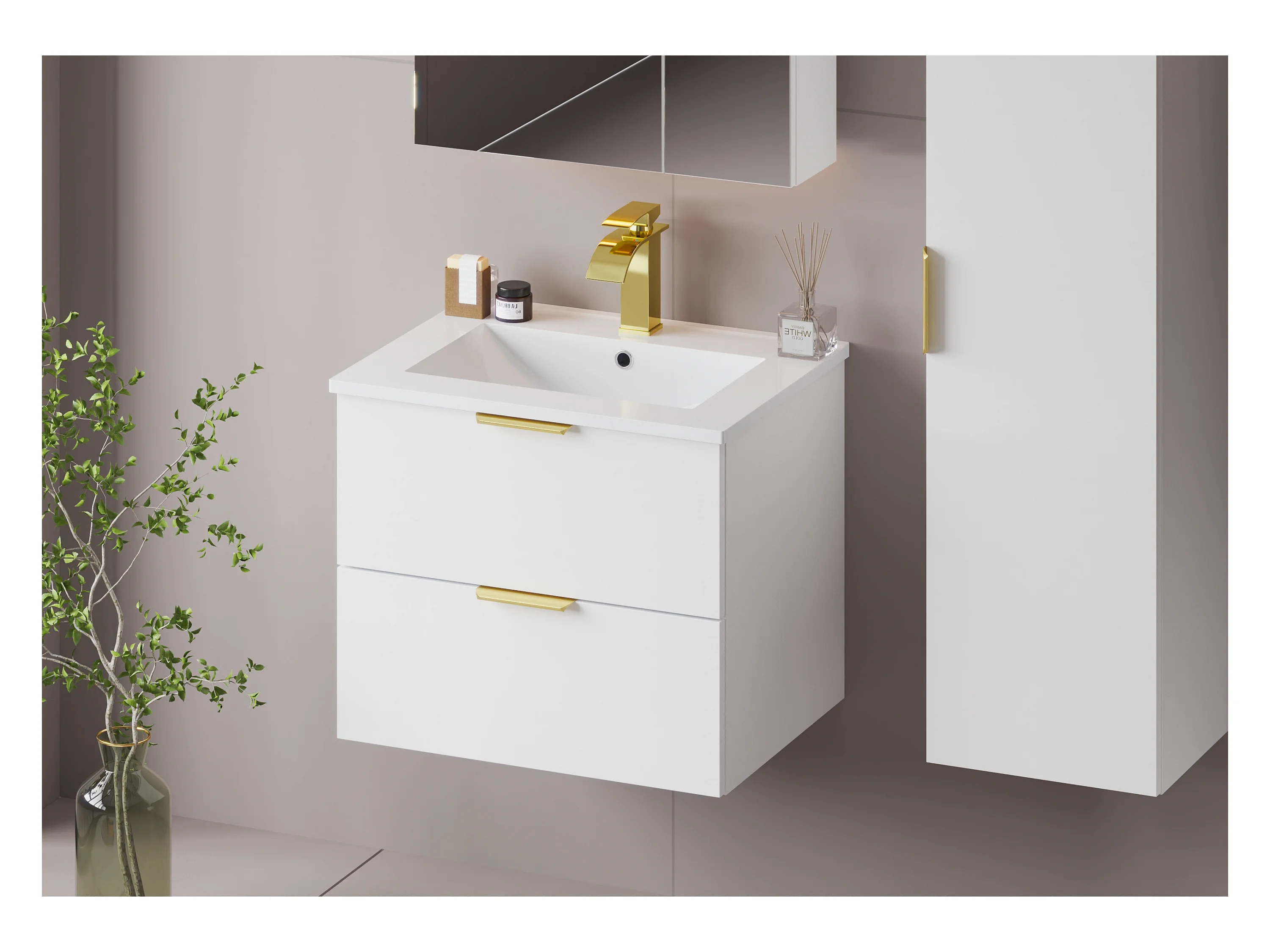 Ensemble blanc pour salle de bain 60 cm Meuble avec plan de travail Lavabo Marco