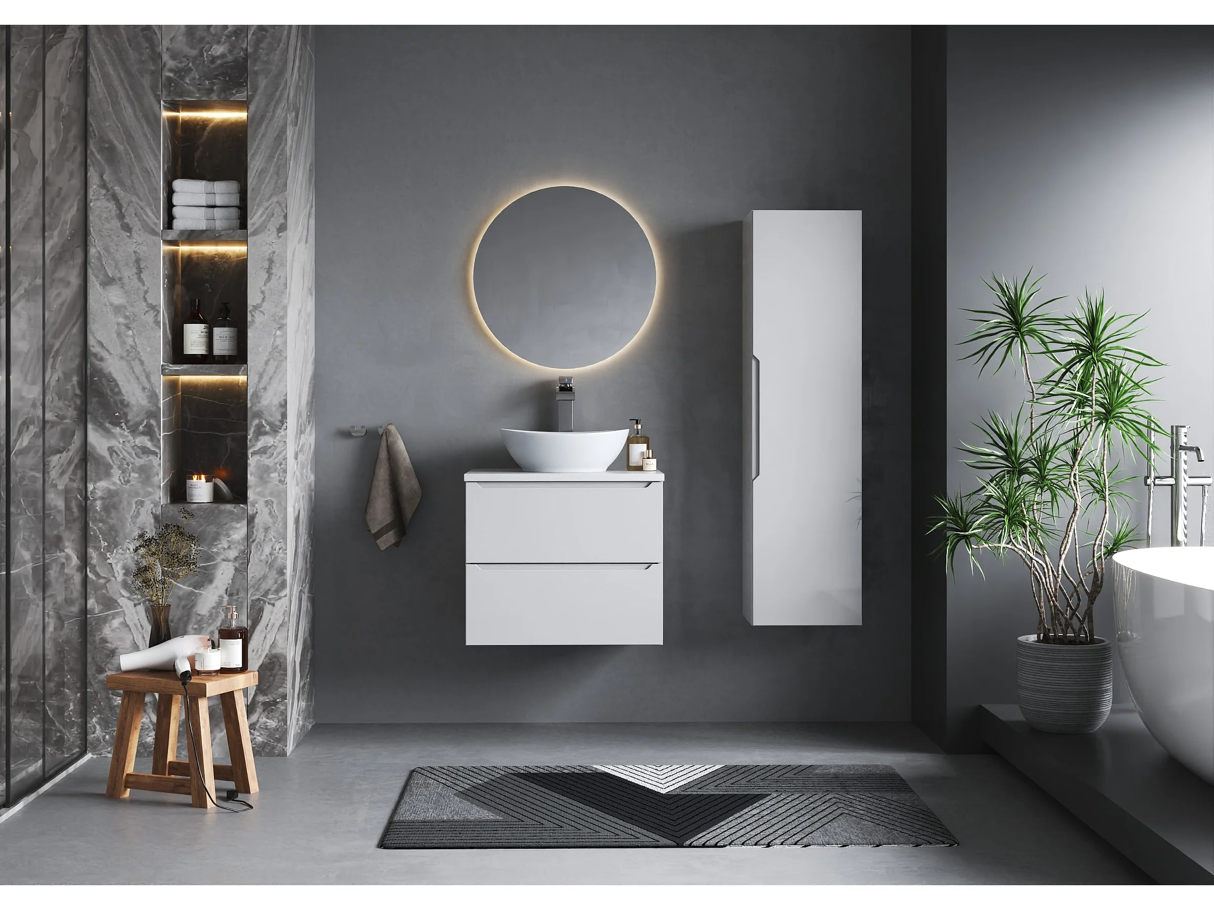 Ensemble blanc pour salle de bain 60 cm Meuble avec plan de travail Lavabo Marco