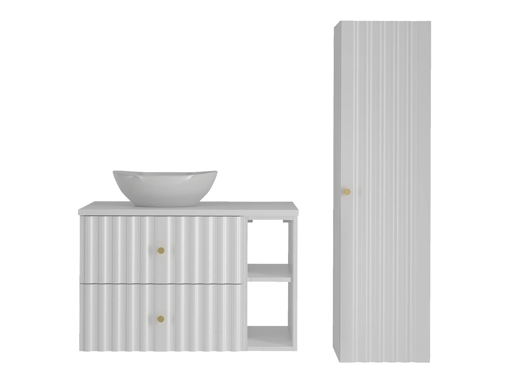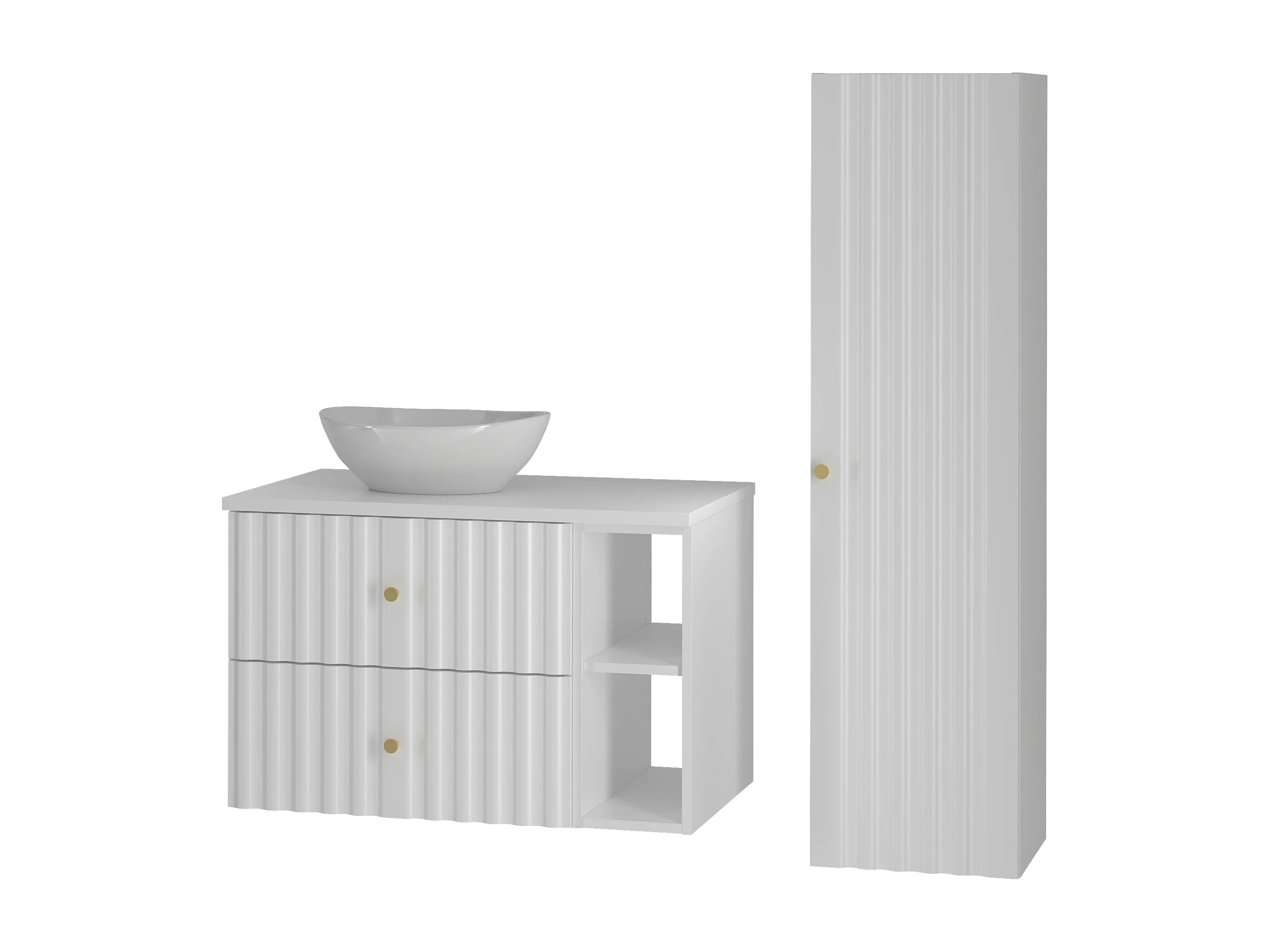 Ensemble de salle de bain blanc 80 cm Armoire avec plan de travail Lavabo Étagère Colonne Façades rainurées Aqua