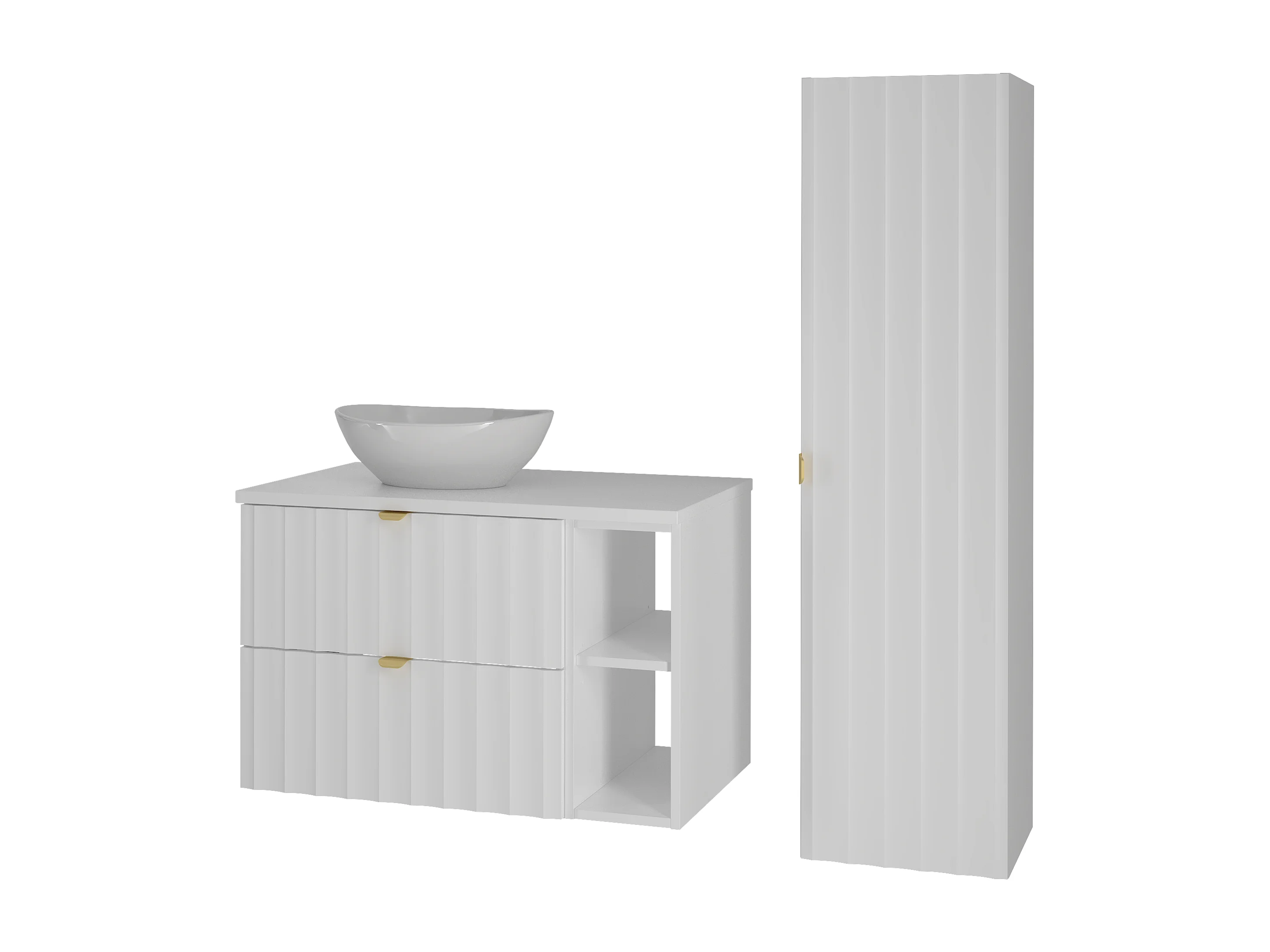 Ensemble de salle de bain blanc 80 cm Armoire avec plateau Étagère Lavabo Colonne Façades rainurées Arcos