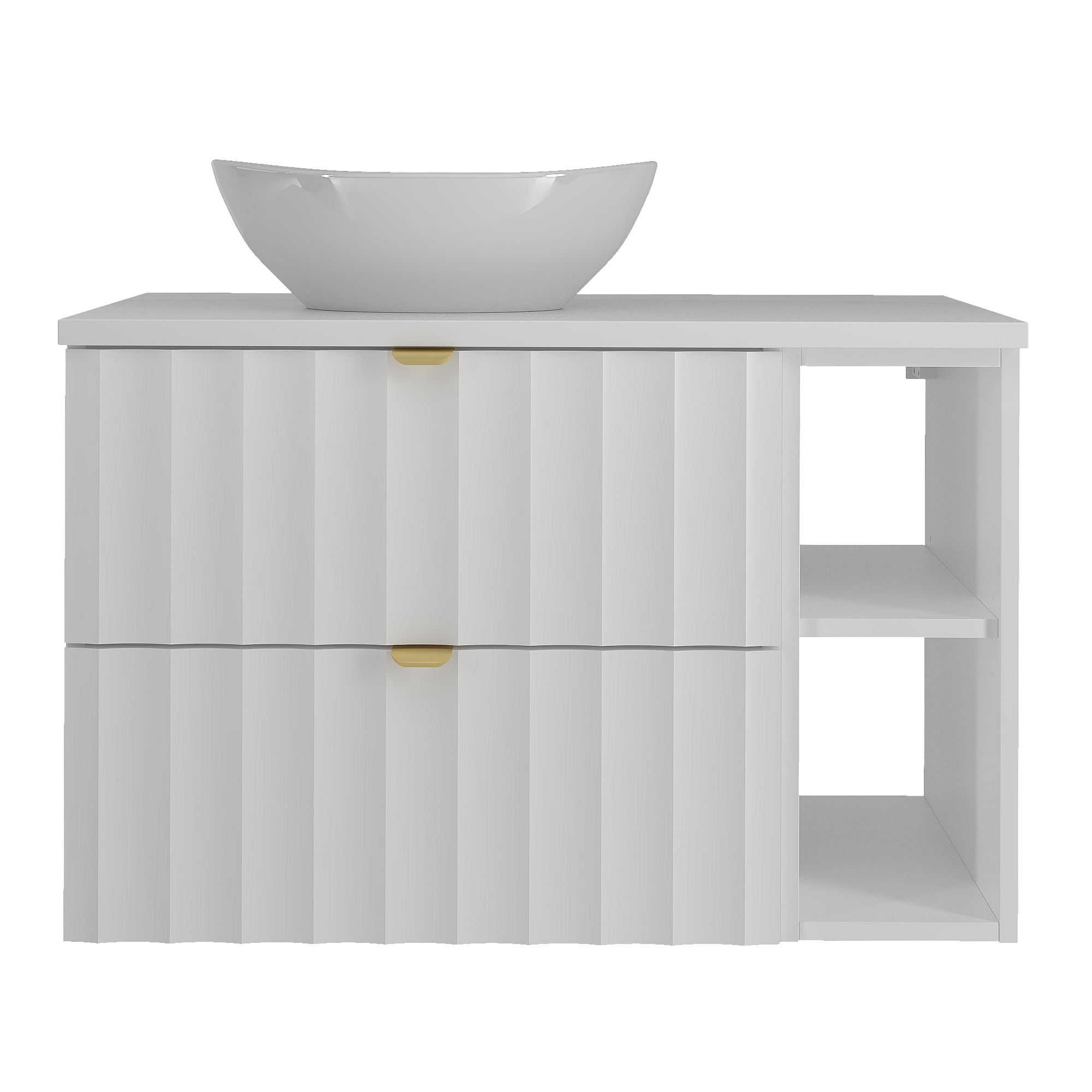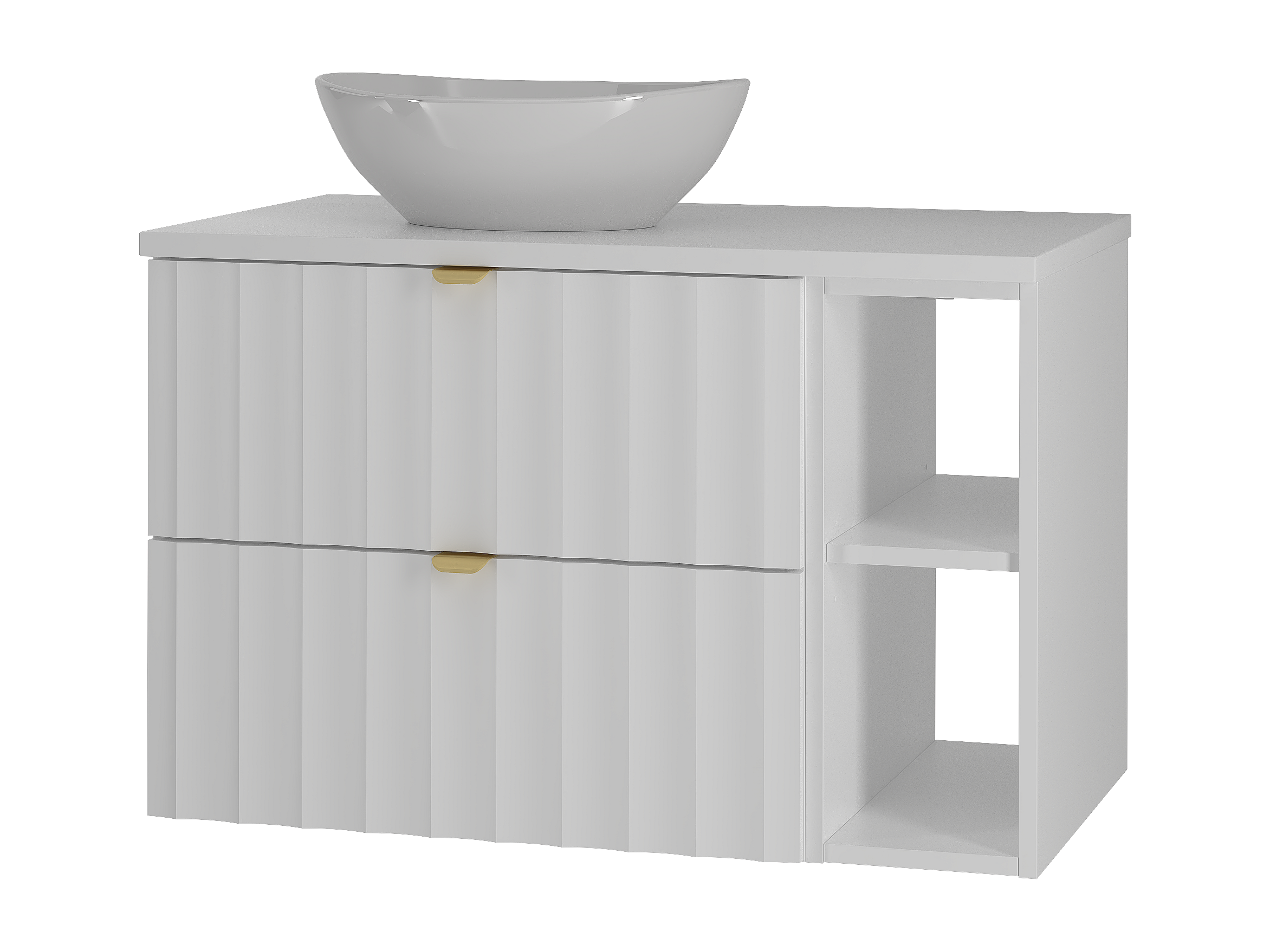 Ensemble de salle de bain blanc 80 cm Armoire avec plateau Étagère Lavabo Façades rainurées Arcos