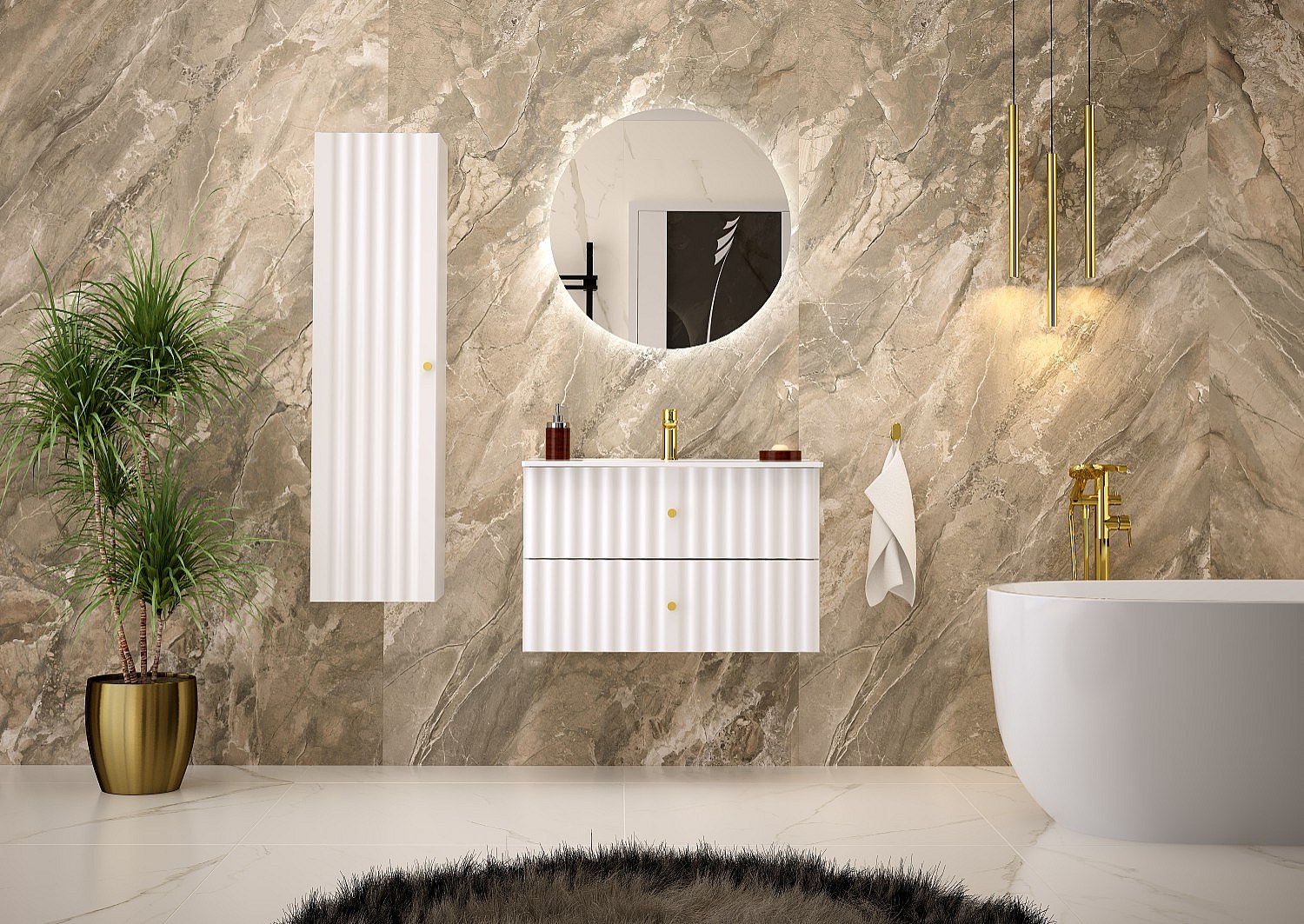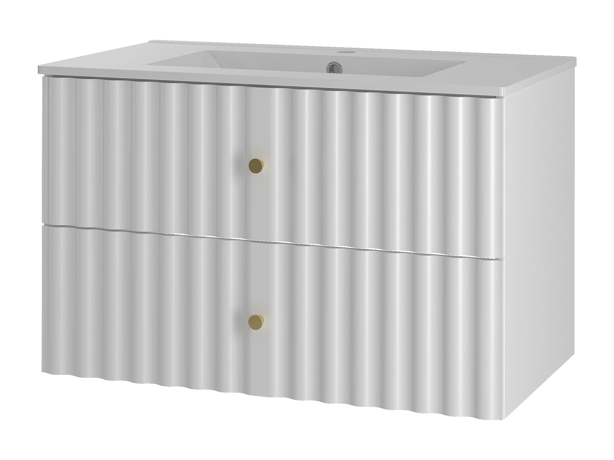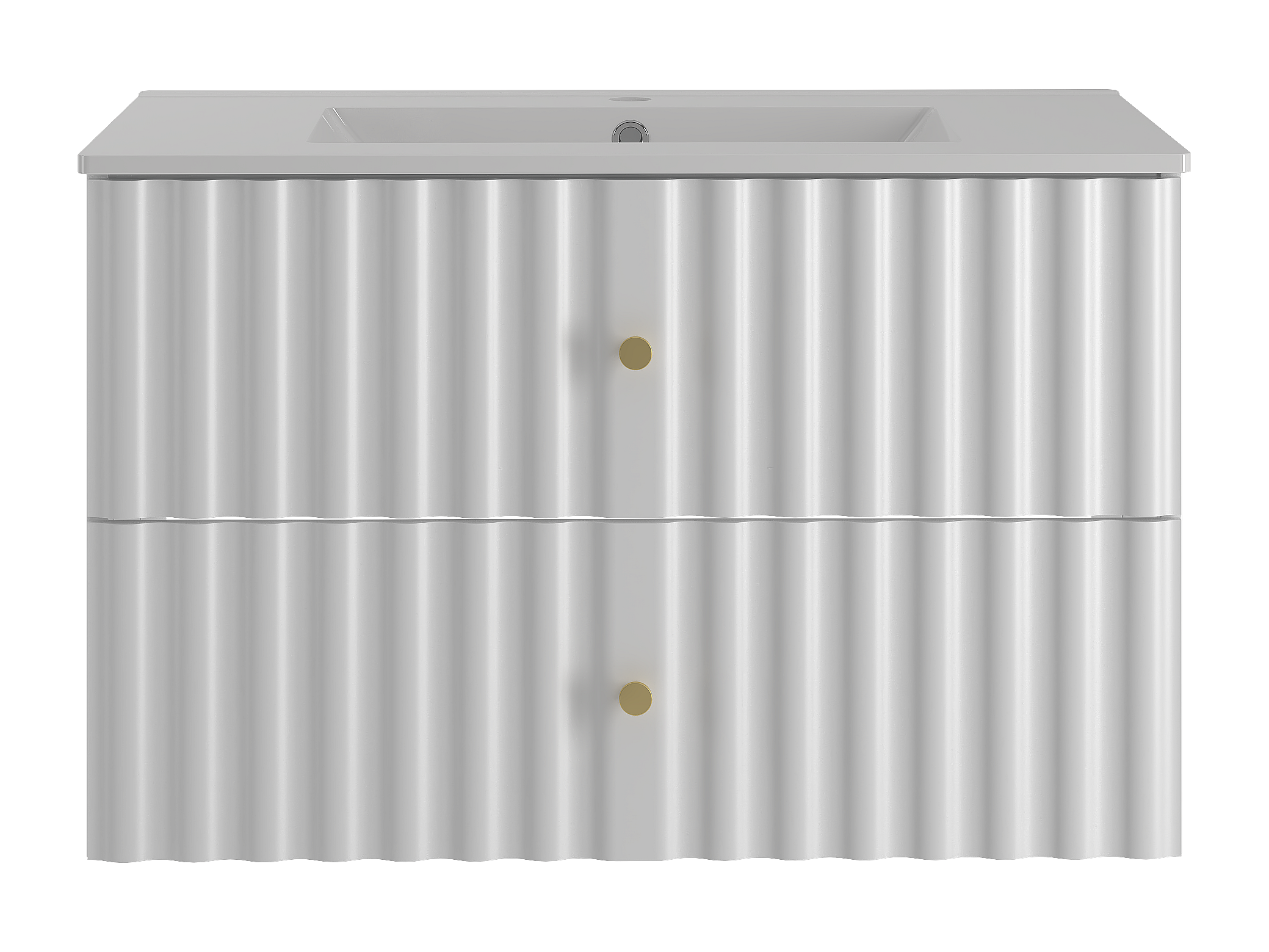 Ensemble de salle de bain blanc 80 cm Meuble avec lavabo Façades rainurées Aqua