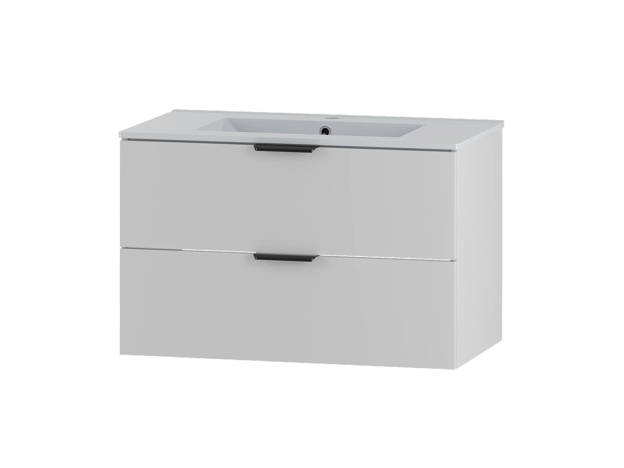 Ensemble de salle de bain blanc 80 cm Armoire avec plan de travail et lavabo Façades rainurées Aqua
