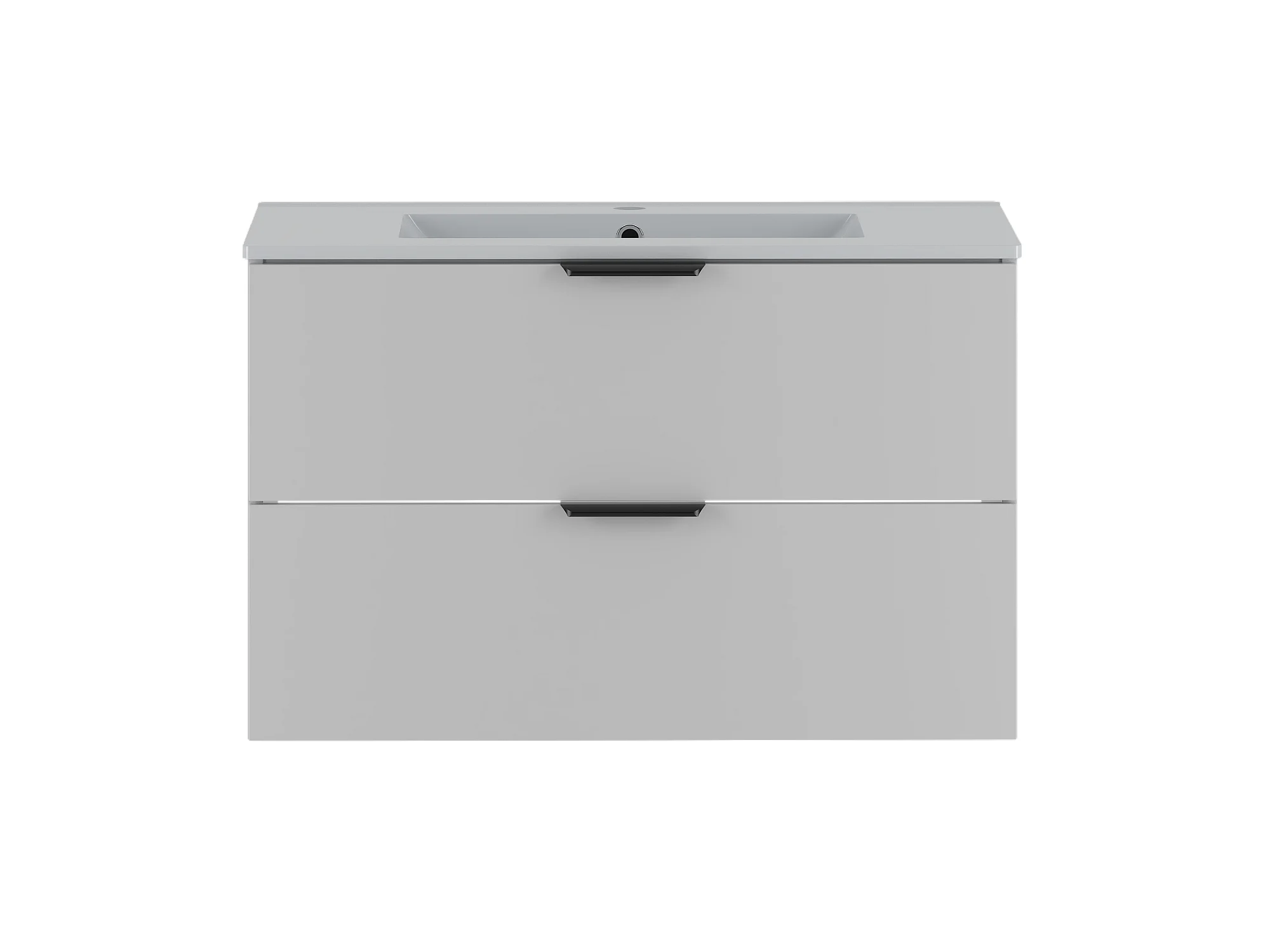 Ensemble de salle de bain blanc 80 cm Meuble avec plan de travail Lavabo Façades rainurées Arcos