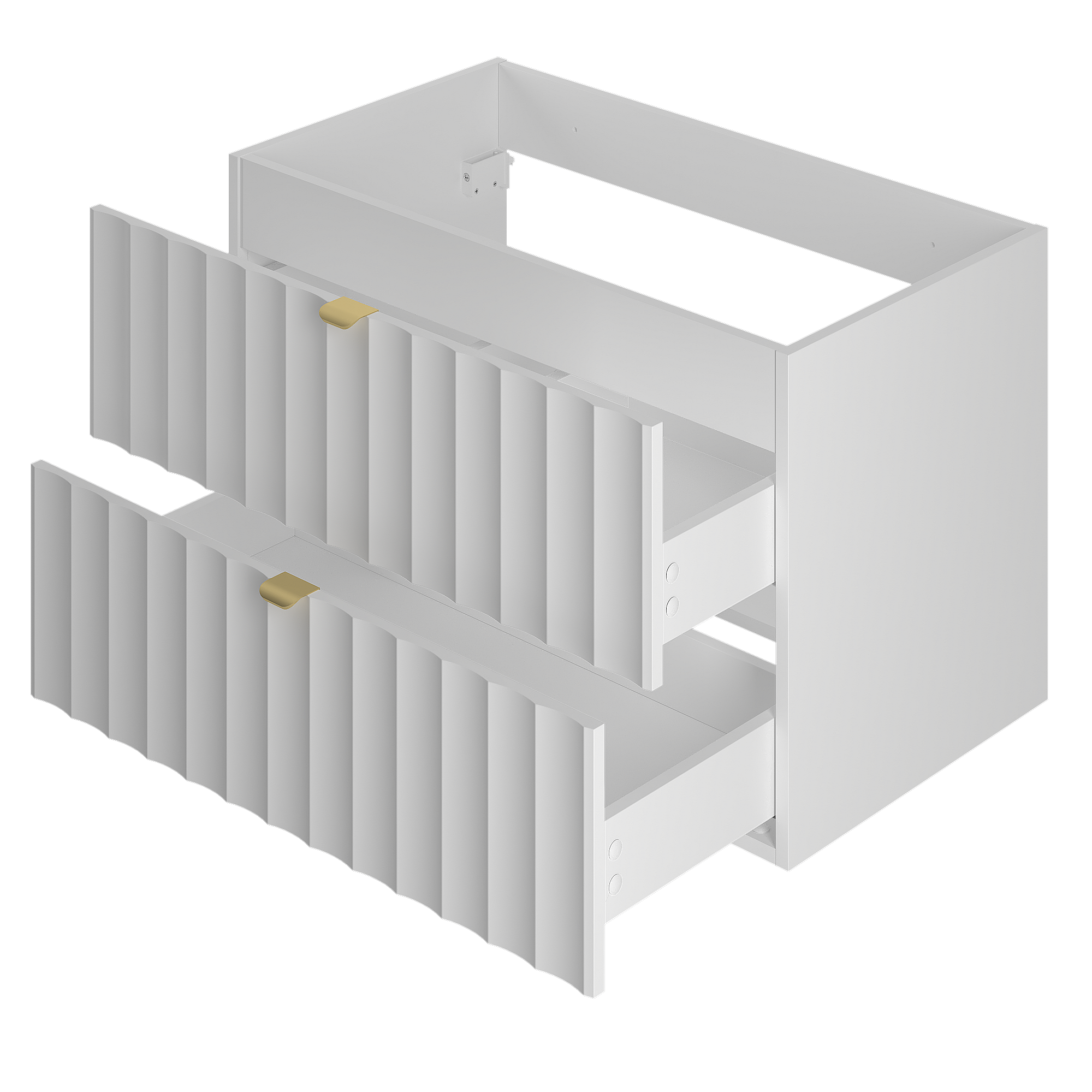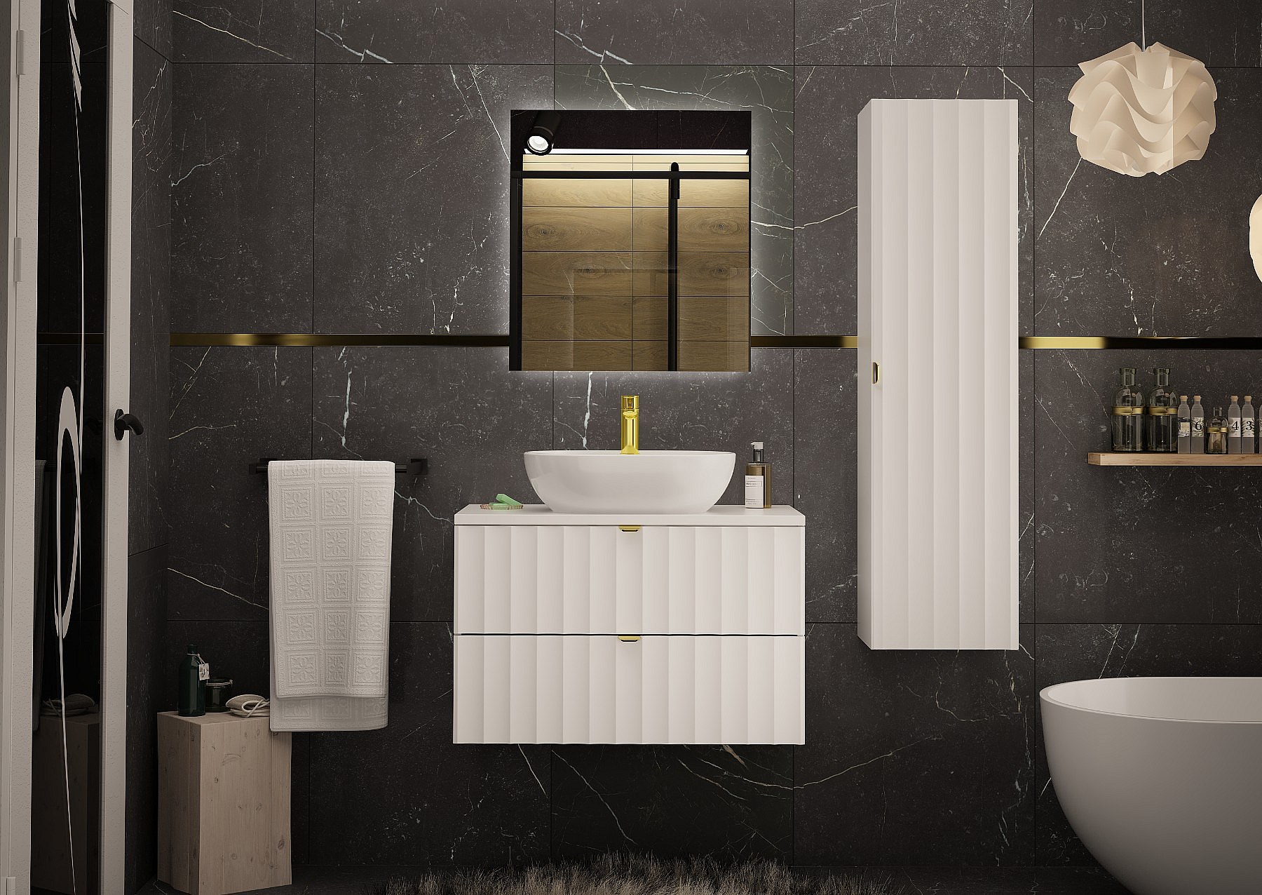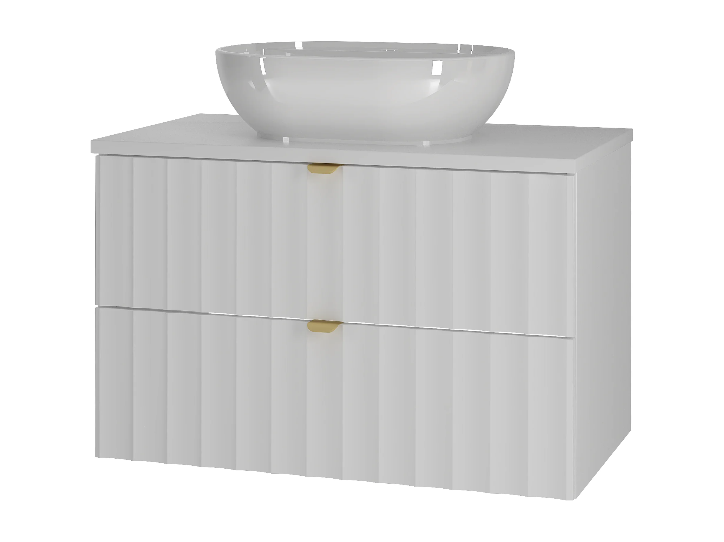Ensemble de salle de bain blanc 80 cm Meuble avec plan de travail Lavabo Façades rainurées Arcos