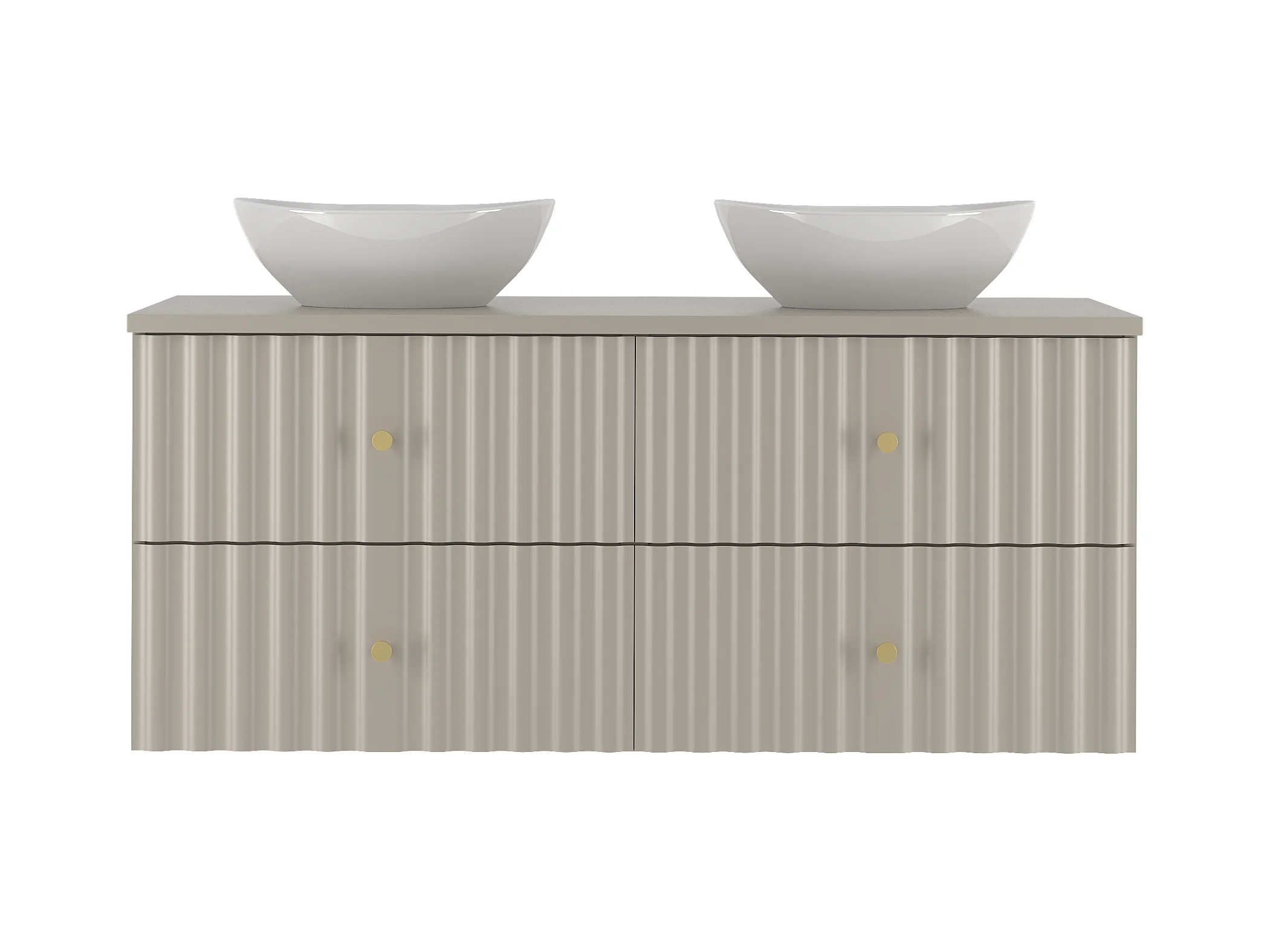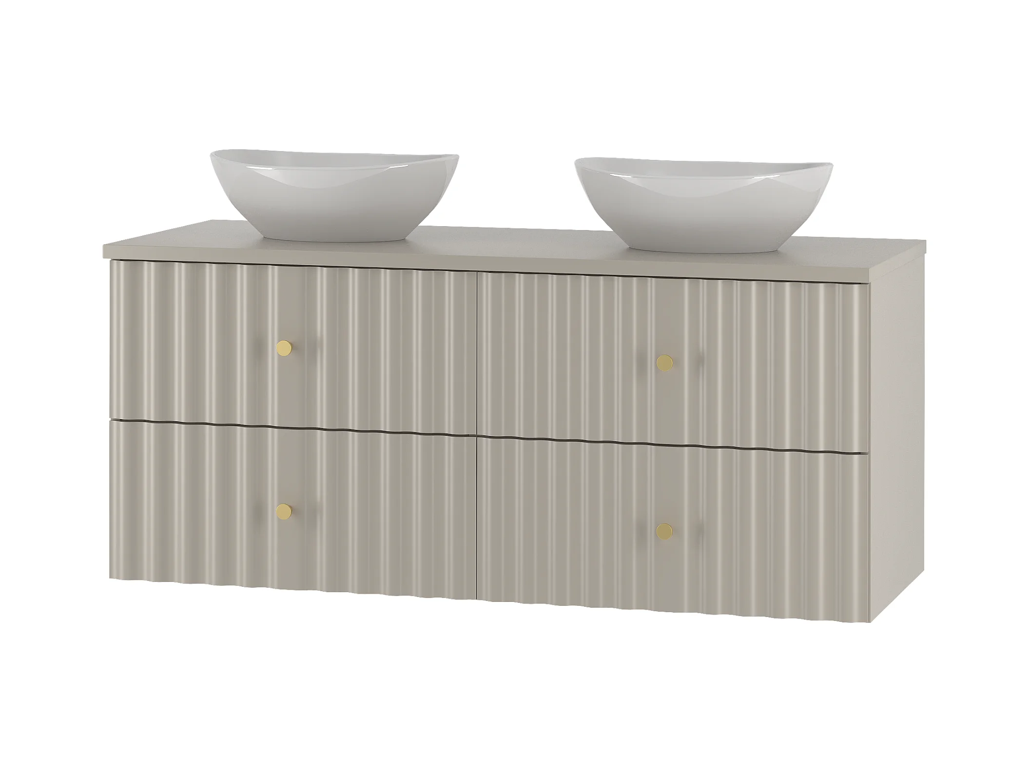Ensemble de salle de bain en cachemire 120 cm Armoire avec plan de travail Lavabo Façades rainurées Aqua