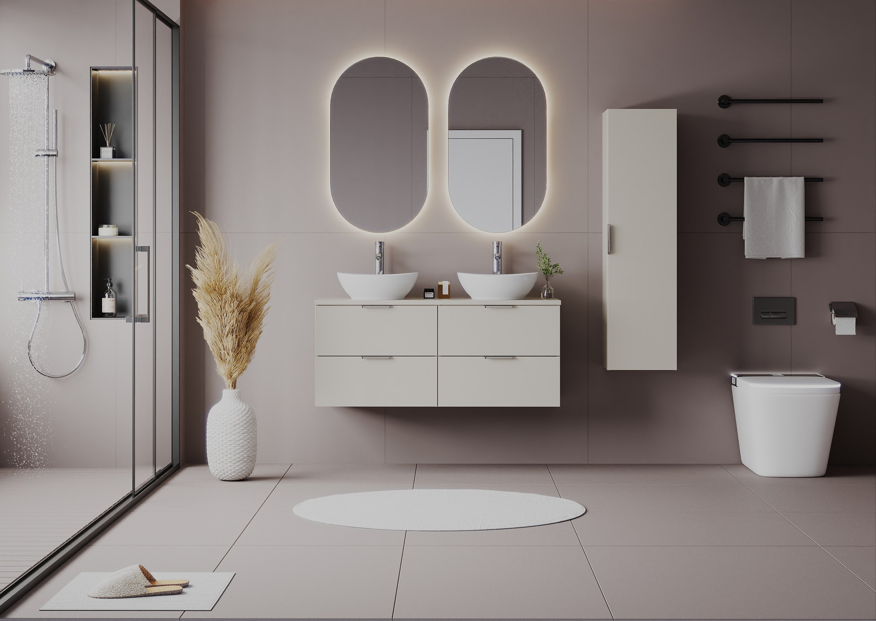 Ensemble de salle de bain en cachemire 120 cm Armoire Plan de travail Lavabo Pile
