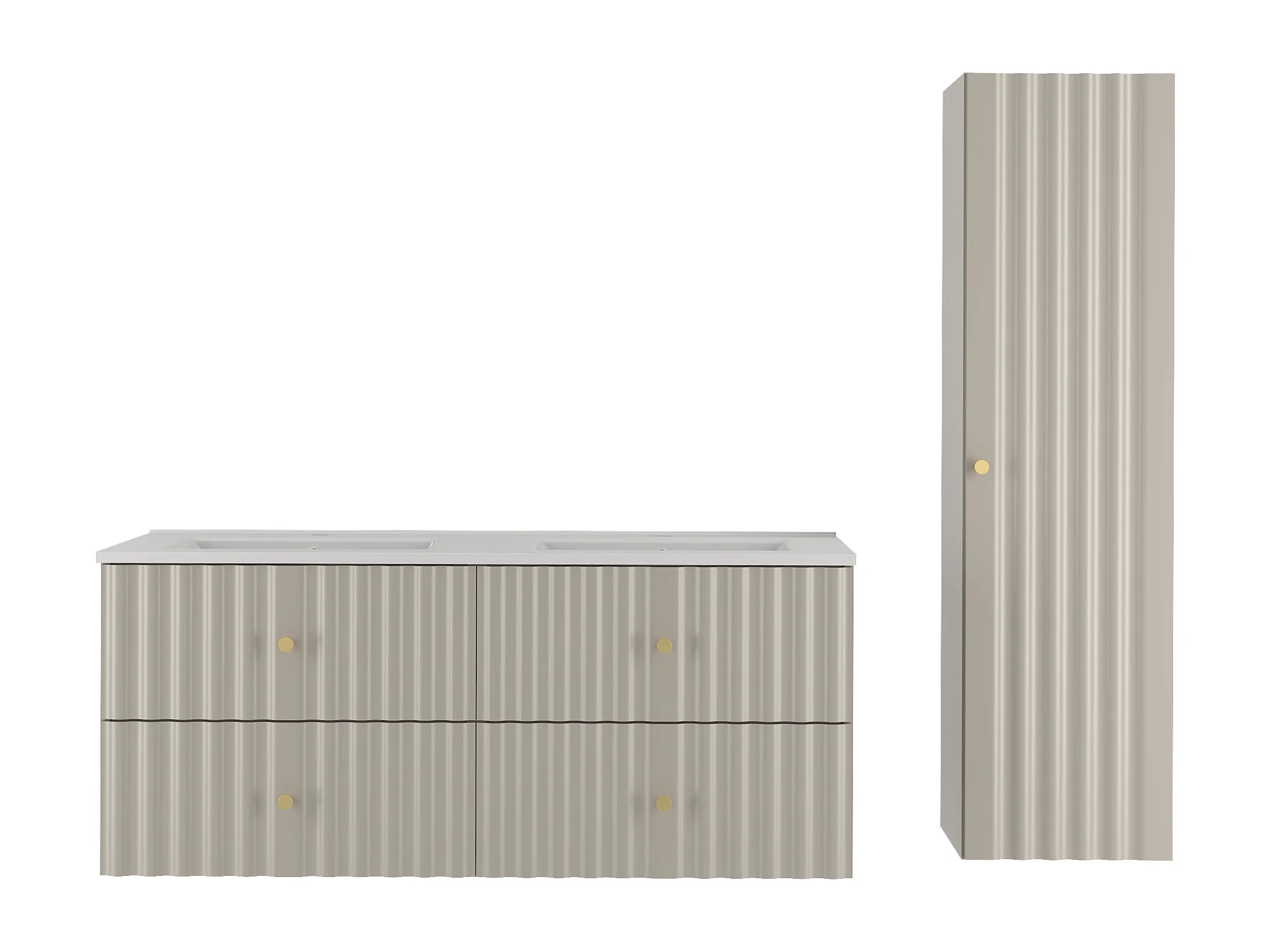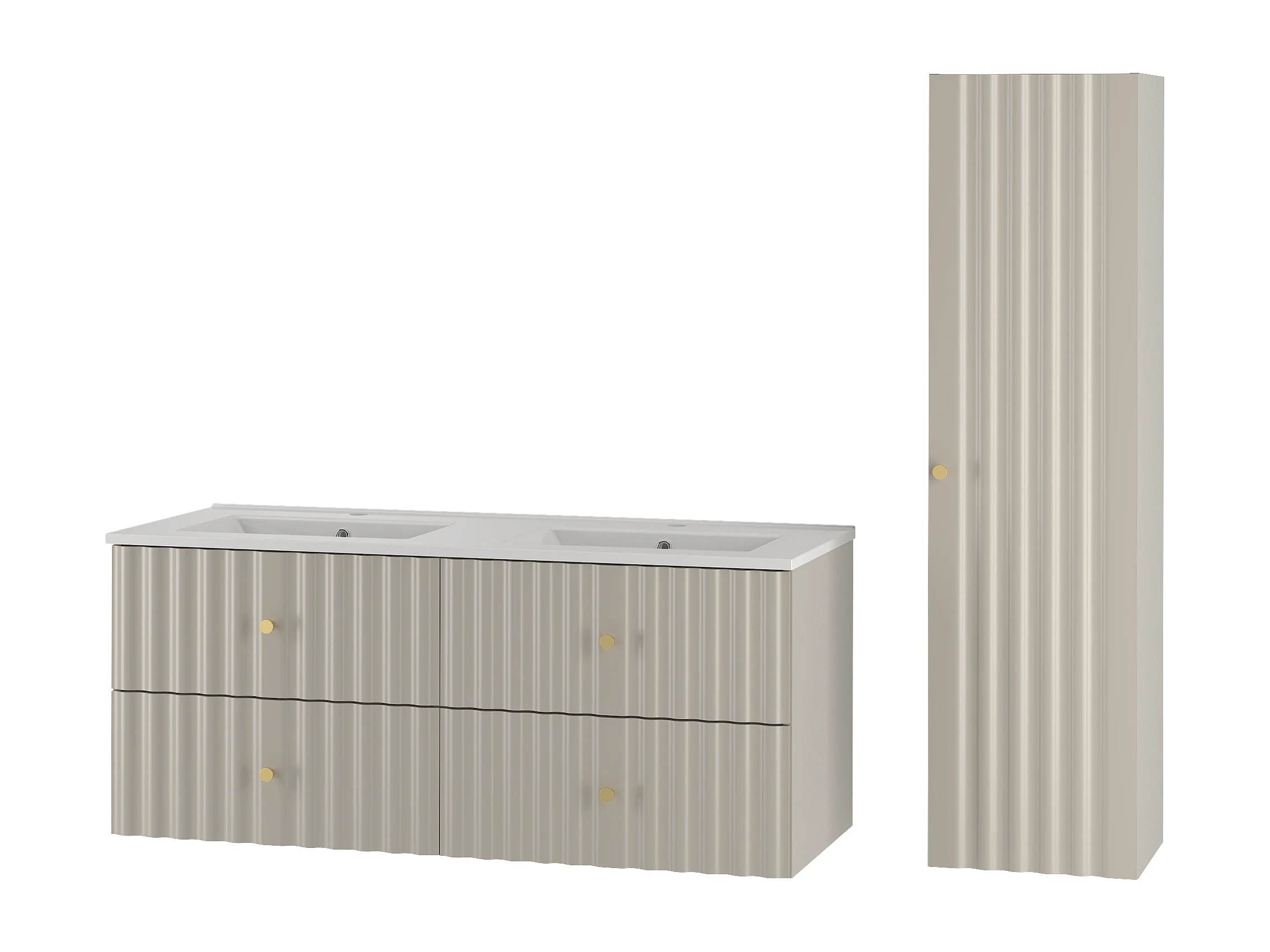 Ensemble de salle de bain en cachemire 120 cm Meuble avec lavabo Colonne Façades rainurées Aqua