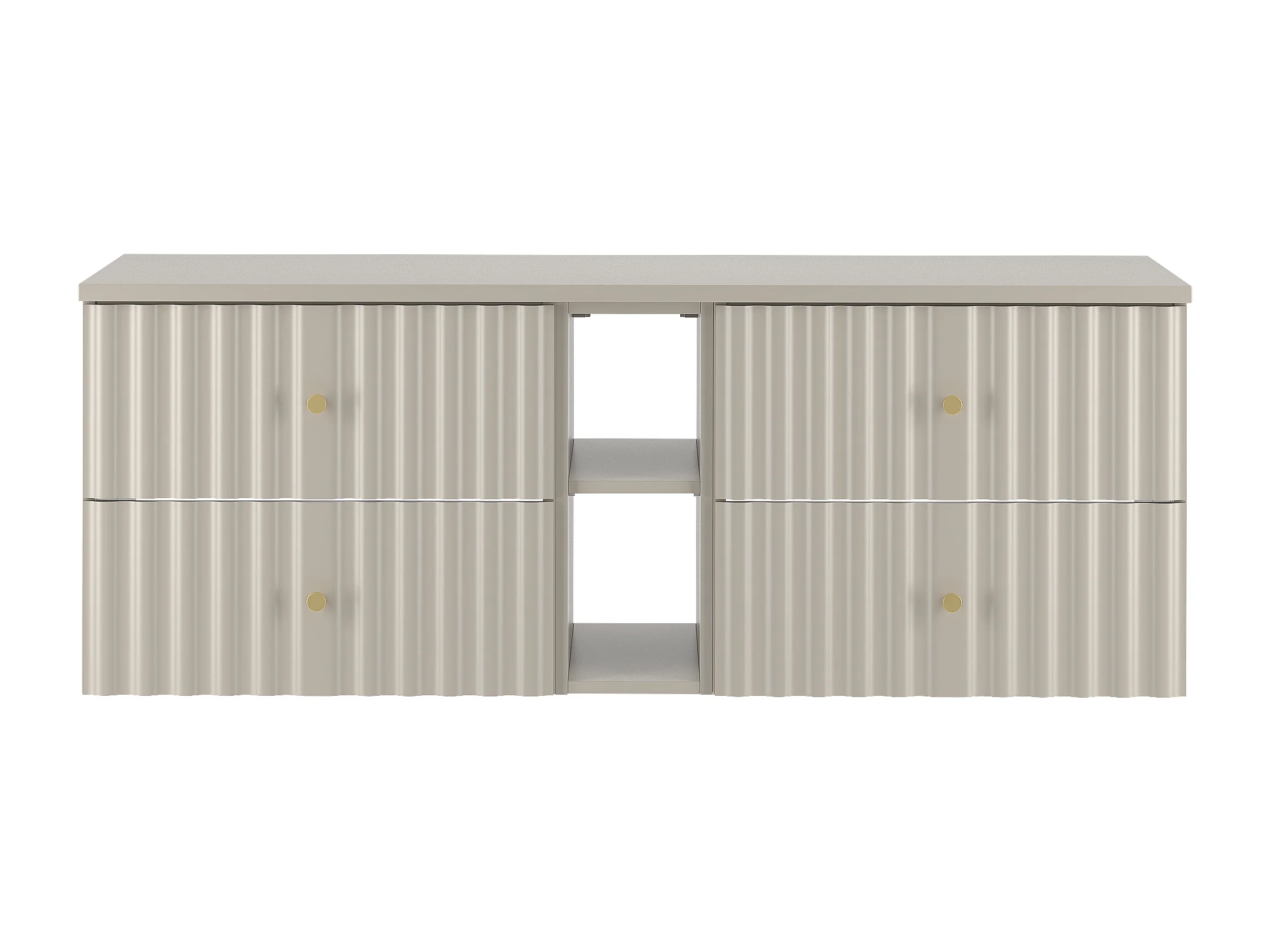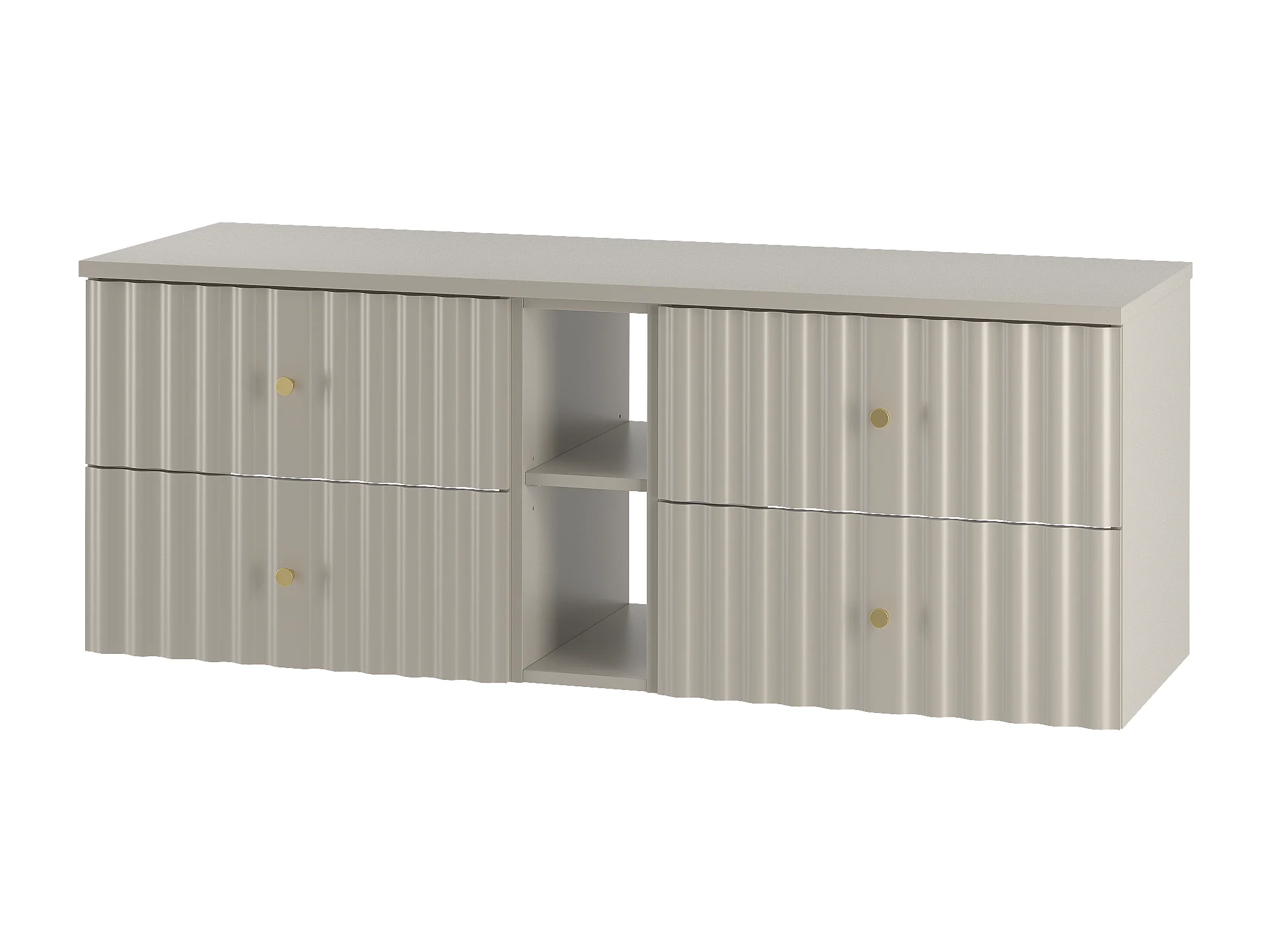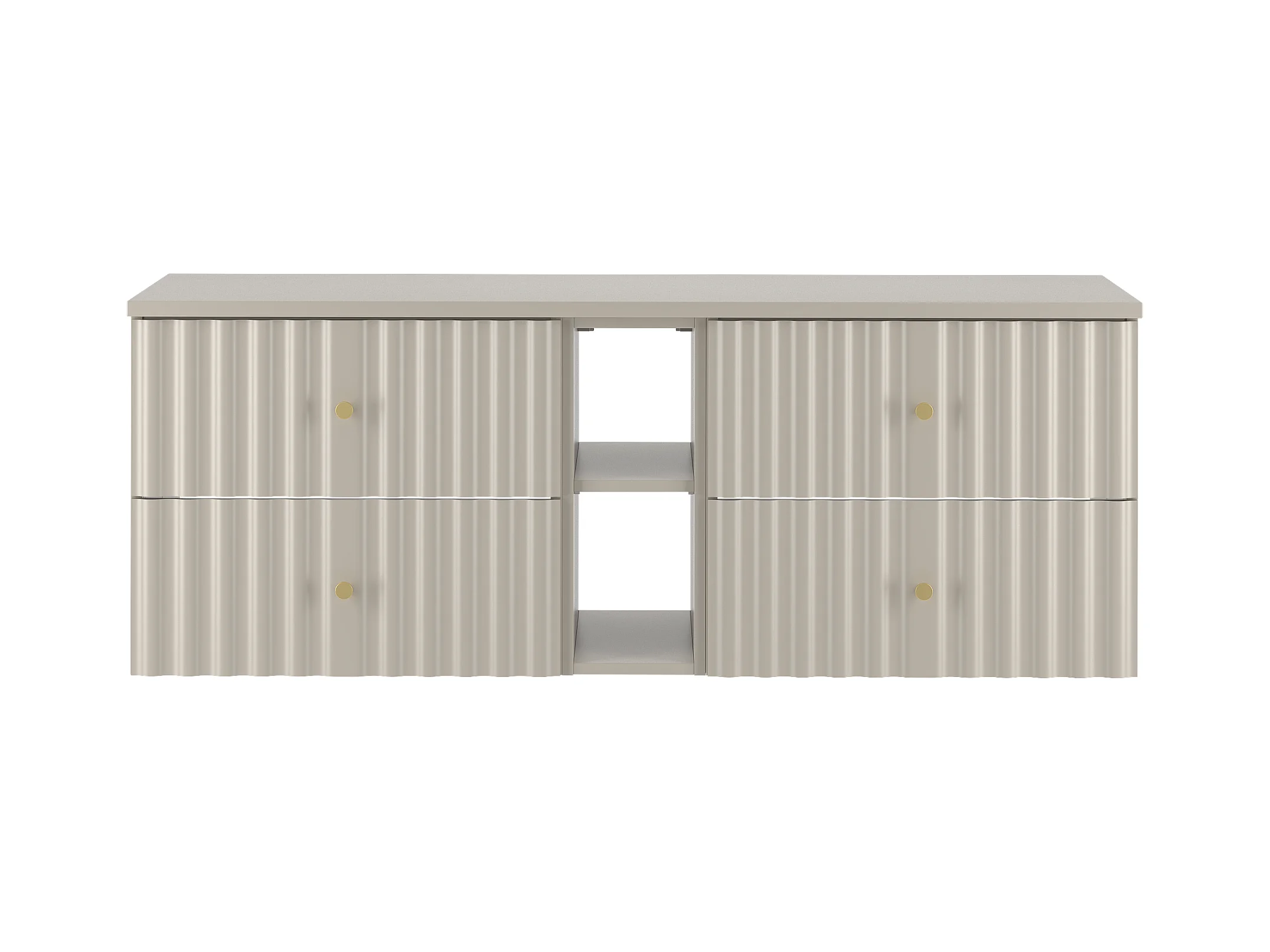 Ensemble de salle de bain en cachemire 140 cm Armoire avec plateau et étagère Façades rainurées Aqua