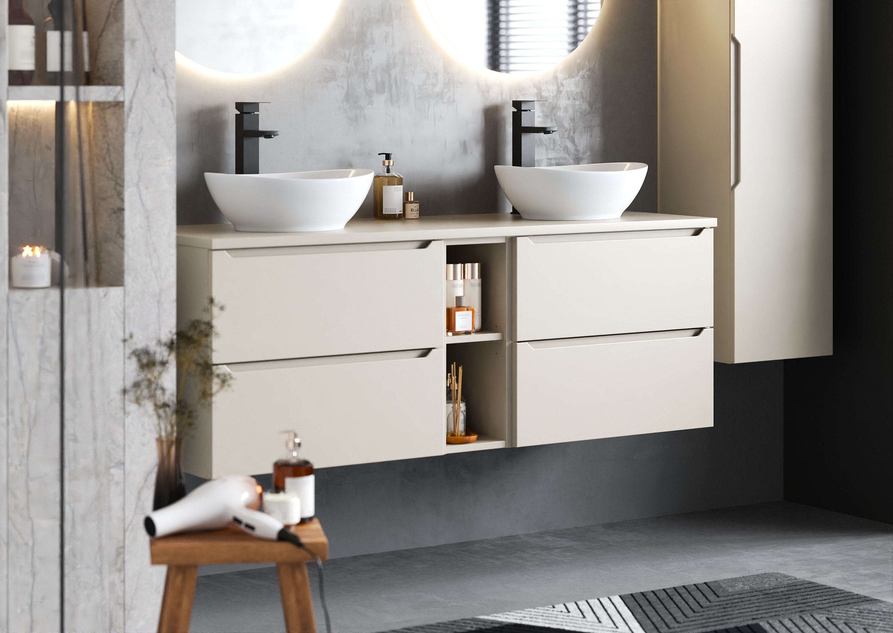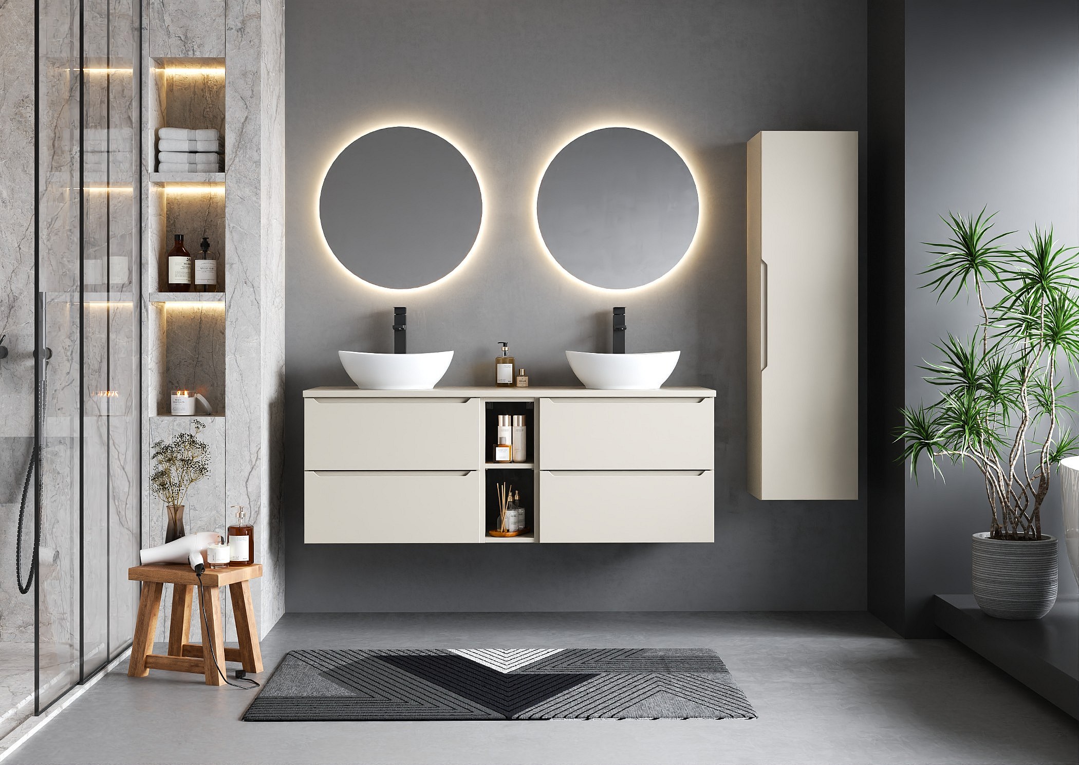 Ensemble de salle de bain en cachemire 140 cm Armoire Étagère Plateau Etna