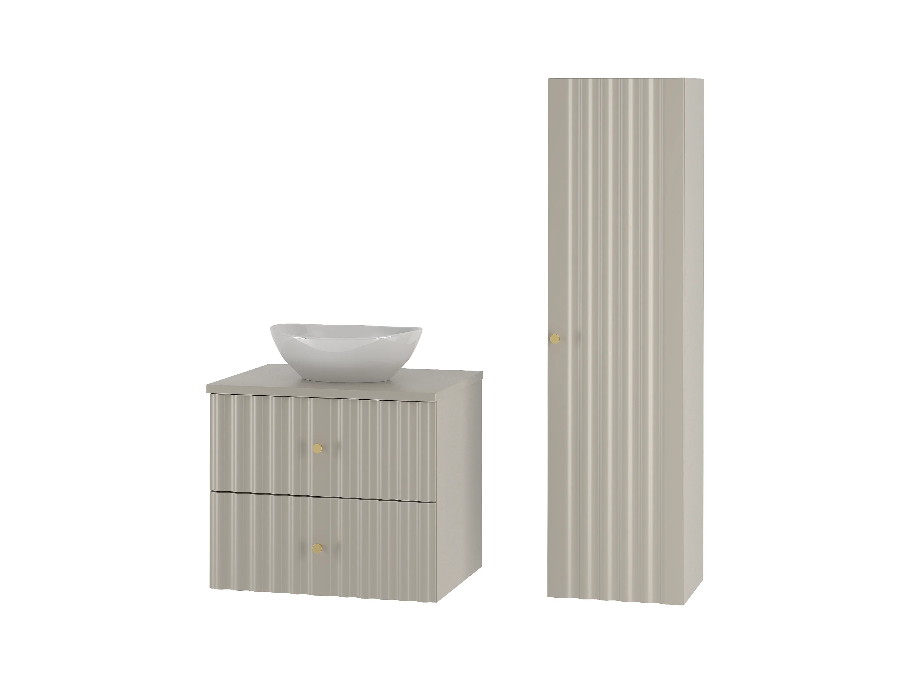Ensemble de salle de bain en cachemire 60 cm Armoire avec plan de travail Lavabo Colonne Façades rainurées Aqua