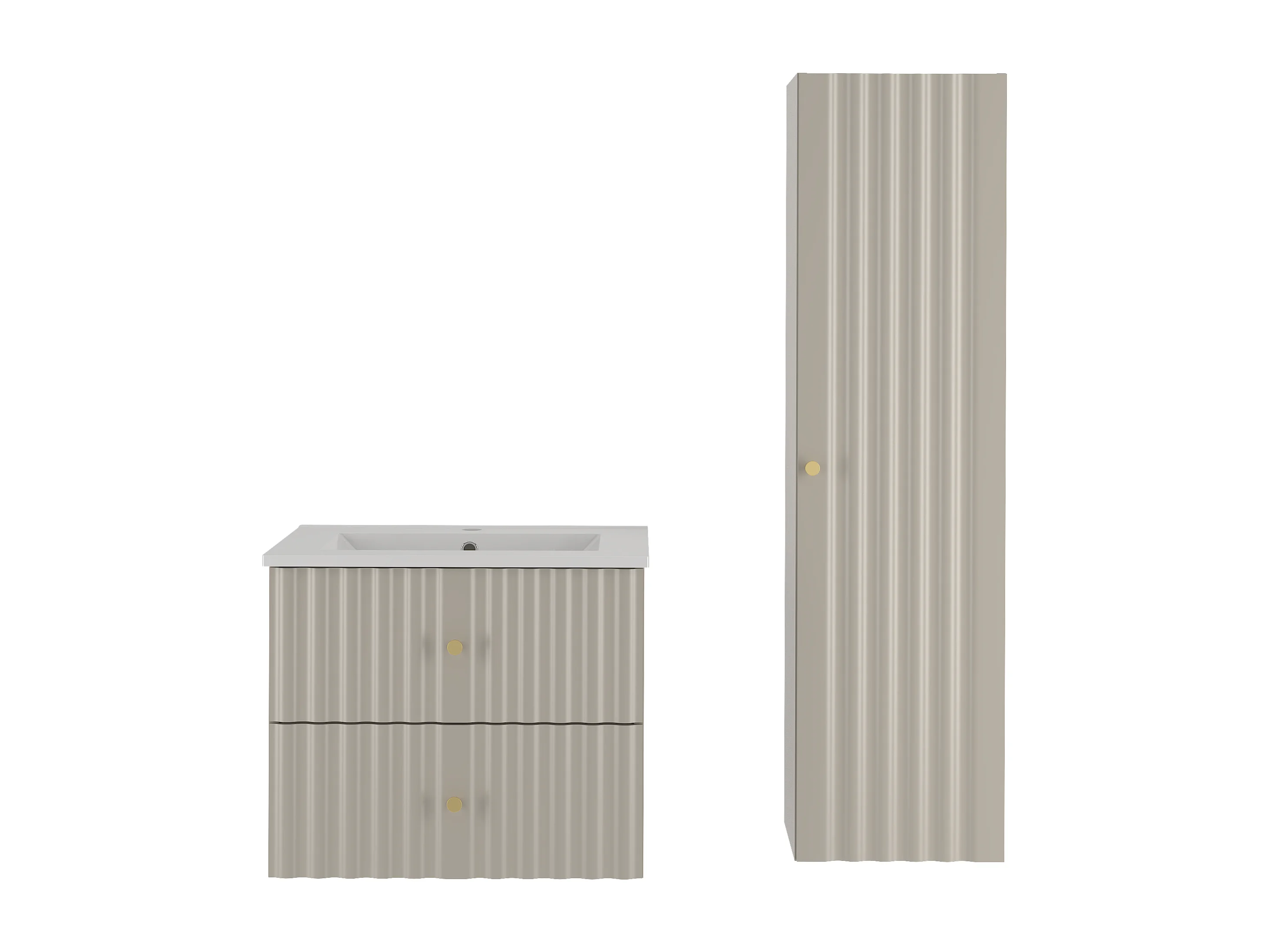 Ensemble de salle de bain en cachemire 60 cm Meuble avec lavabo Colonne Façades rainurées Aqua