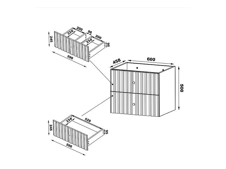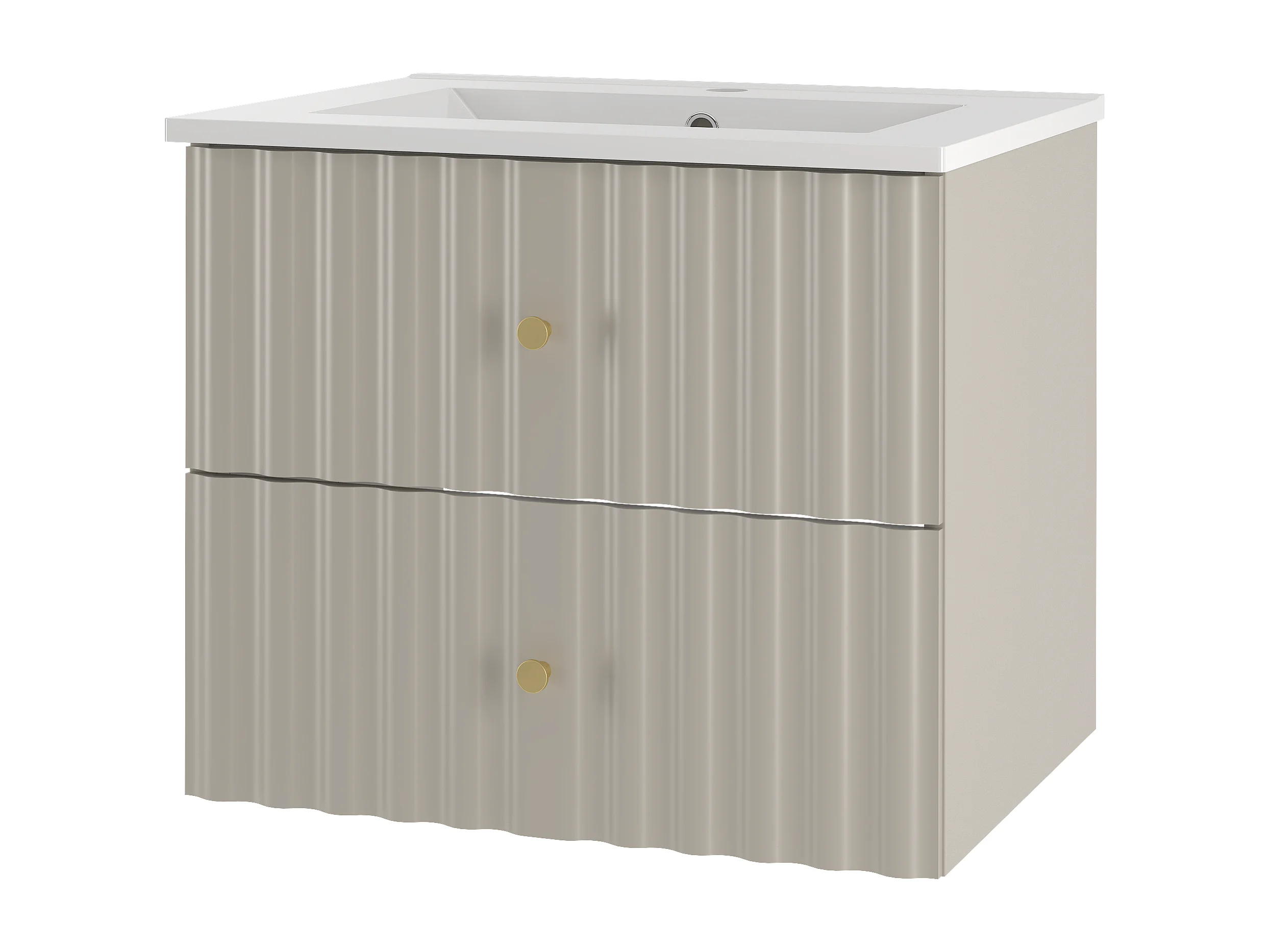 Ensemble de salle de bain en cachemire 60 cm Meuble avec lavabo Façades rainurées Aqua