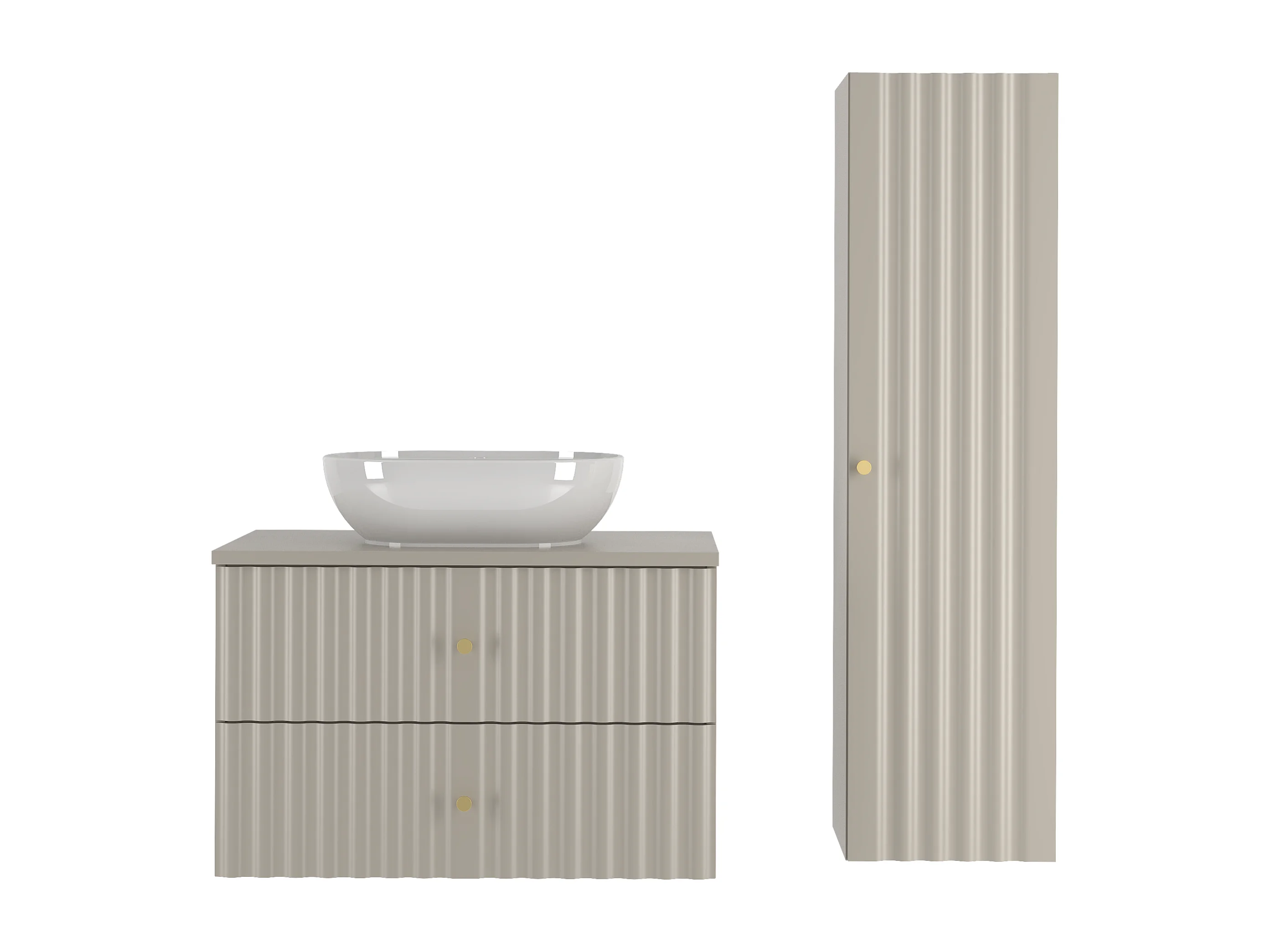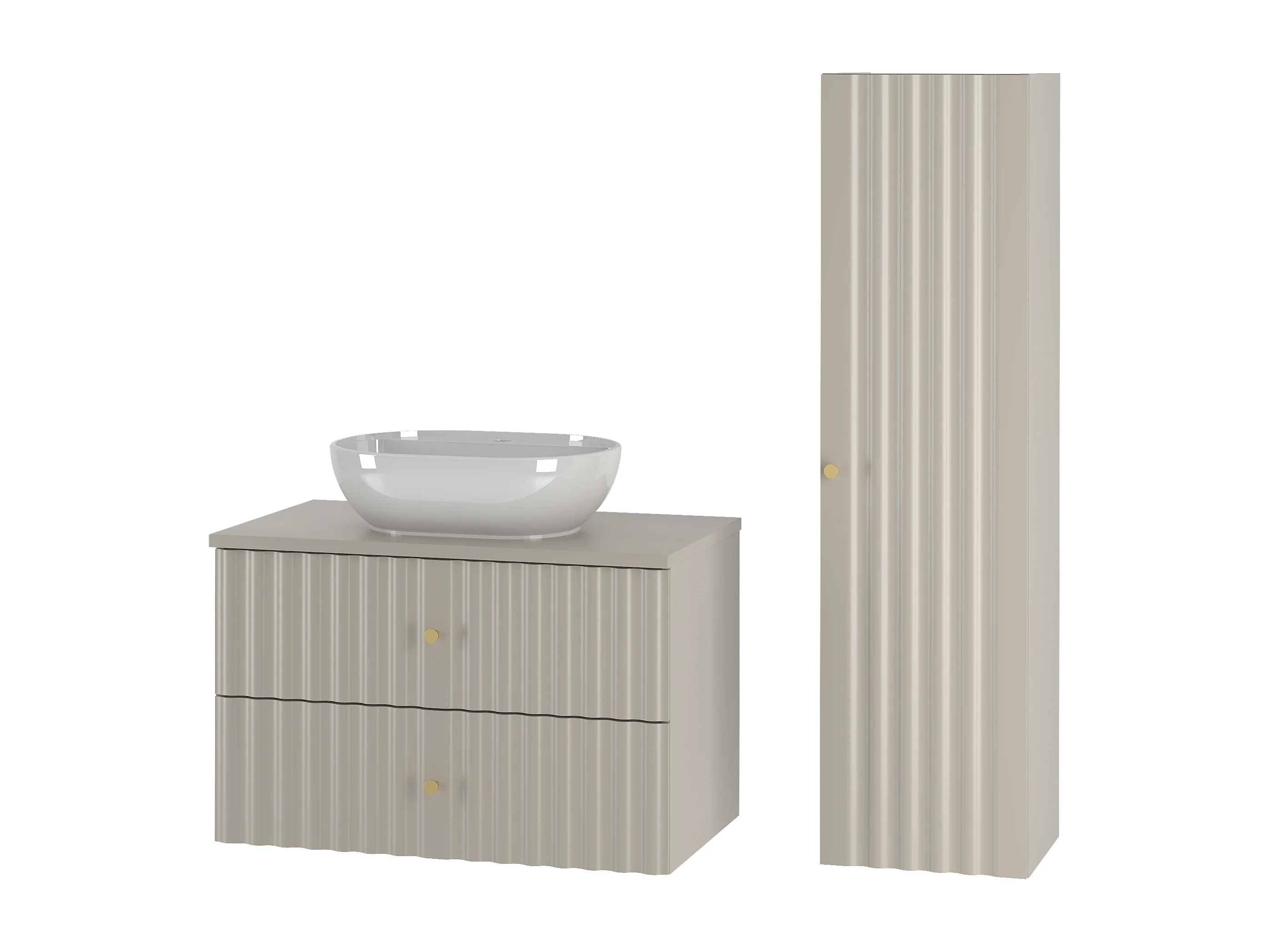 Ensemble de salle de bain en cachemire 80 cm Armoire avec plan de travail Lavabo Colonne Façades rainurées Aqua