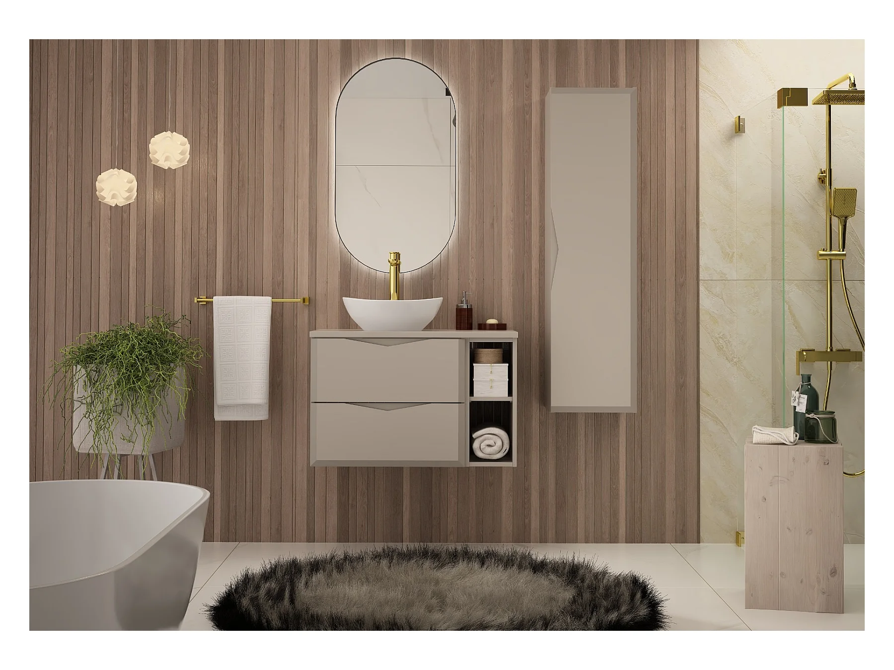 Ensemble de salle de bain en cachemire 80 cm Armoire avec plan de travail Lavabo Étagère Delica