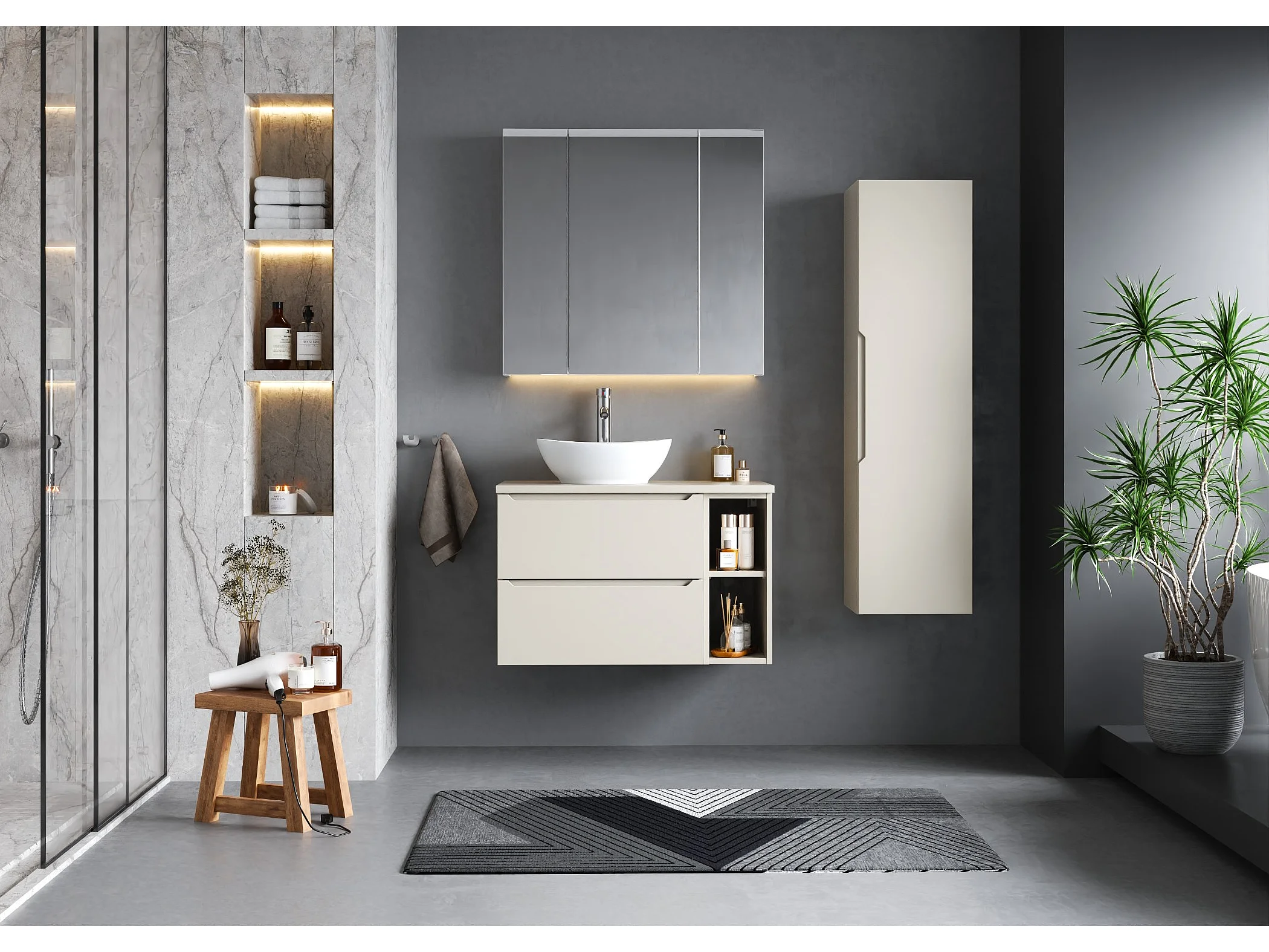 Ensemble de salle de bain en cachemire 80 cm Armoire Étagère Plateau Etna