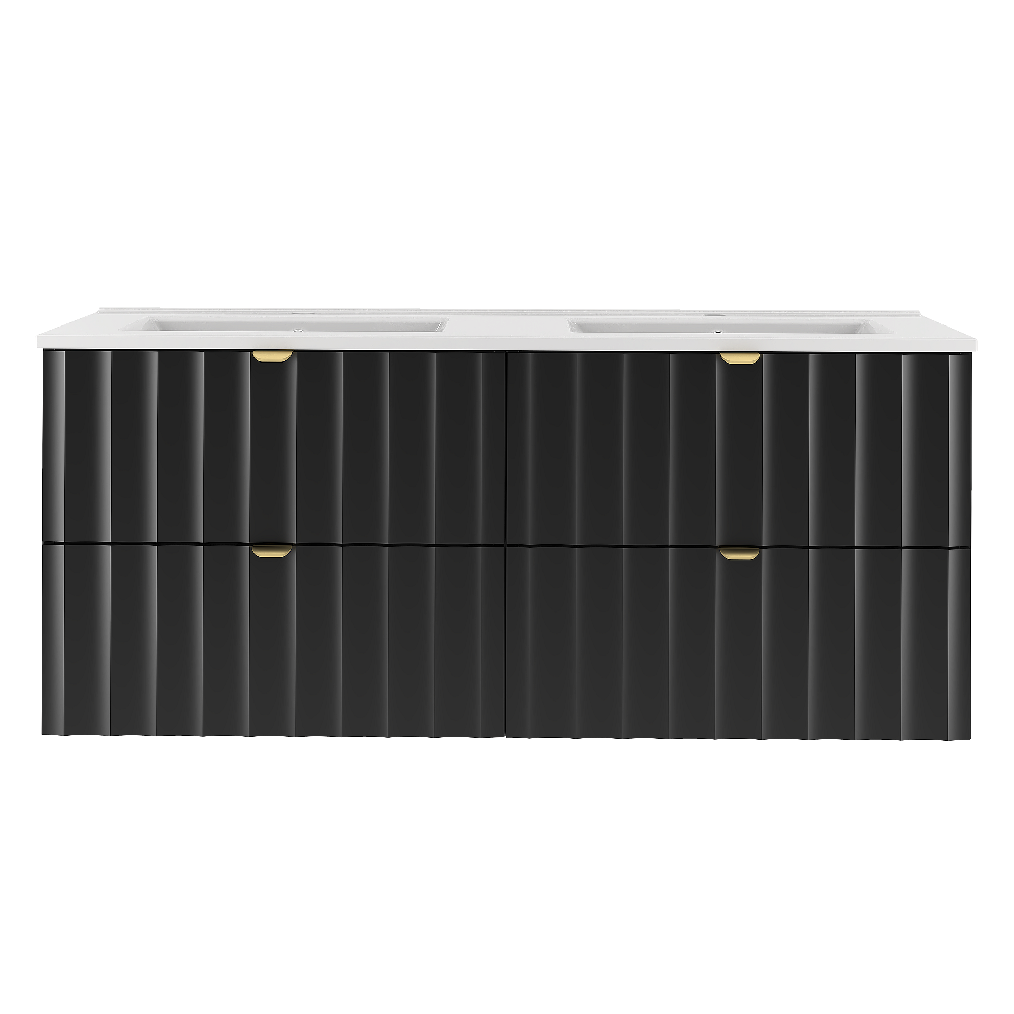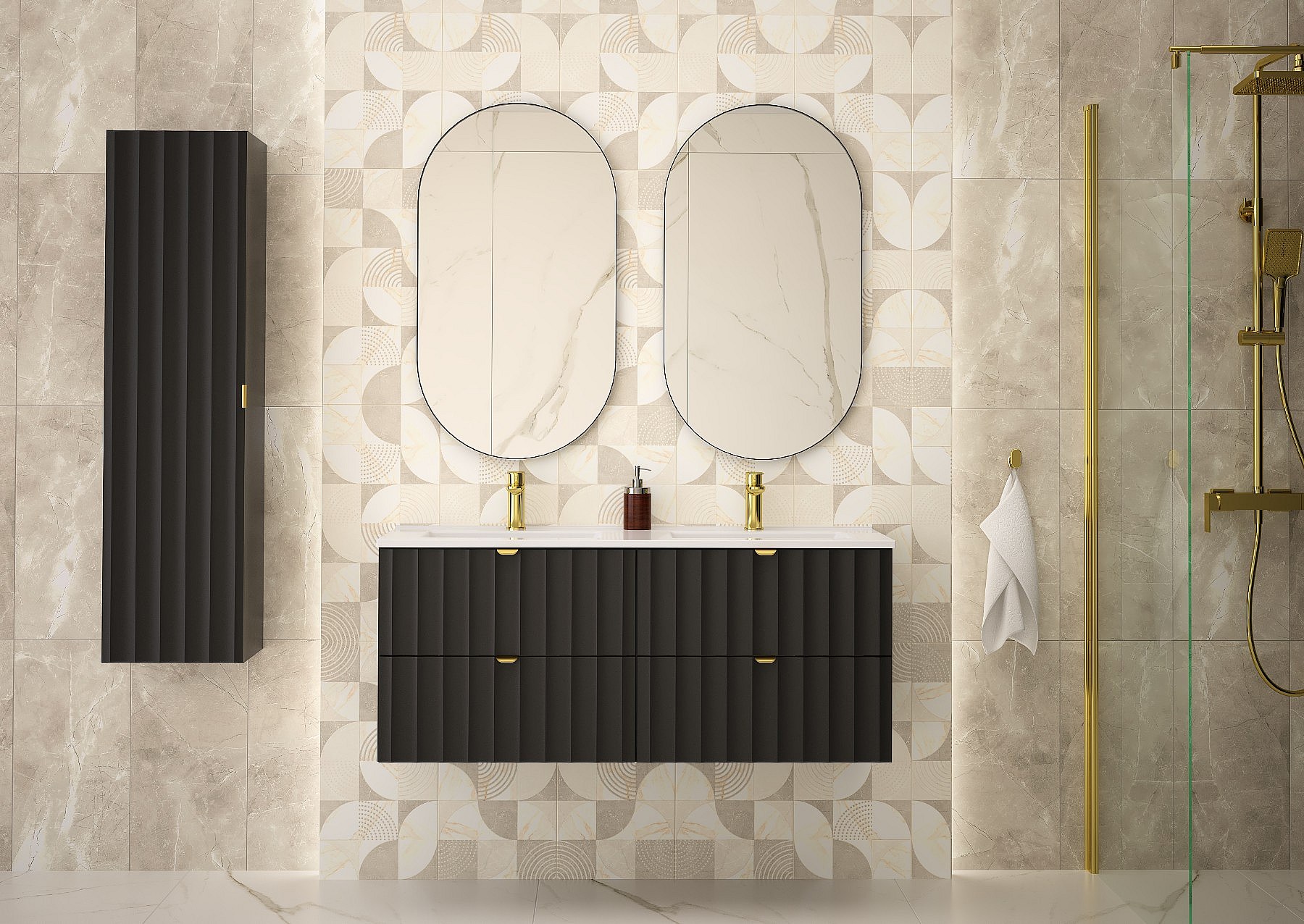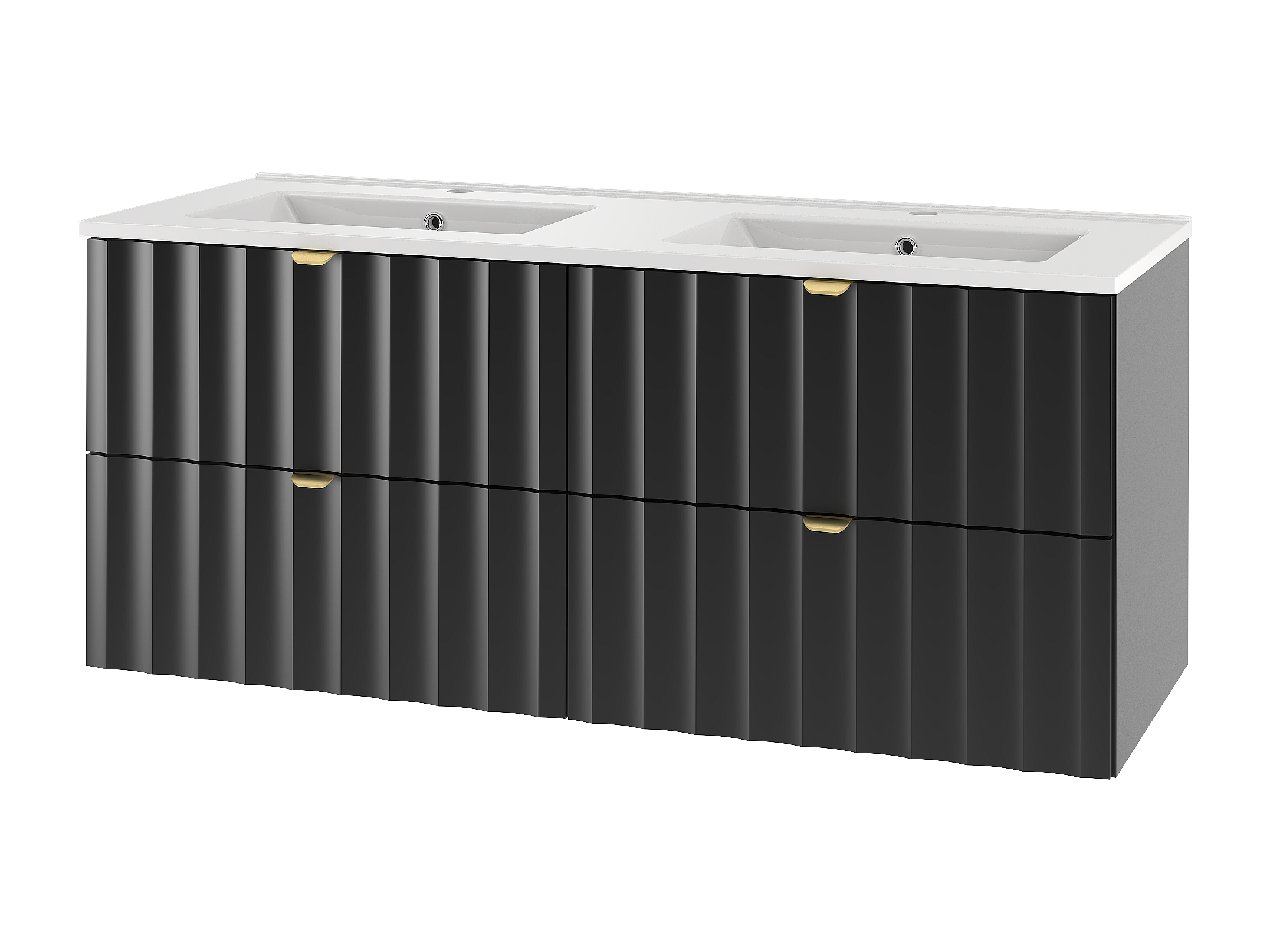 Ensemble de salle de bain noir 120 cm Meuble avec lavabo Façades rainurées Arcos