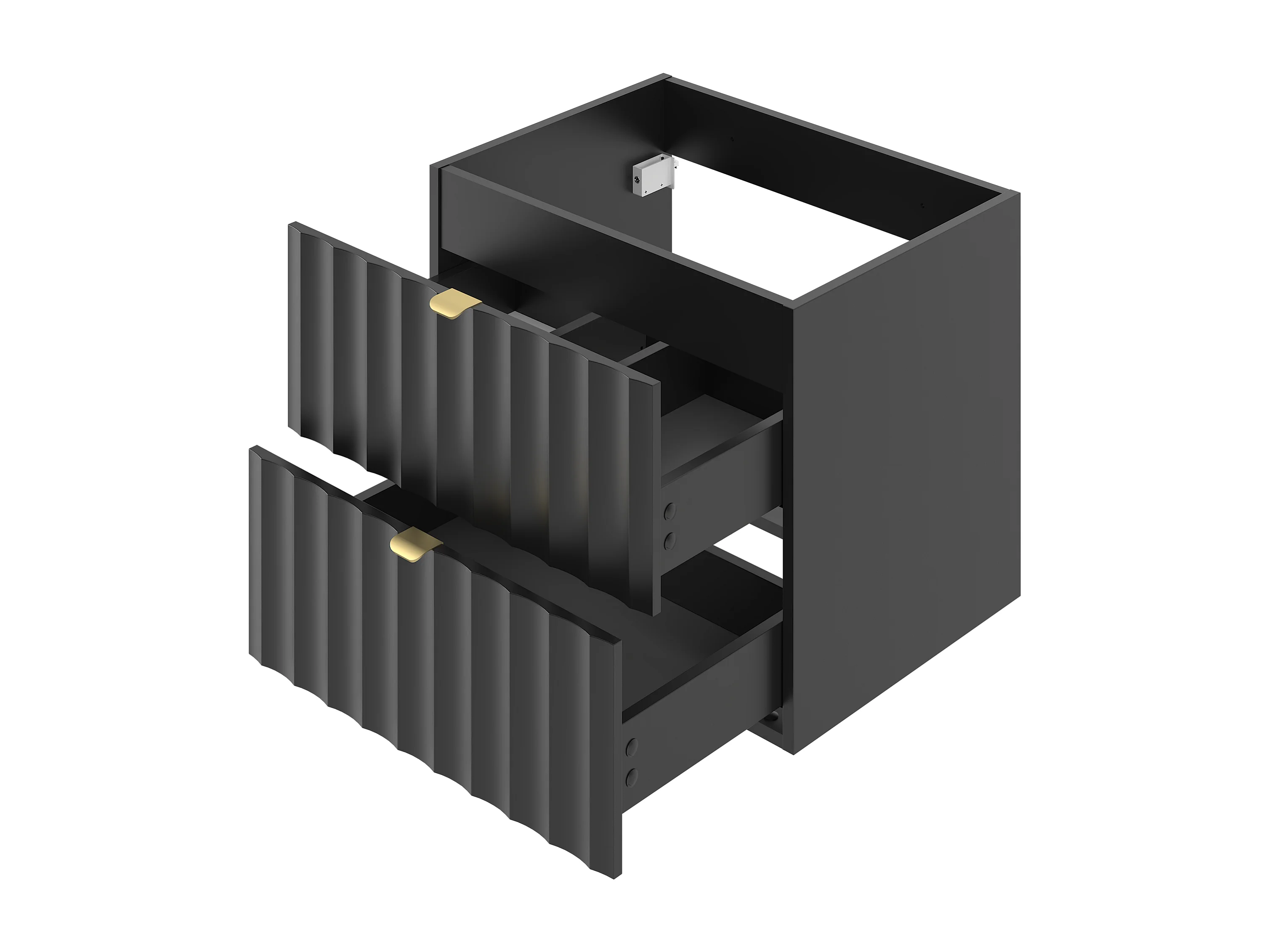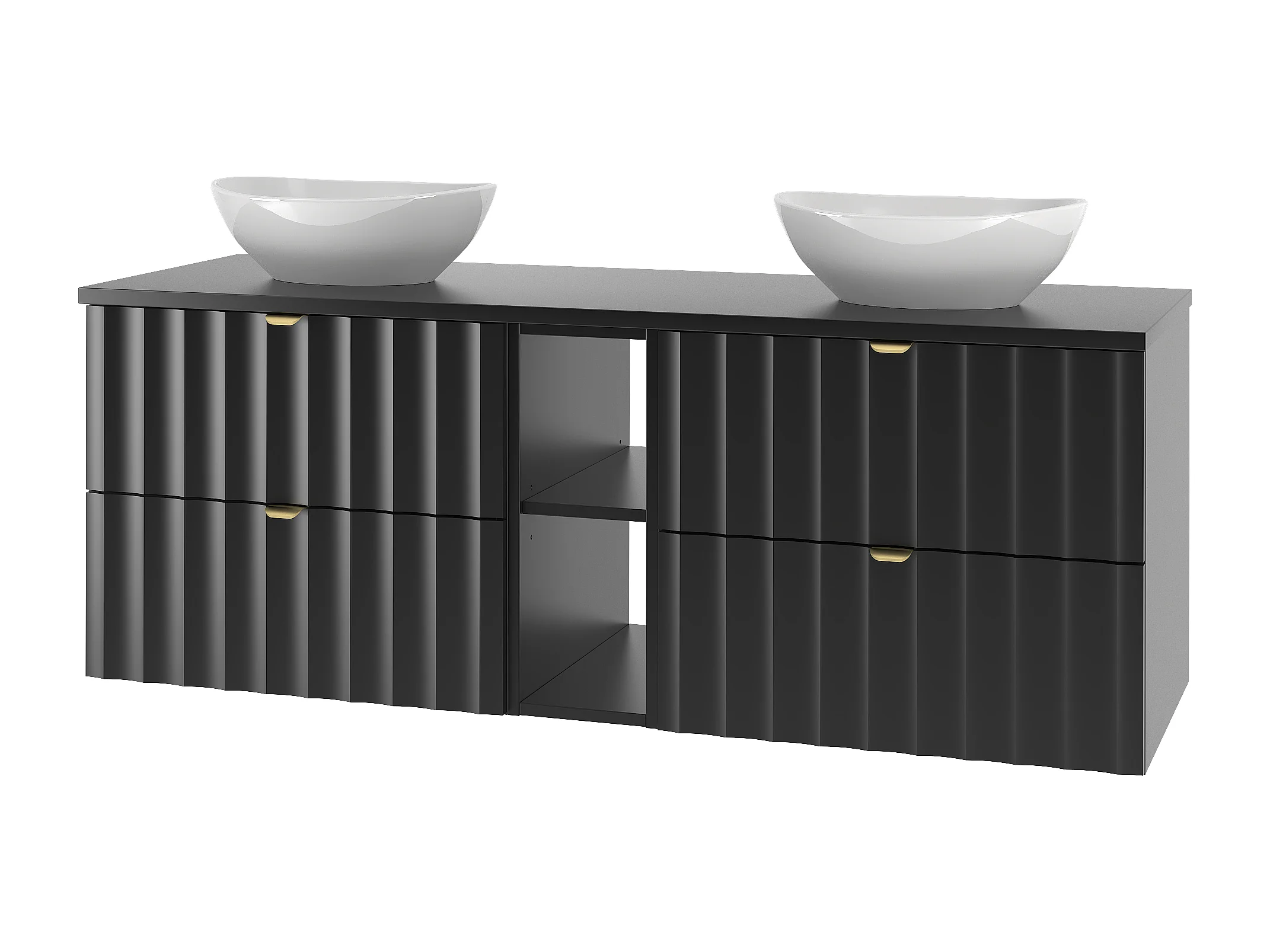 Ensemble de salle de bain noir 140 cm Armoire avec plateau Étagère Lavabo Façades rainurées Arcos