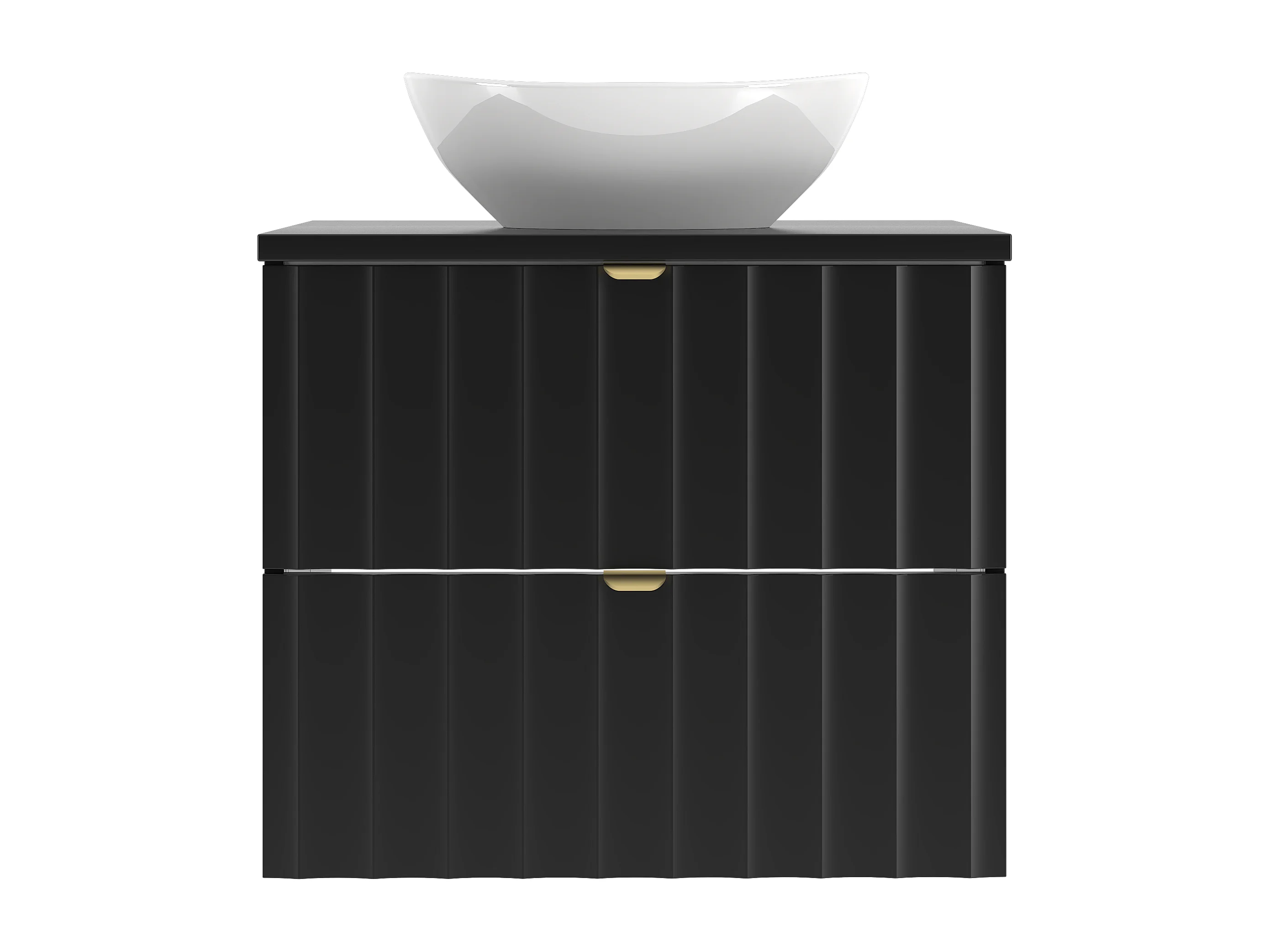 Meuble de salle de bain suspendu strié avec vasque à encastrer - Noir - 60 cm - ZEVARA
