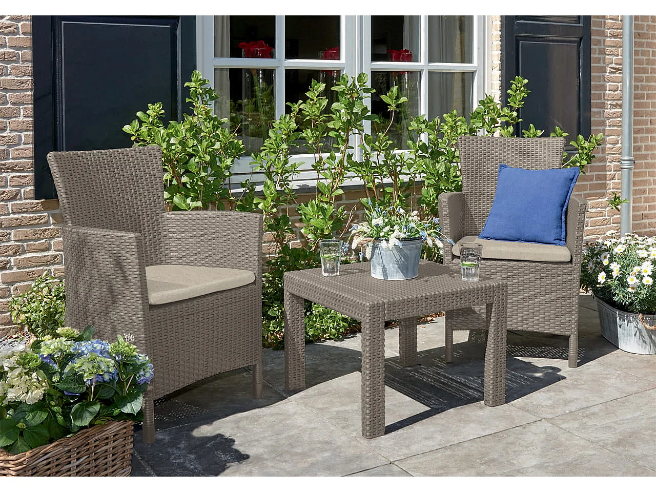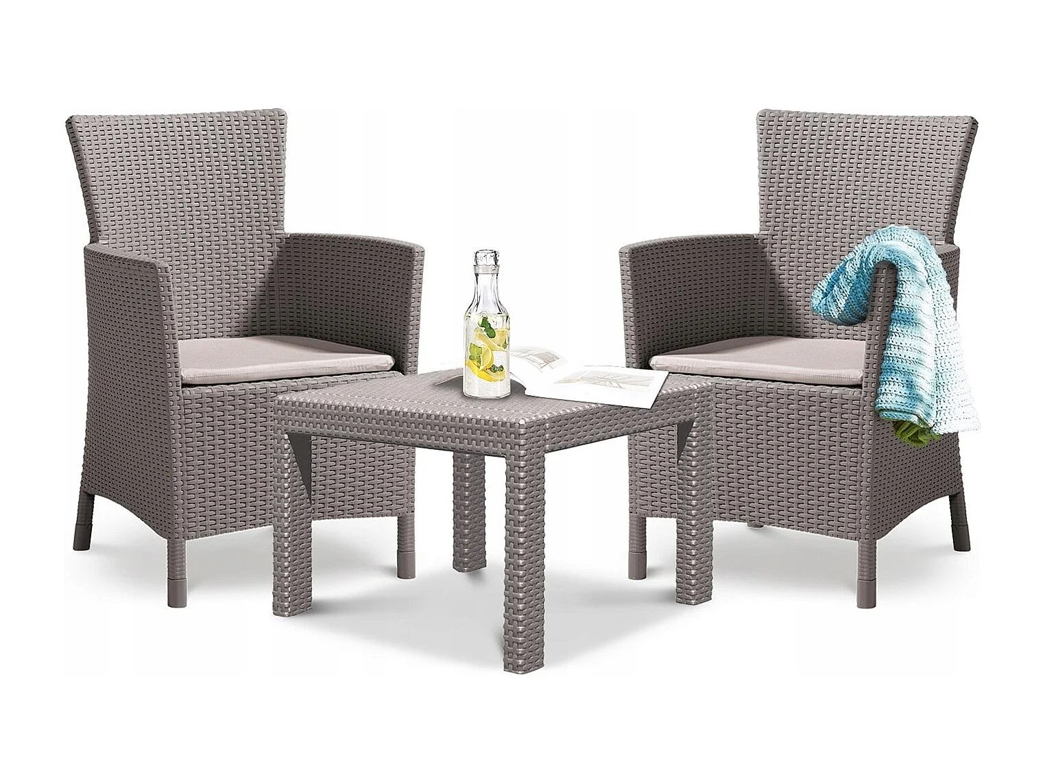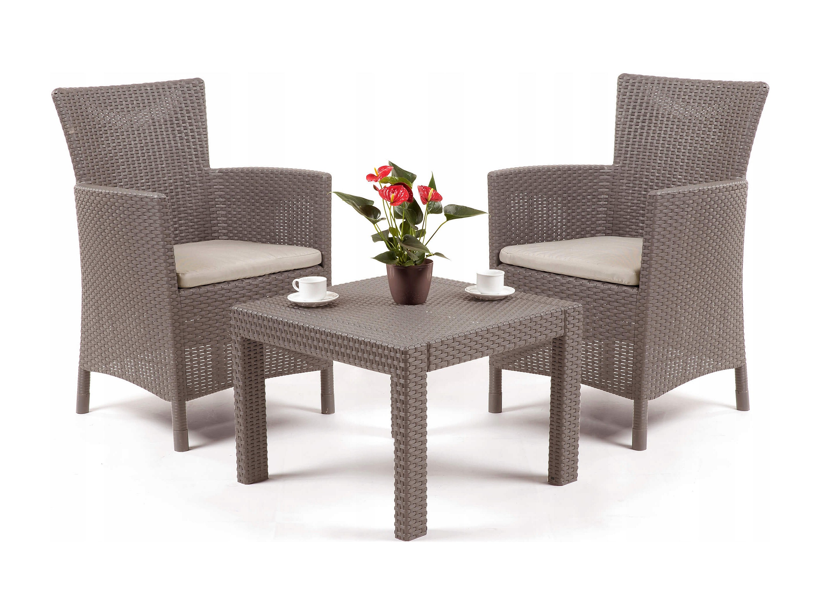Ensemble de salon Allibert 219990 Rosario Balcony 2x chaises et 1x table, aspect rotin, plastique, cappuccino
