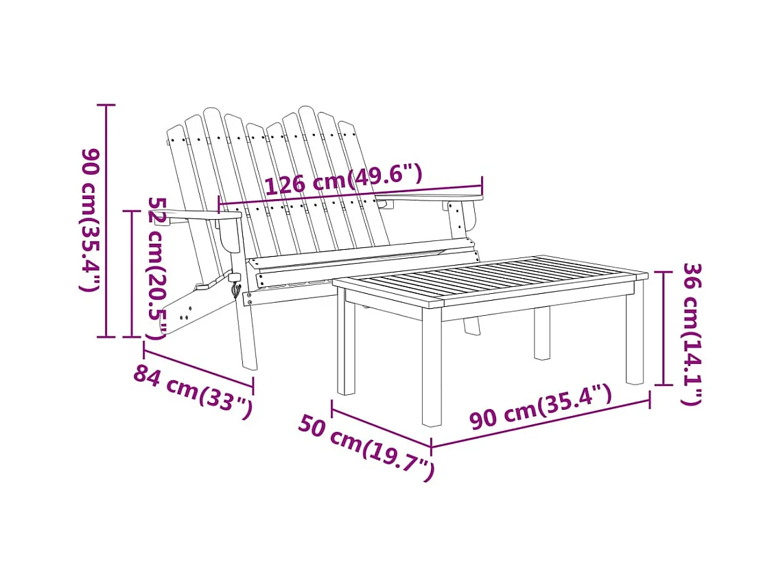 Salon de jardin Adirondack 2 pcs bois acacia solide BE35816