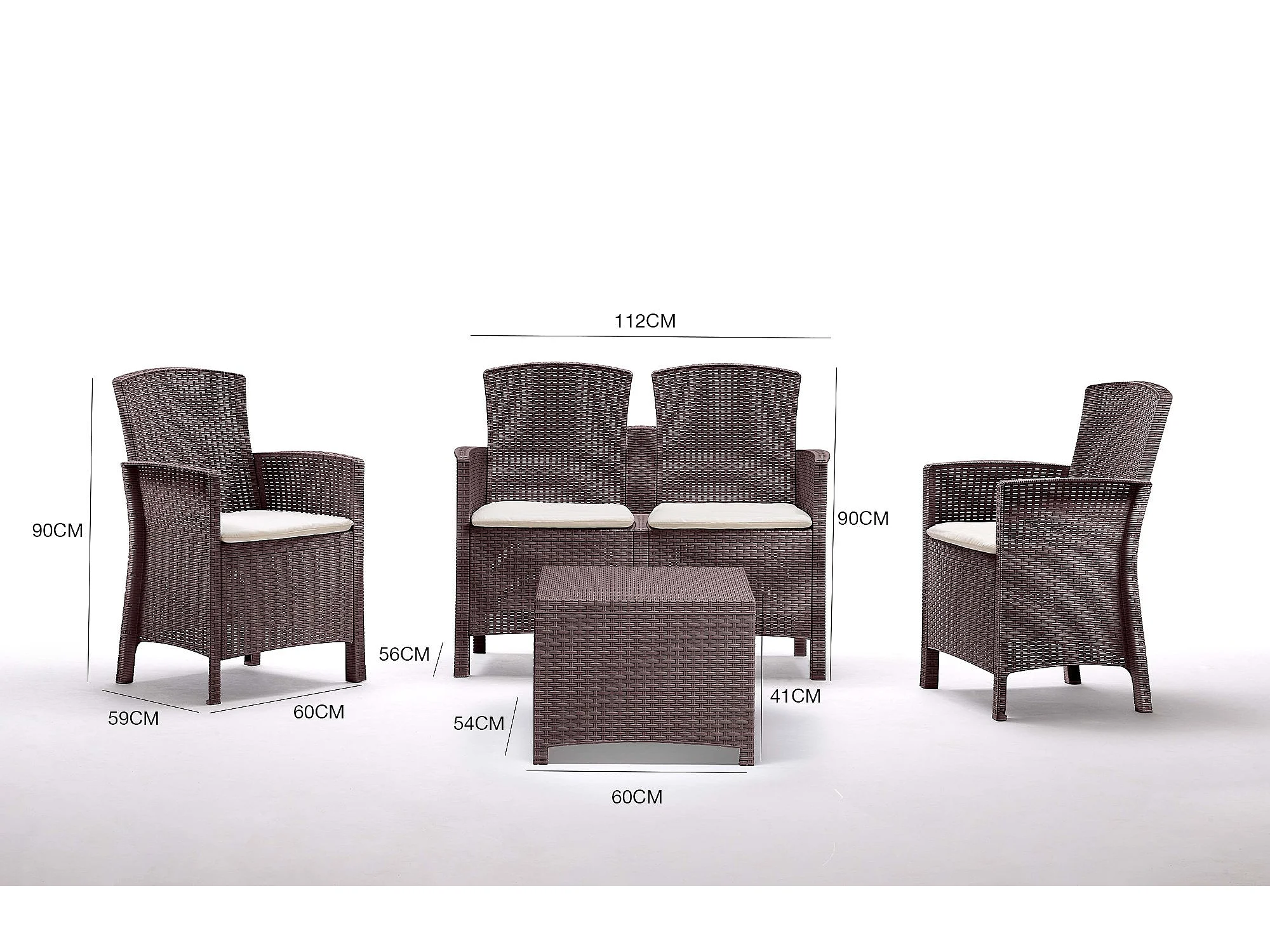 Ensemble de salon d'extérieur Dmorat, Salon de jardin avec coussins, Salon d'intérieur effet rotin, 100% Made in Italy, Marron