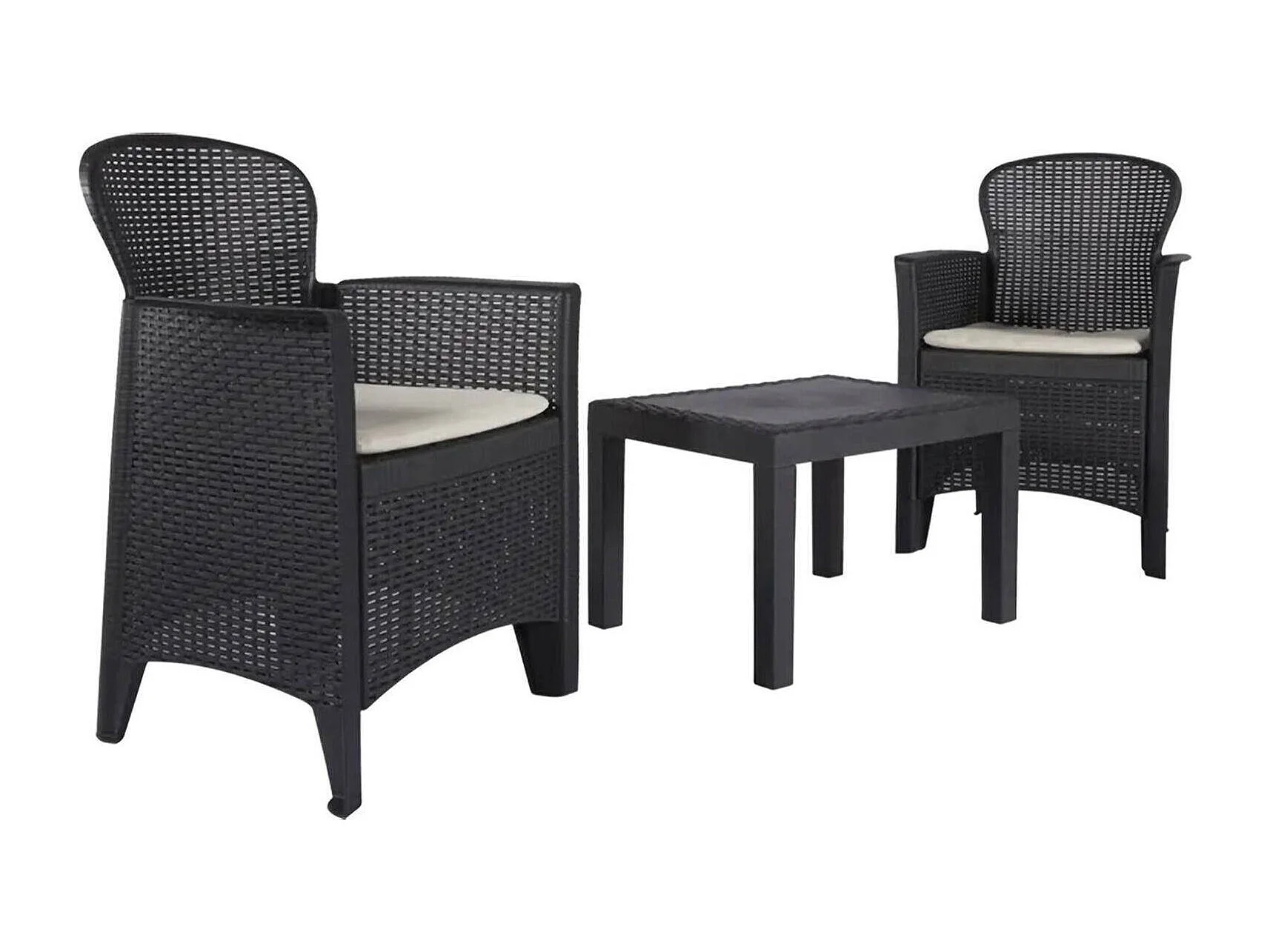 Ensemble de salon d'extérieur Foggia, Composition de jardin avec 2 fauteuils et 1 table basse, Salon effet rotin avec coussins, 100% Made in Italy, Anthracite