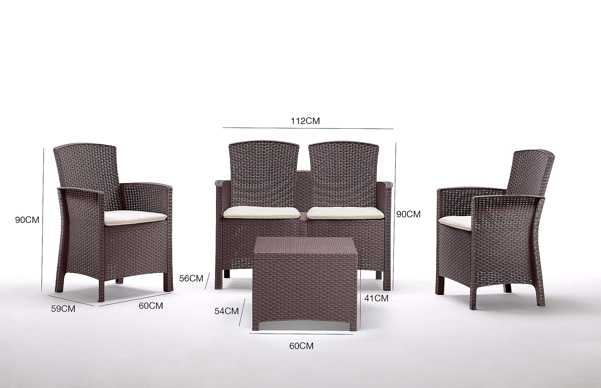 Ensemble de salon d'extérieur Urano, Salon de jardin avec coussins, Salon d'intérieur effet rotin, 100% Made in Italy, Marron