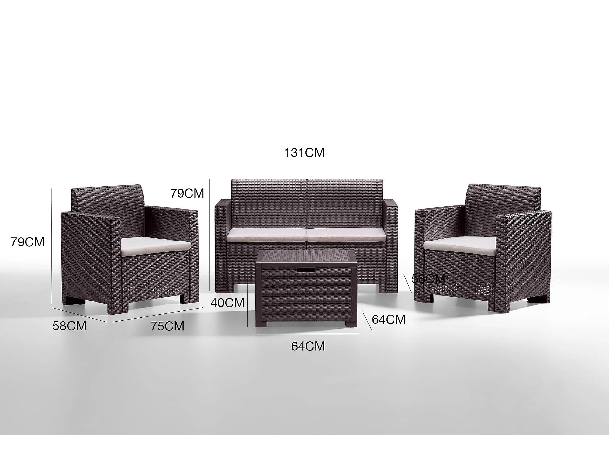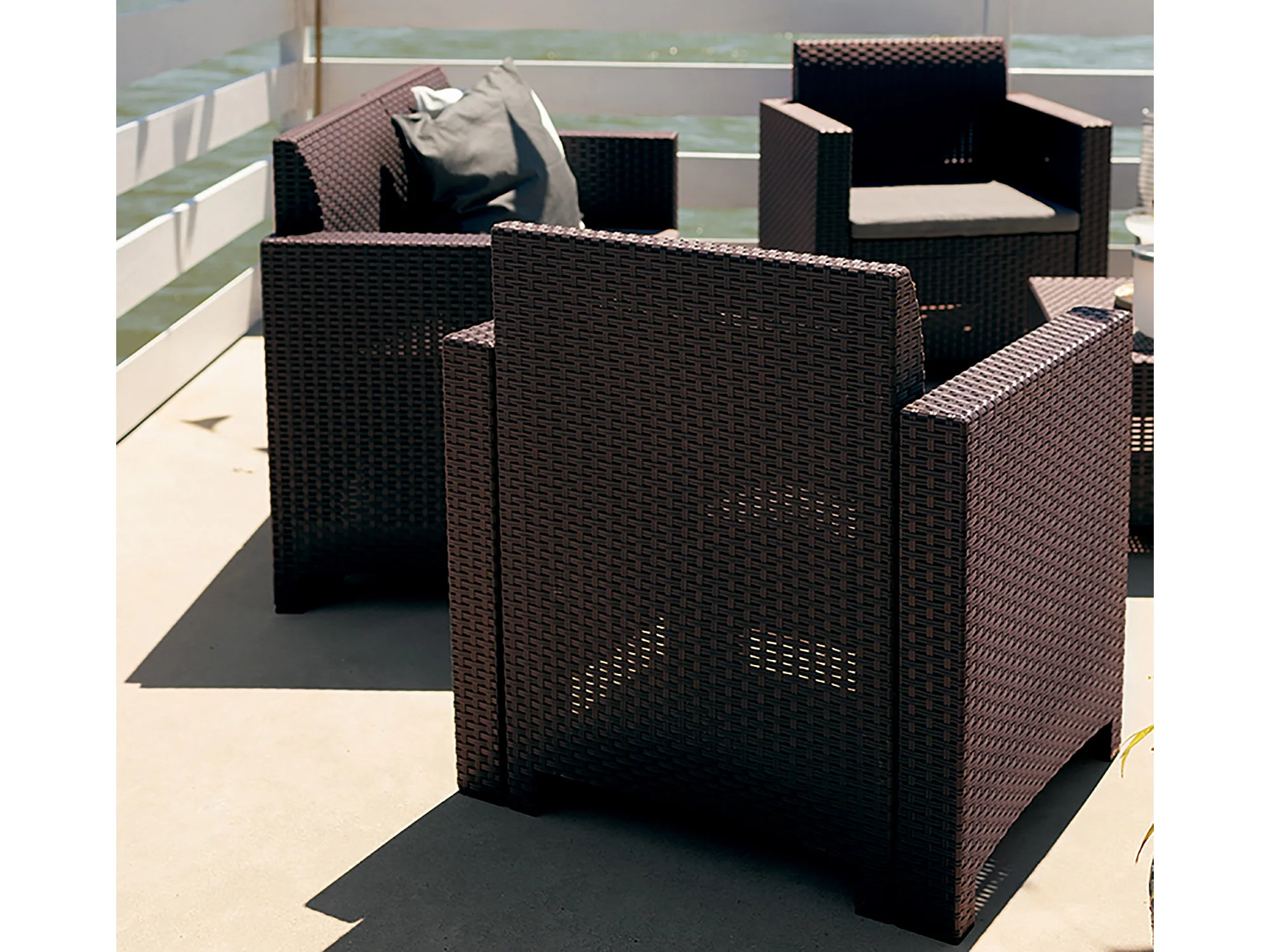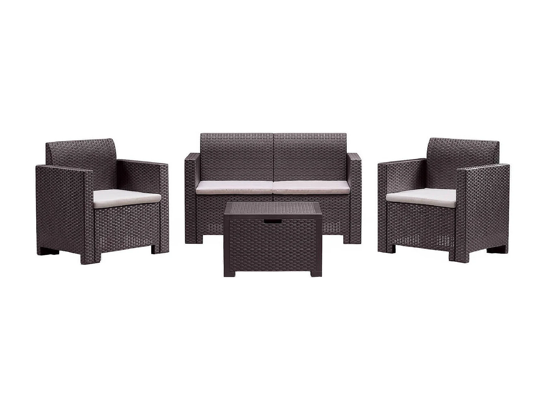 Ensemble de salon d'extérieur Venere, Ensemble de jardin avec coussins, Ensemble de salon d'intérieur effet rotin, 100% Made in Italy, Marron