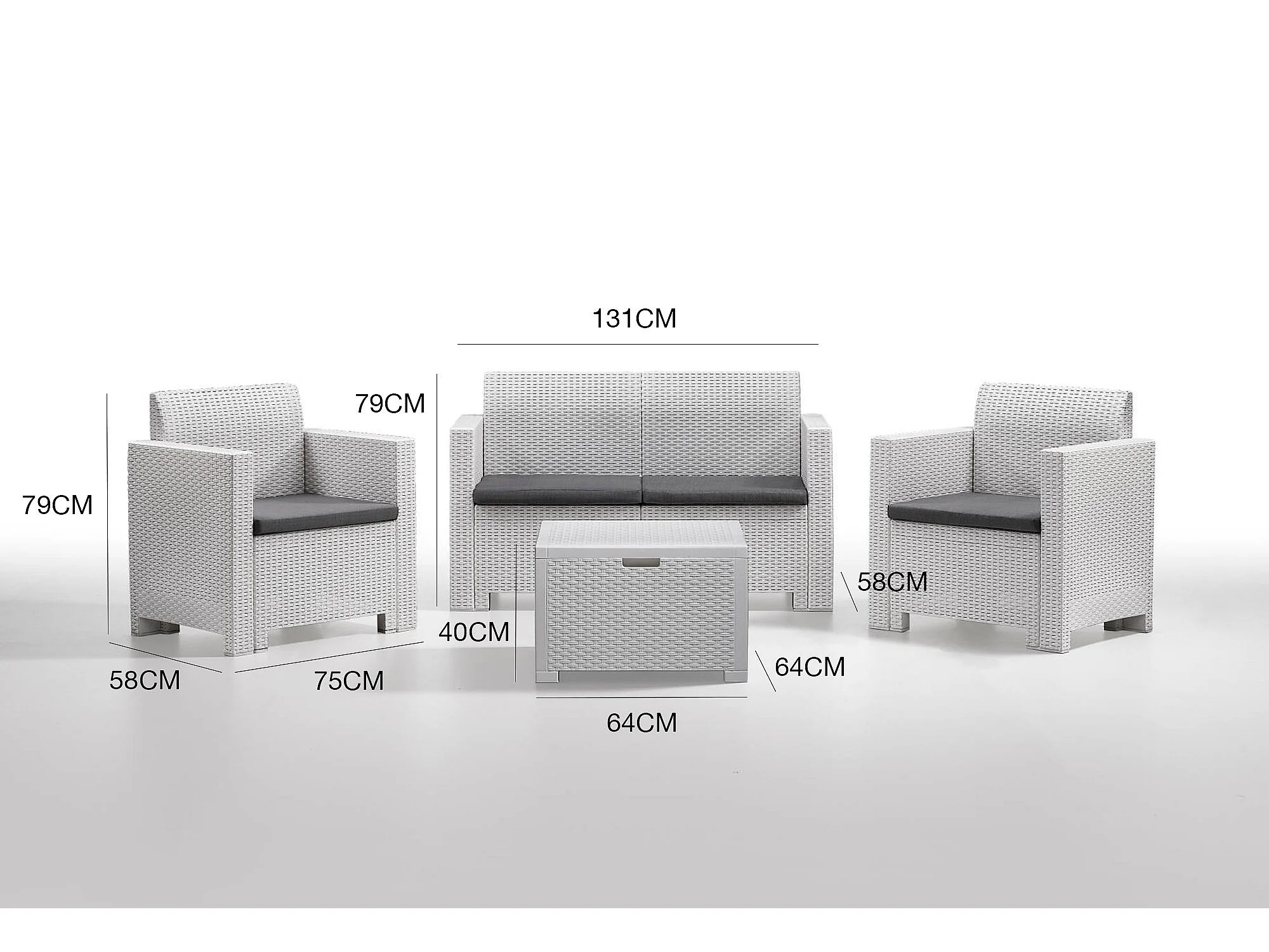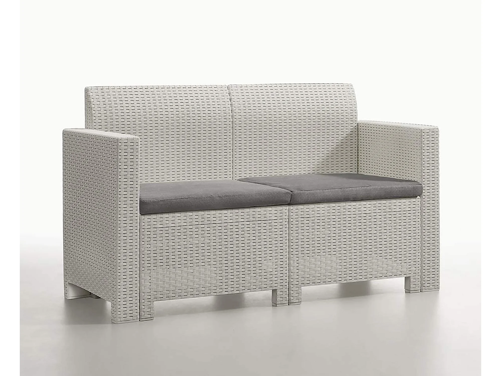Ensemble de salon d'extérieur Dmotto, Salon de jardin avec coussins, Salon d'intérieur effet rotin, 100% Made in Italy, Blanc