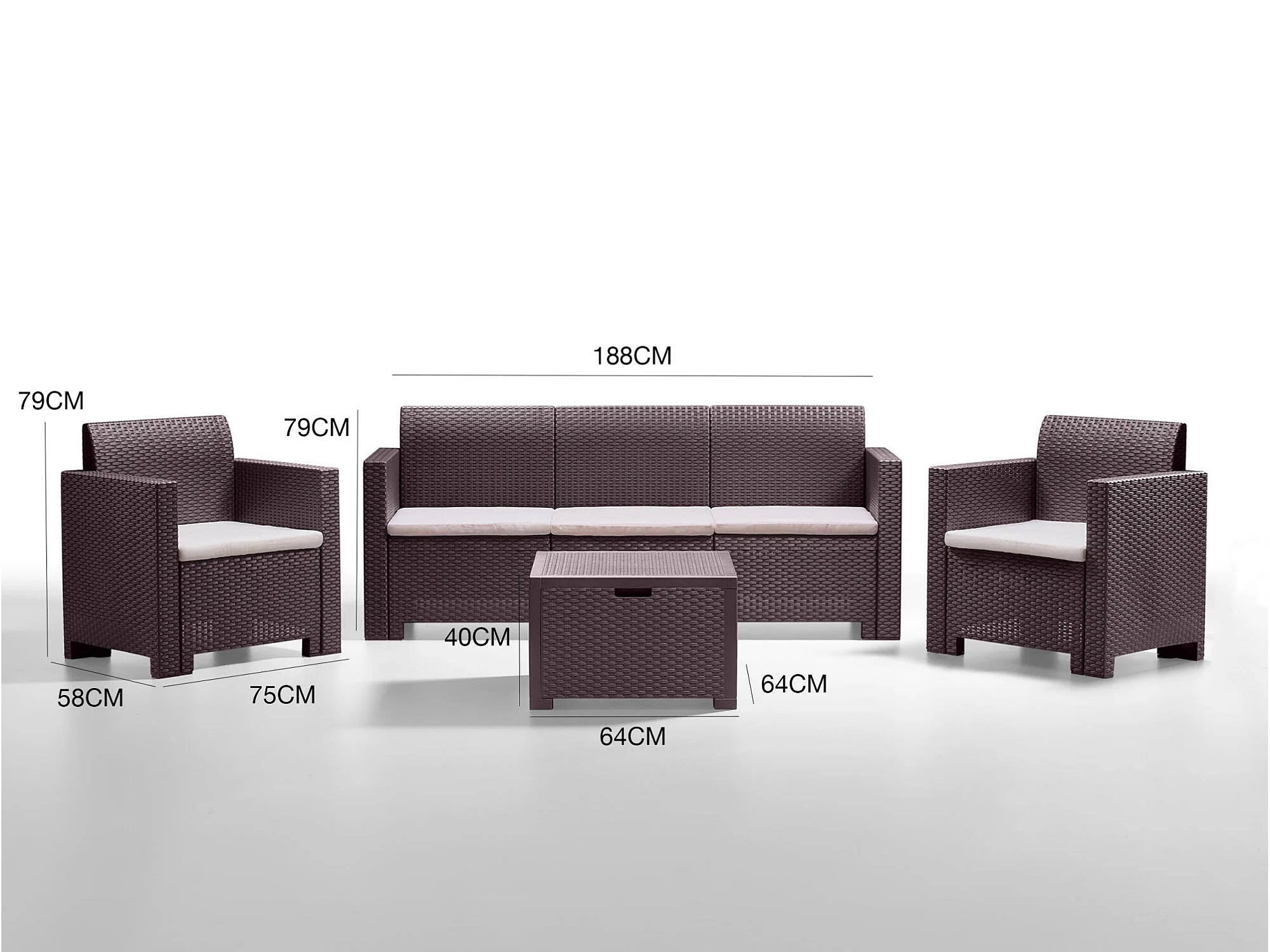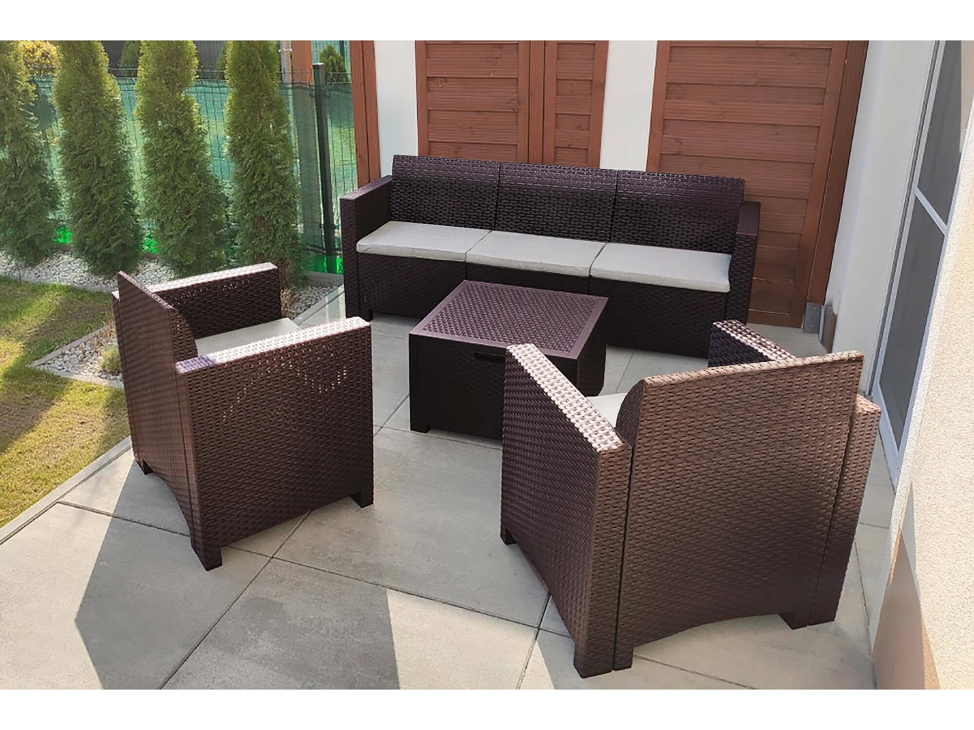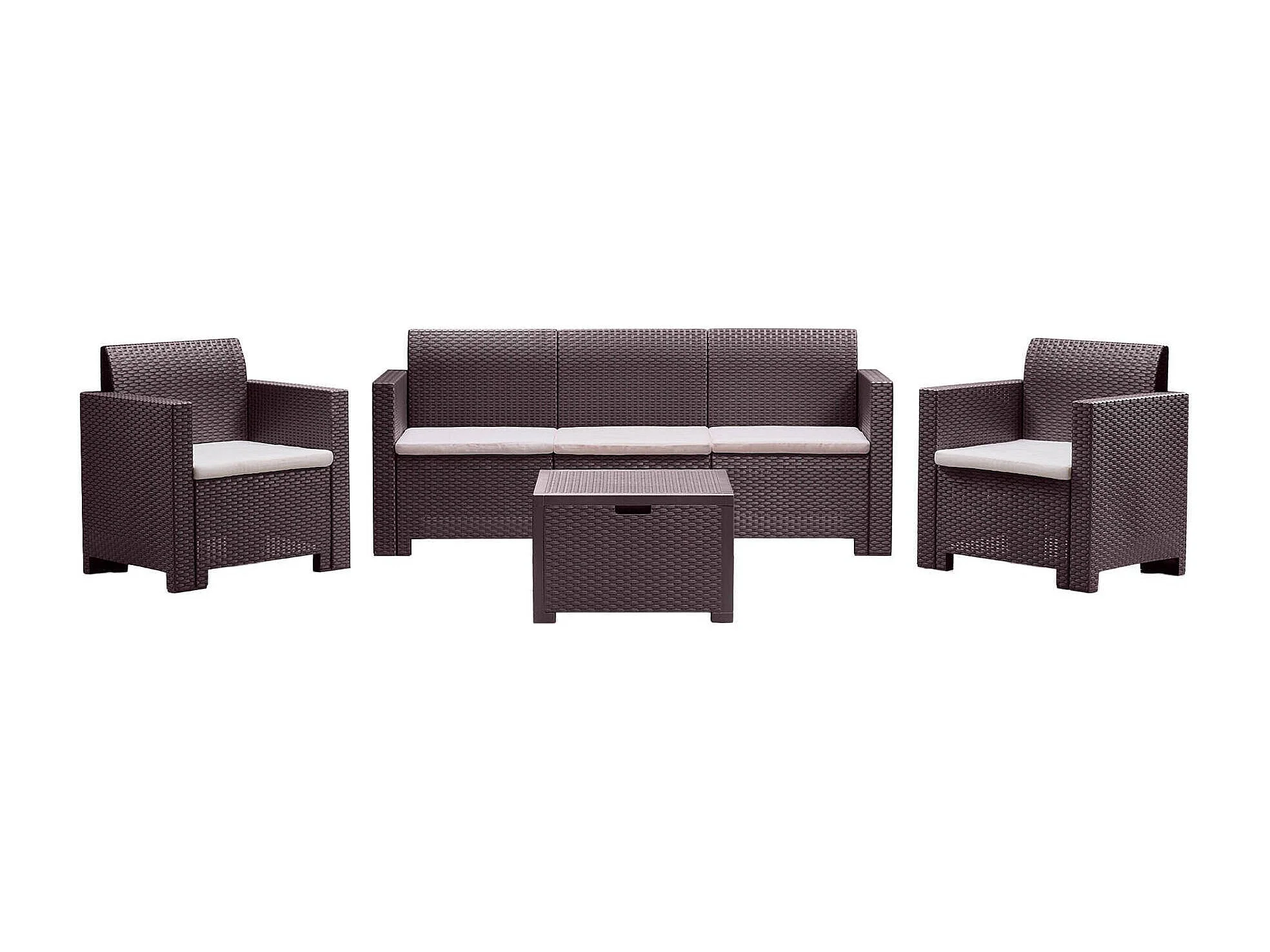 Ensemble de salon d'extérieur Dmuh, Salon de jardin avec coussins, Salon d'intérieur effet rotin, 100% Made in Italy, Marron
