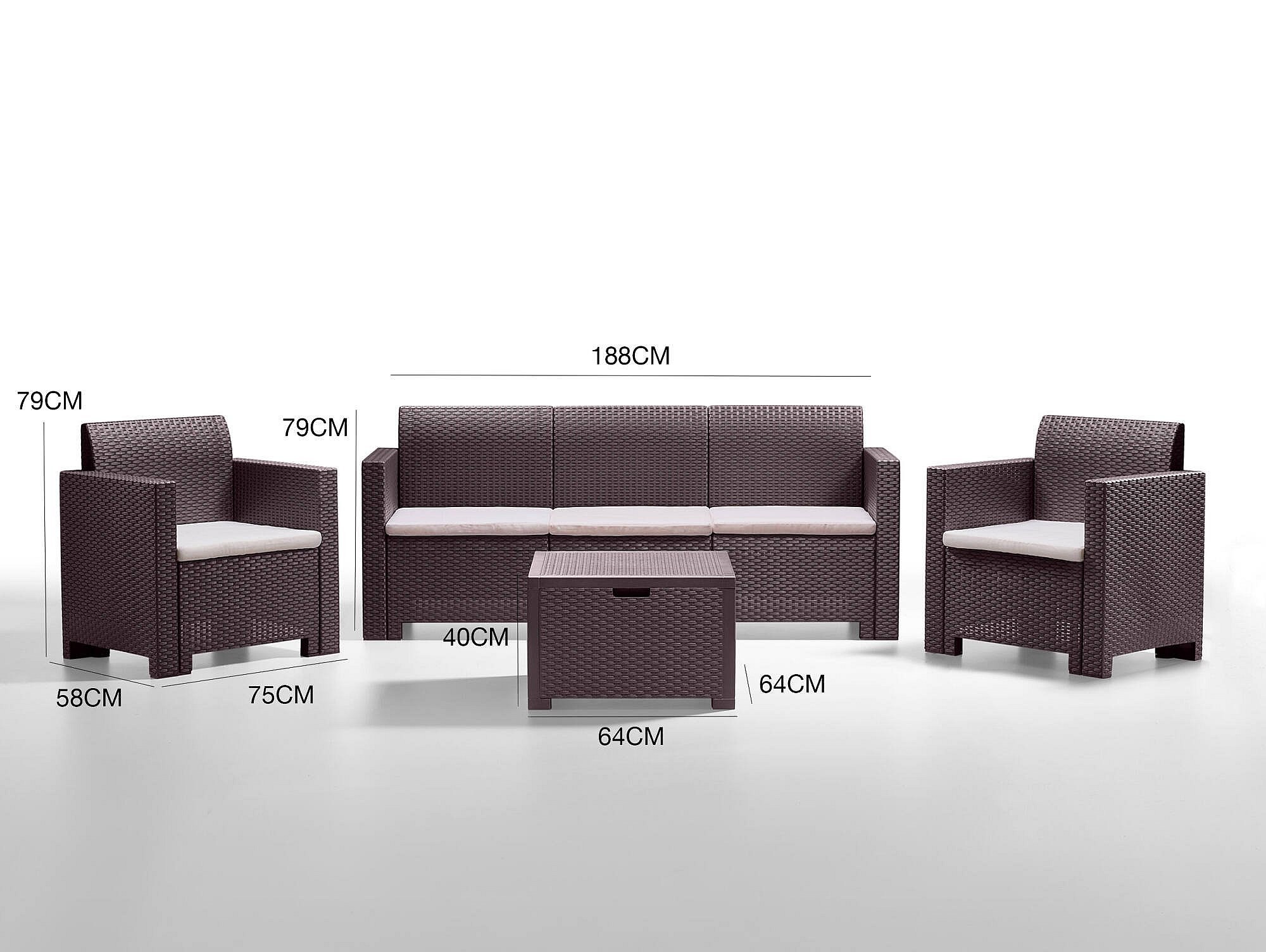 Ensemble de salon d'extérieur Dcorre, Ensemble de jardin avec coussins, Ensemble de salon d'intérieur effet rotin, 100% Made in Italy, Marron