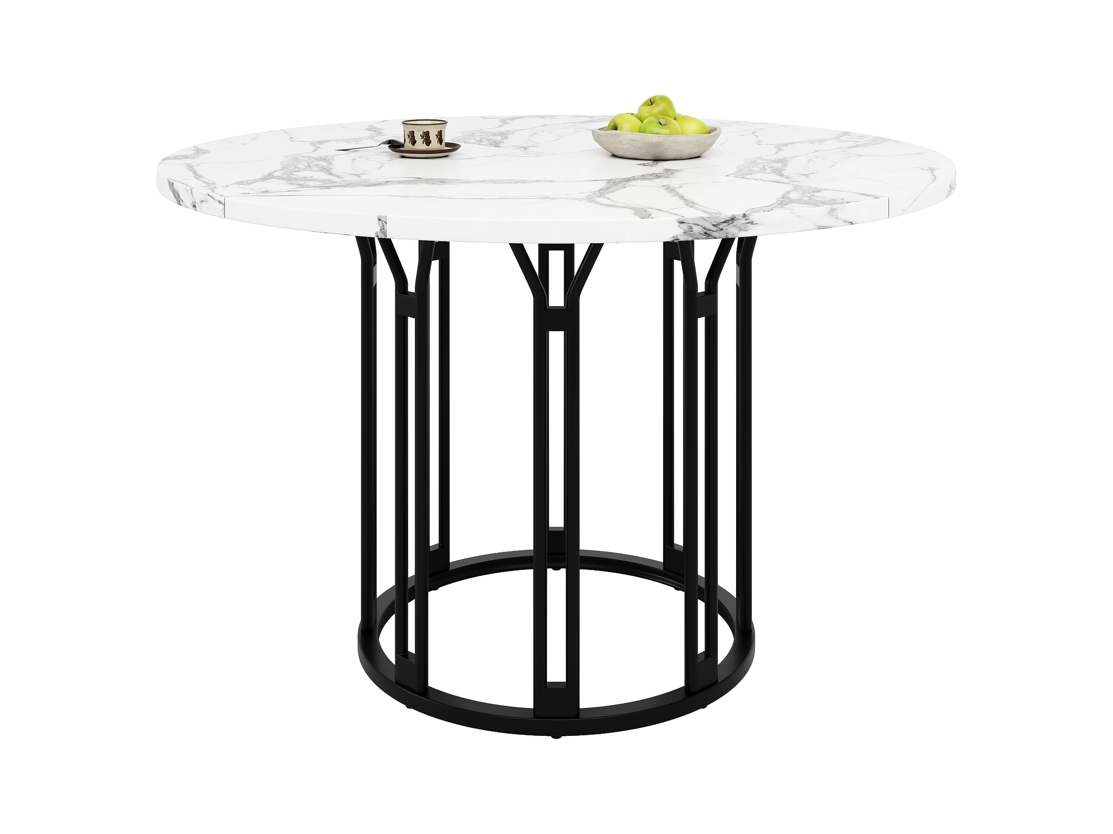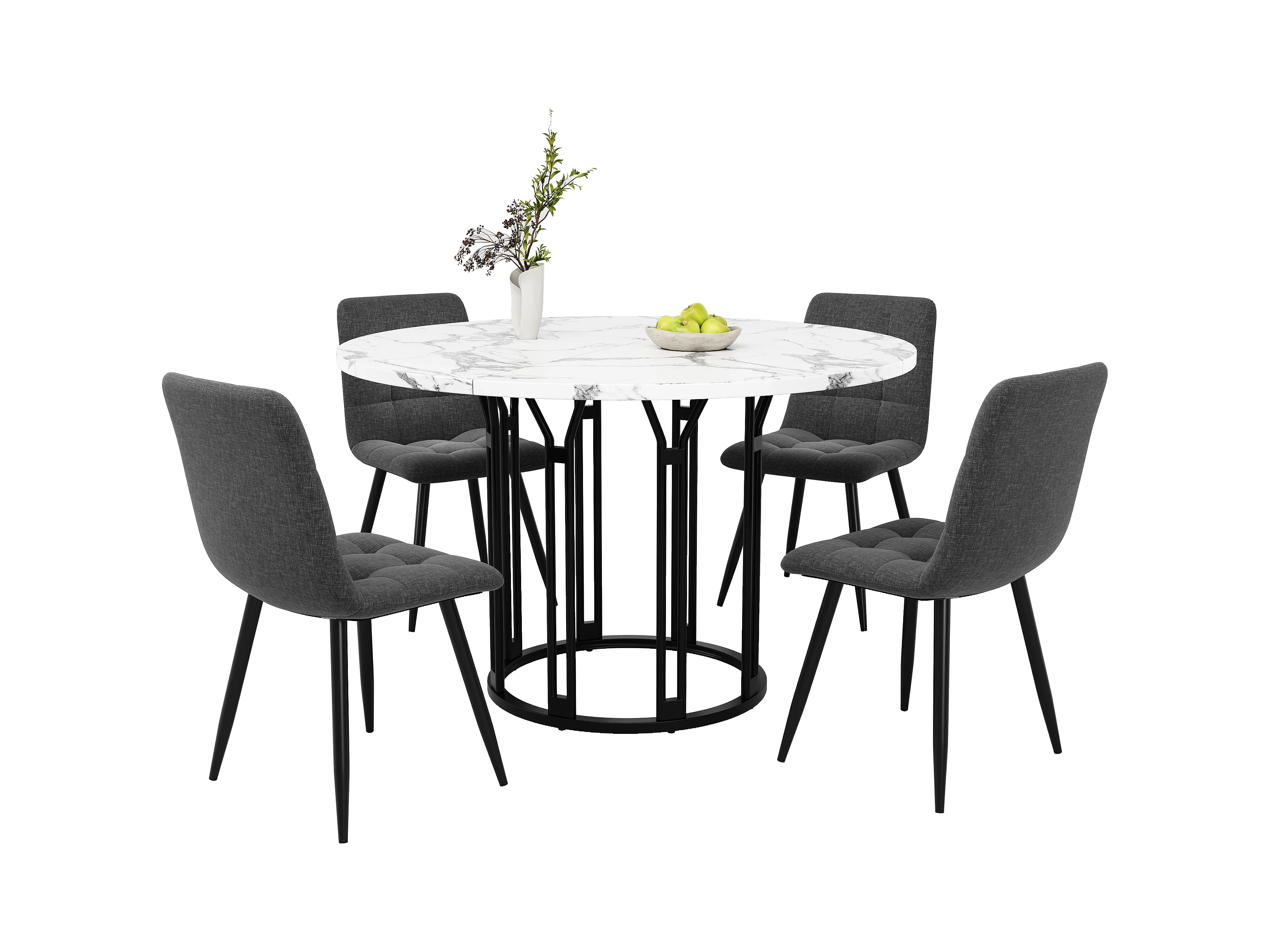 Ensemble de table à manger 100 x 100 x 74 cm + 4 chaises - table plateau en marbre - MDF + Métal - noir