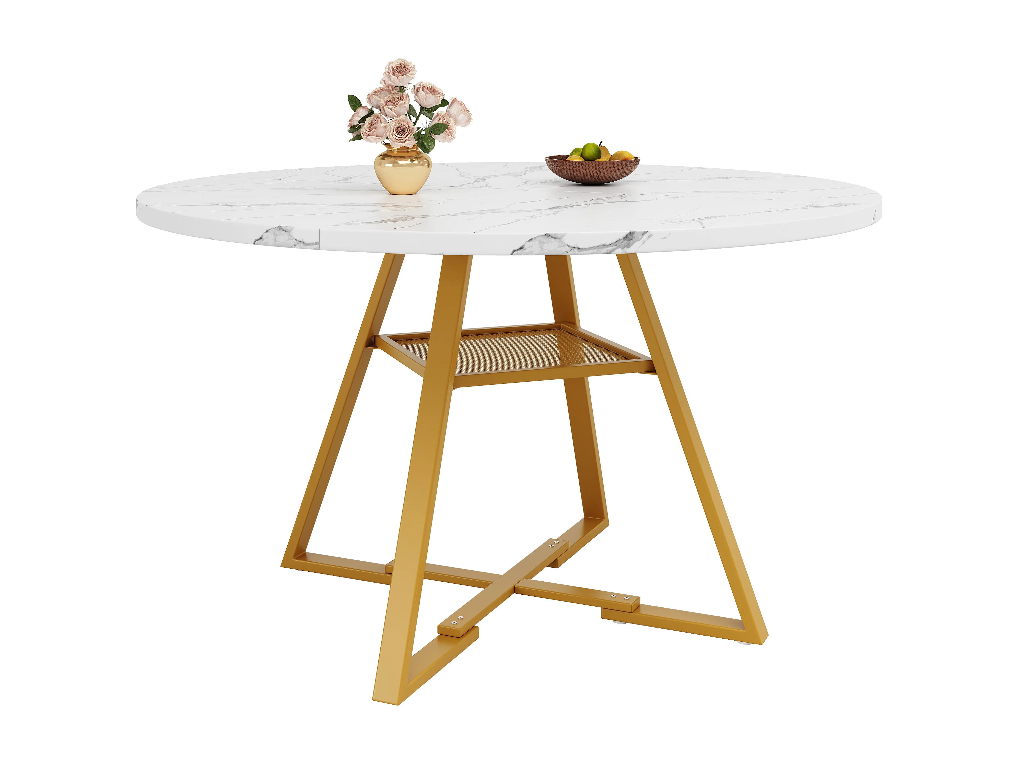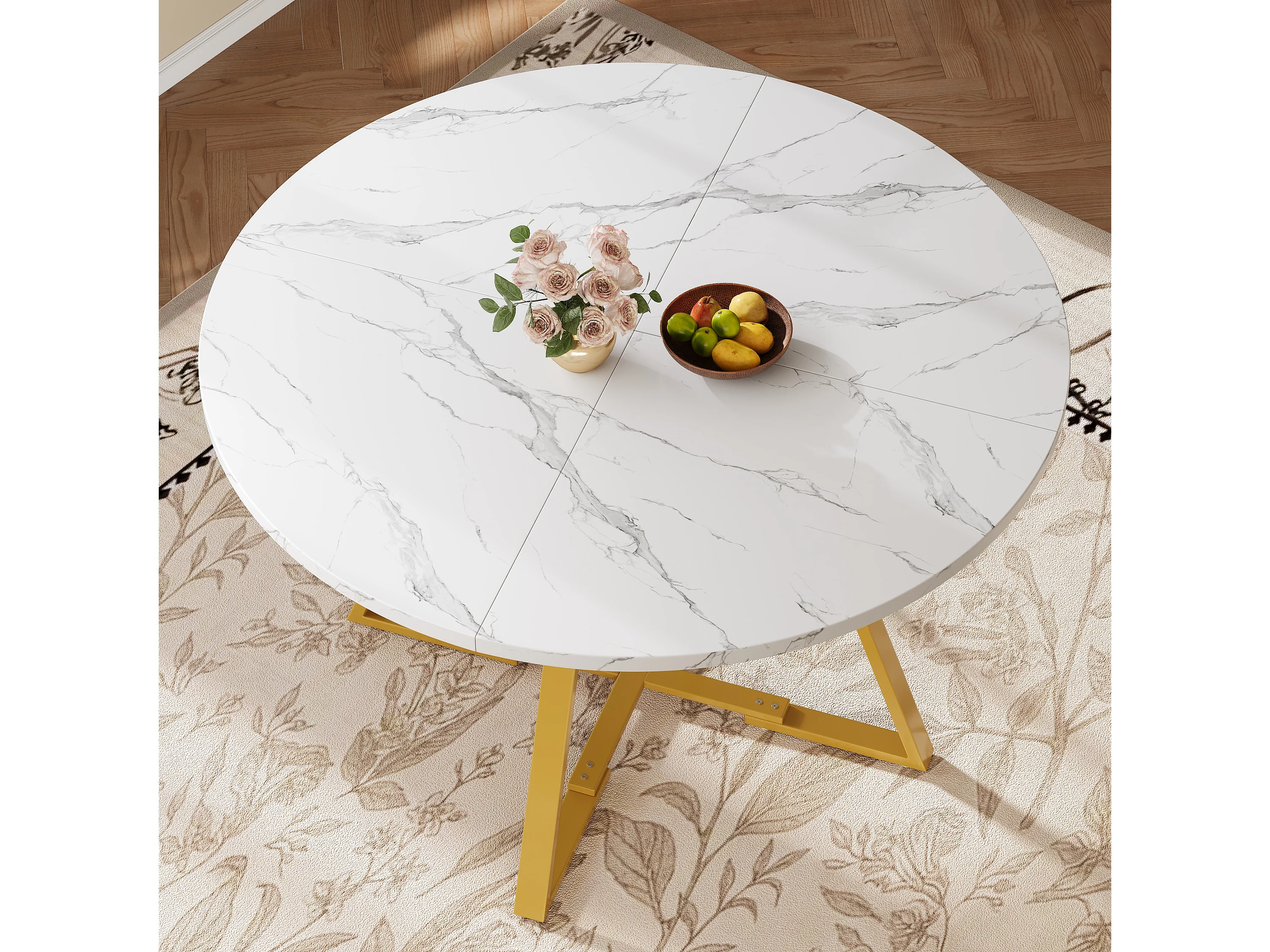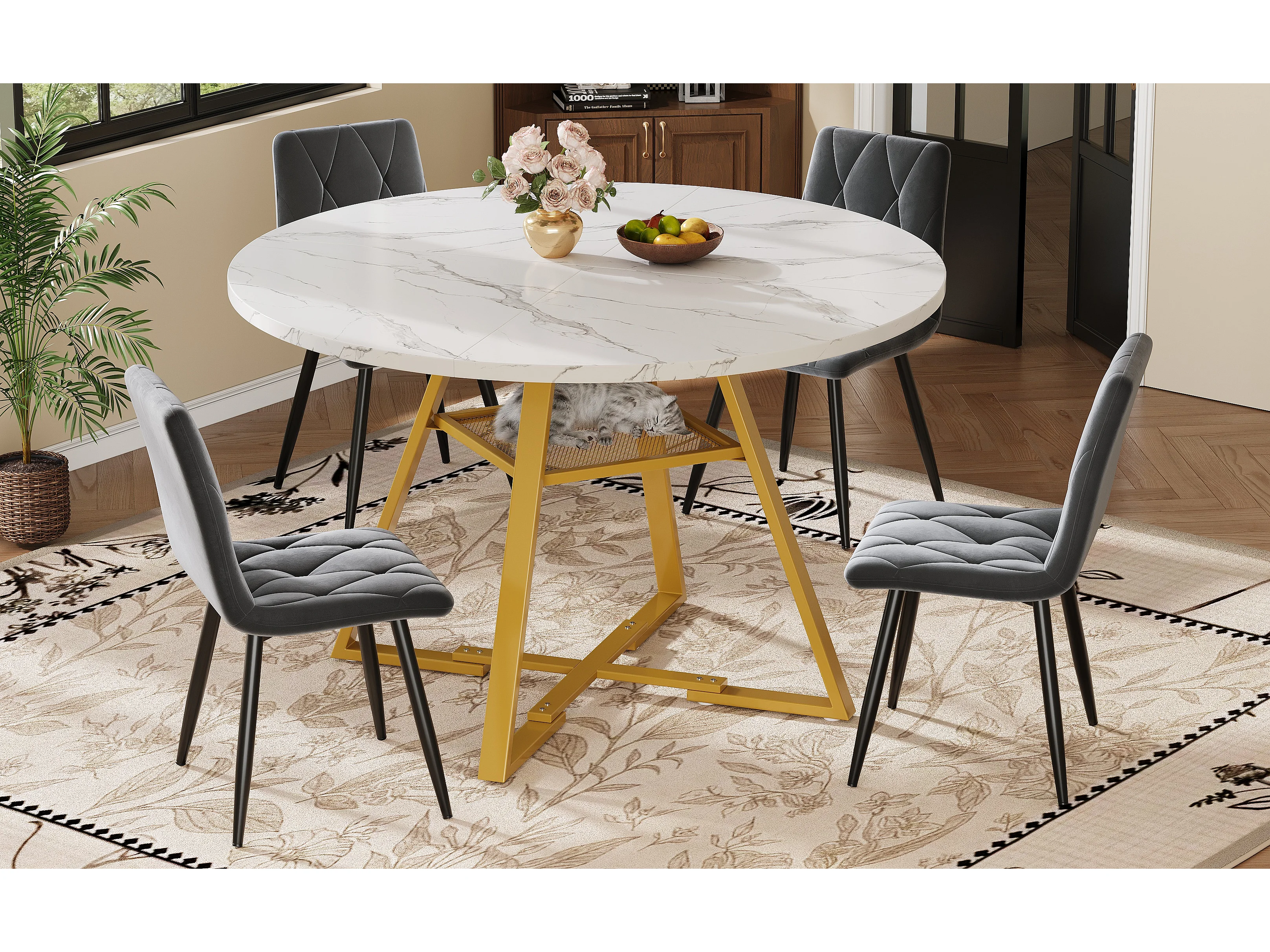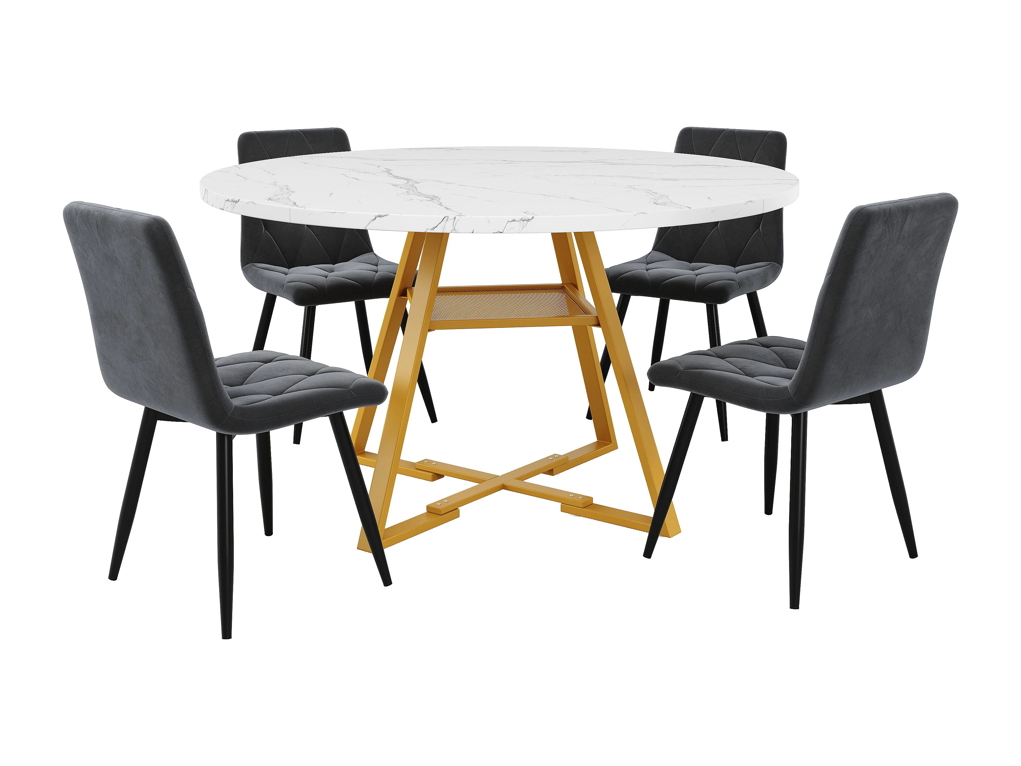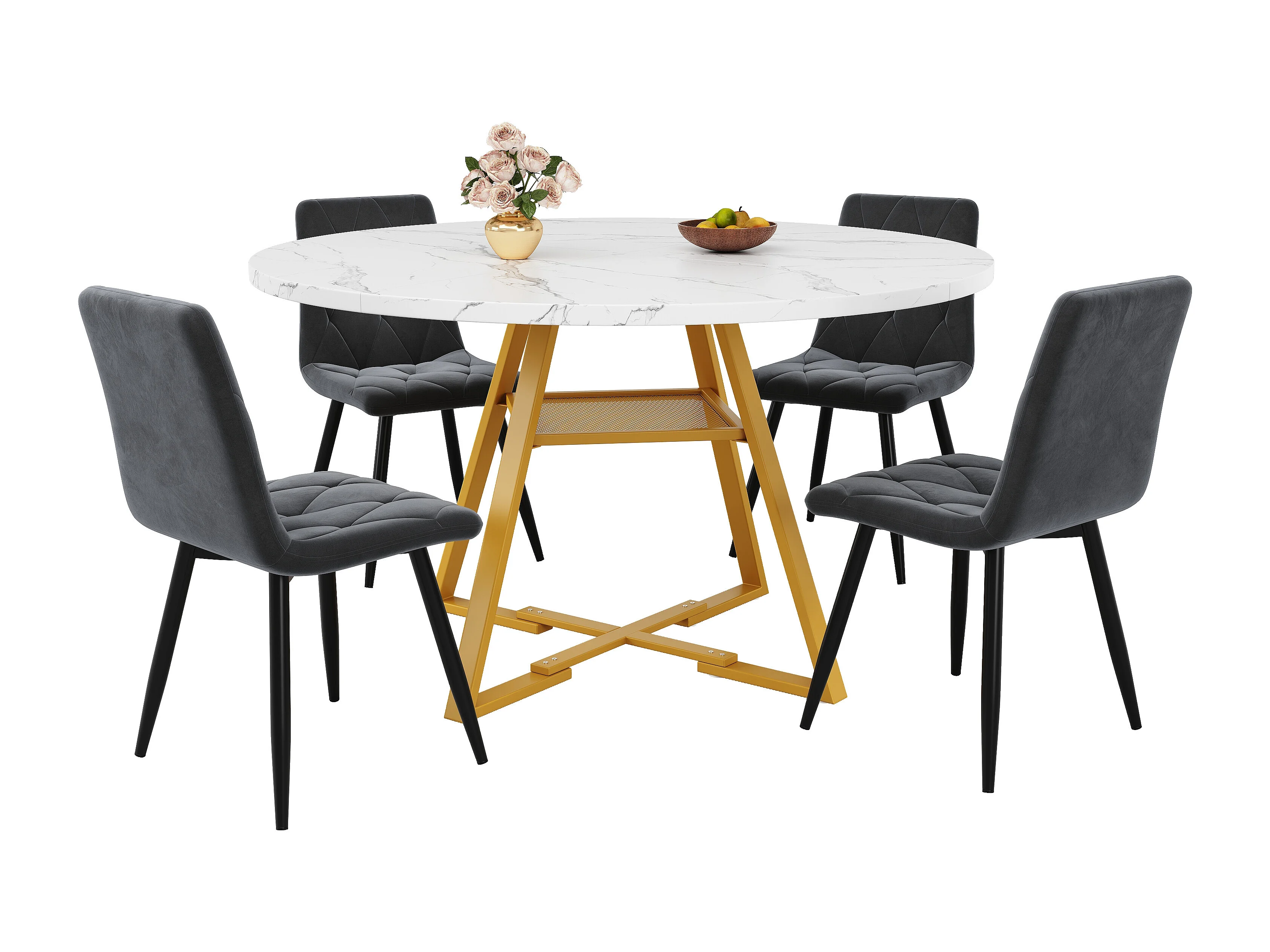 Ensemble de table à manger (5 pièces)- table 120 x 120 x 75 cm + 4 chaises velours - MDF + Métal - blanc