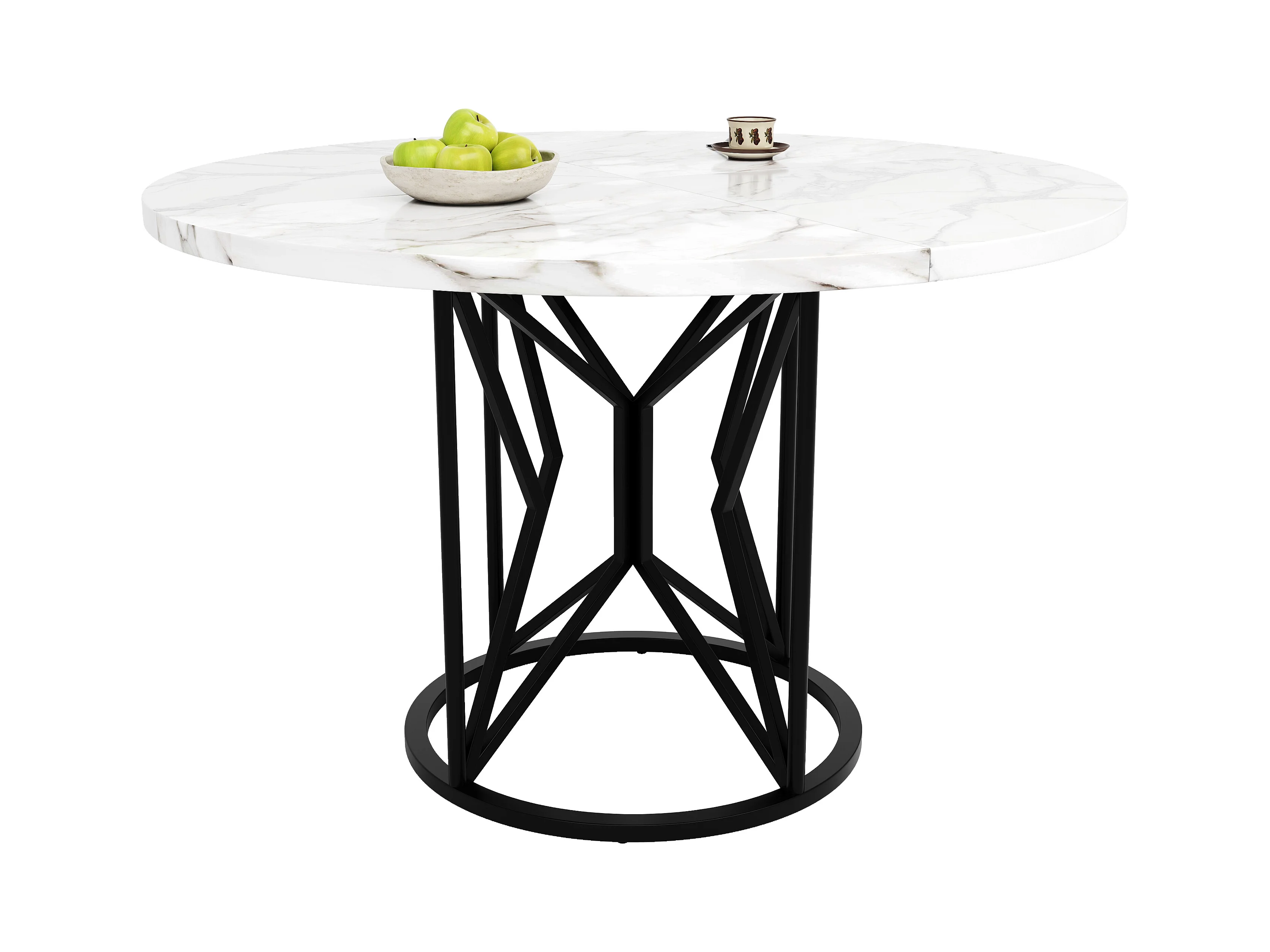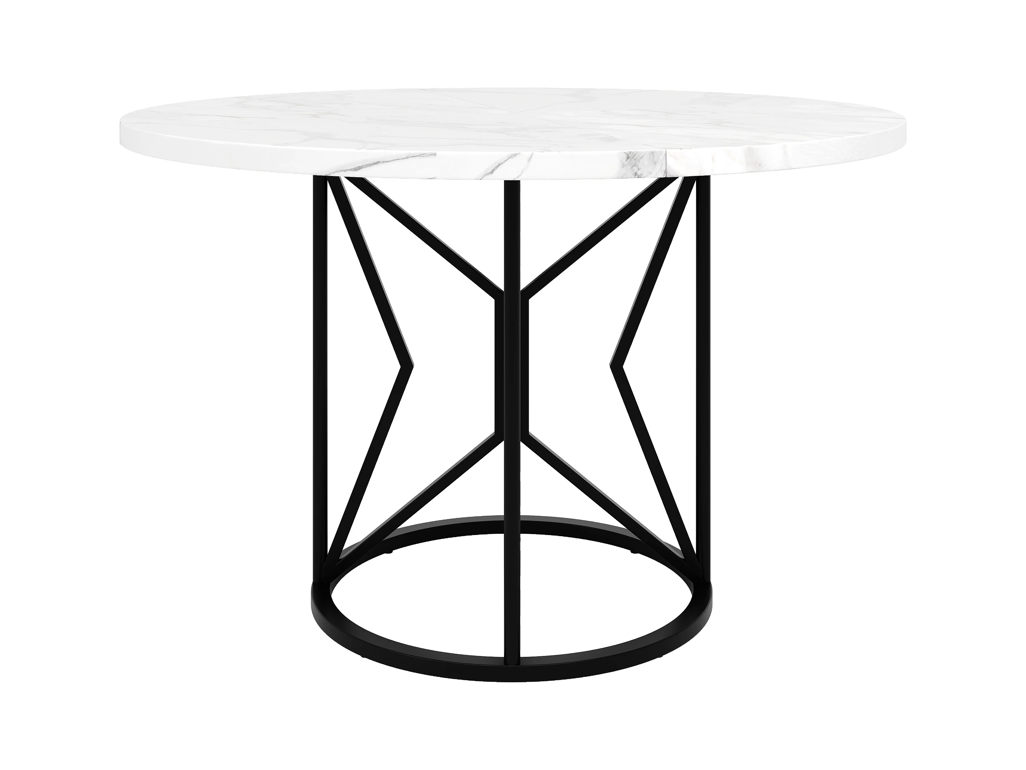 Table à manger avec 4 chaises, cadre en métal, surface en faux marbre noir