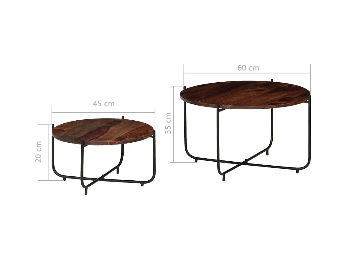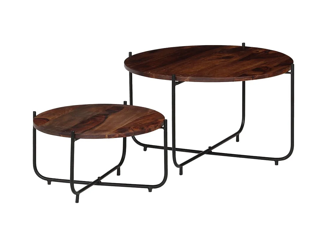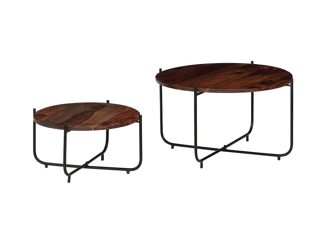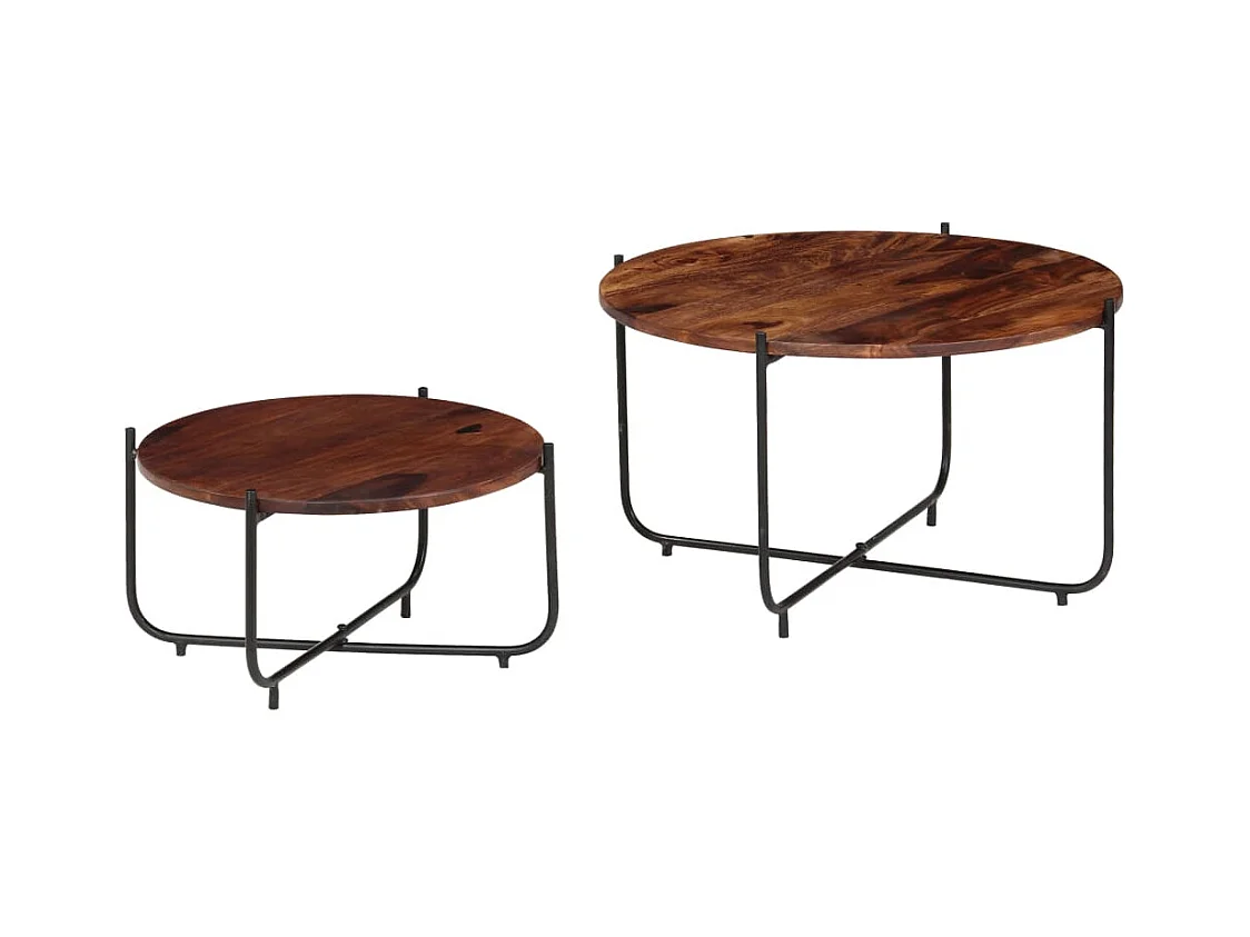 Table basse 2 pcs Bois de manguier brut Rond 40/50 cm
