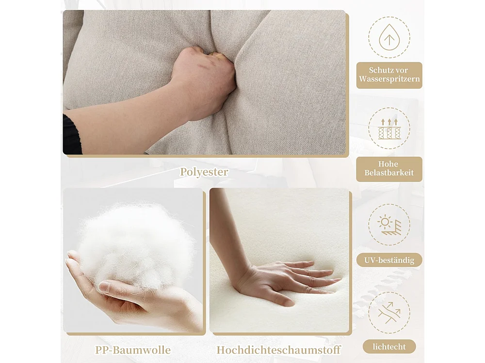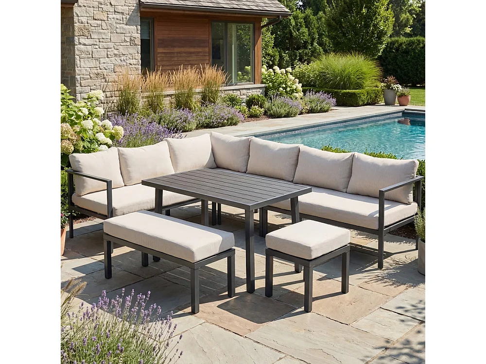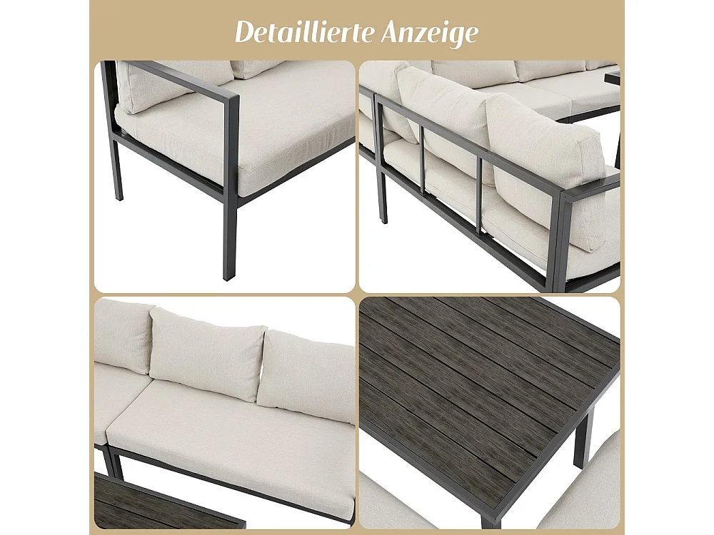 Ensemble de table et chaises de jardin, 9 places, structure en tubes d'acier galvanisé, plateau en bois synthétique,beige