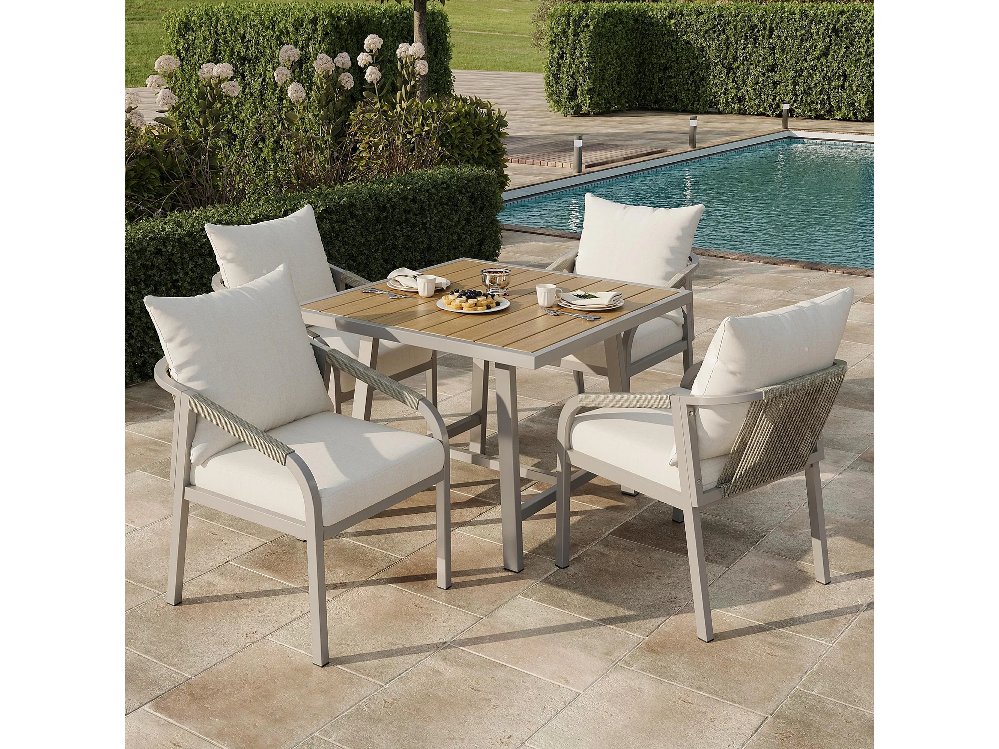Ensemble de table et chaises de jardin, en tubes d'acier galvanisé, avec structure en corde tressée, couleur kaki et beige