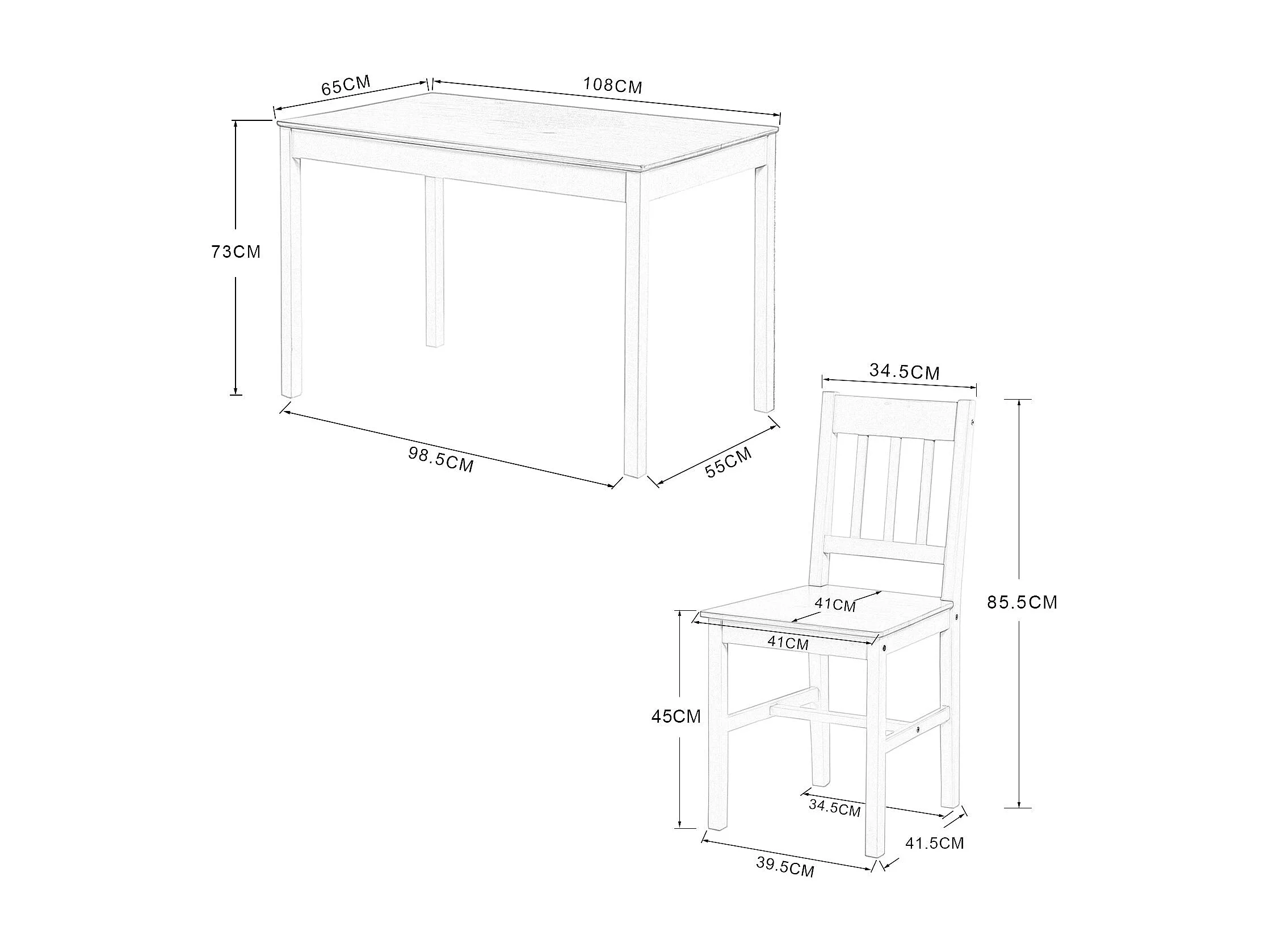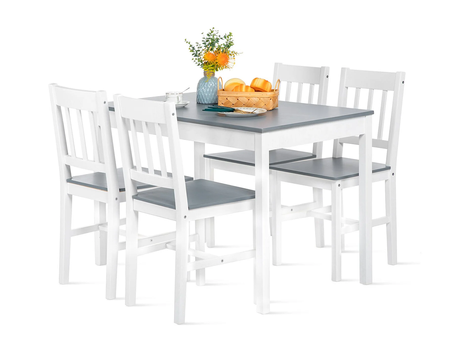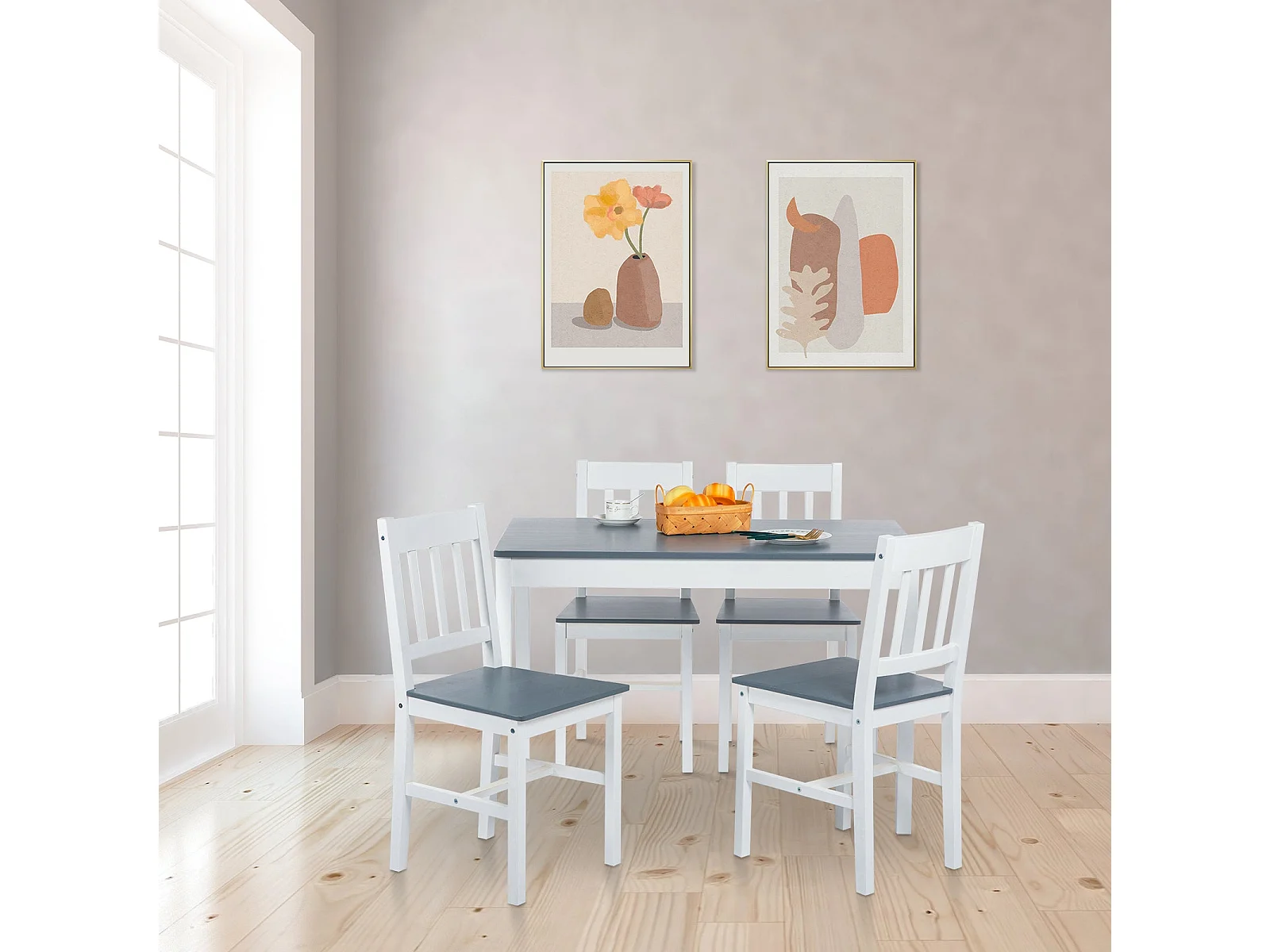 Ensemble de Table et Chaises en Pin Pur - 1 Table et 4 Chaises Assorties Gris et Blanc