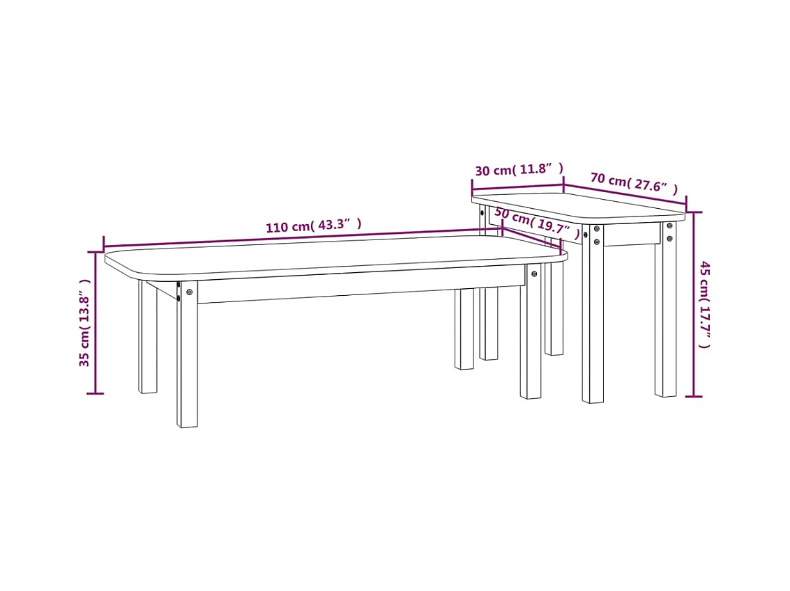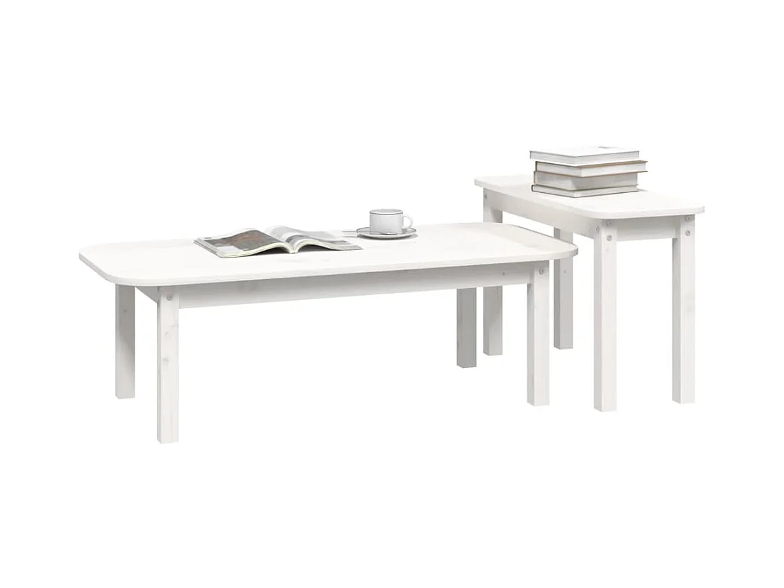 Ensemble de tables basses 2 pcs Blanc Bois massif de pin