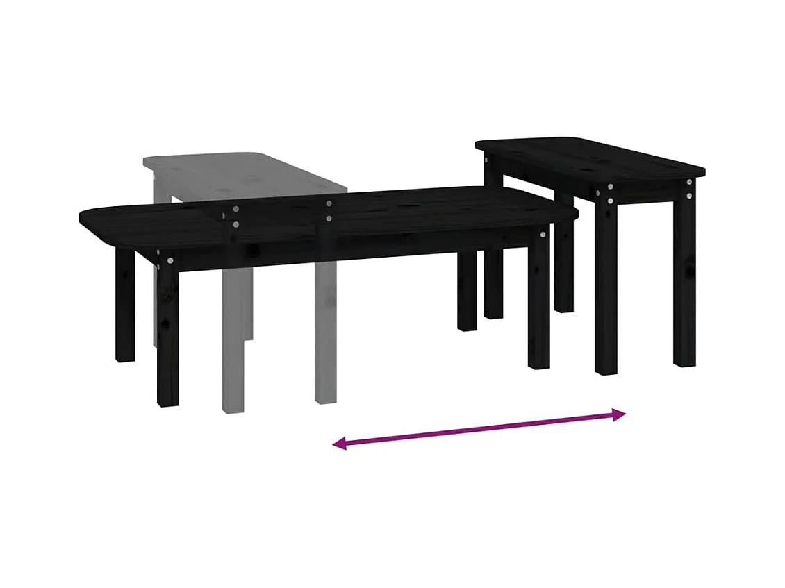 Ensemble de tables basses 2 pcs Noir Bois massif de pin