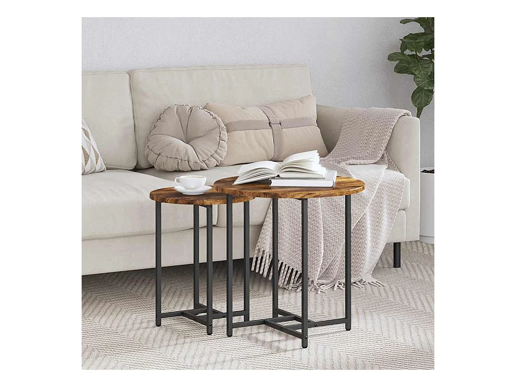 Ensemble de tables d'appoint 2 pièces Bois ancien et noir