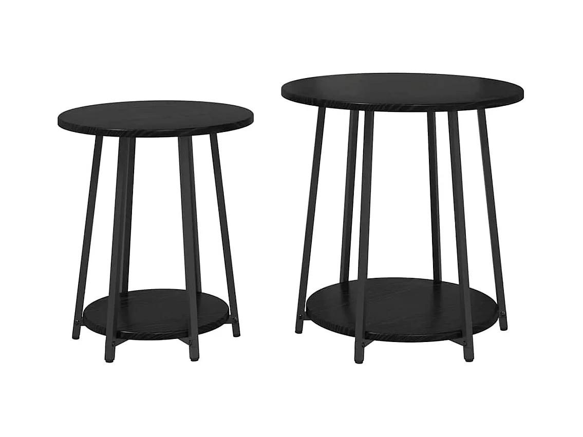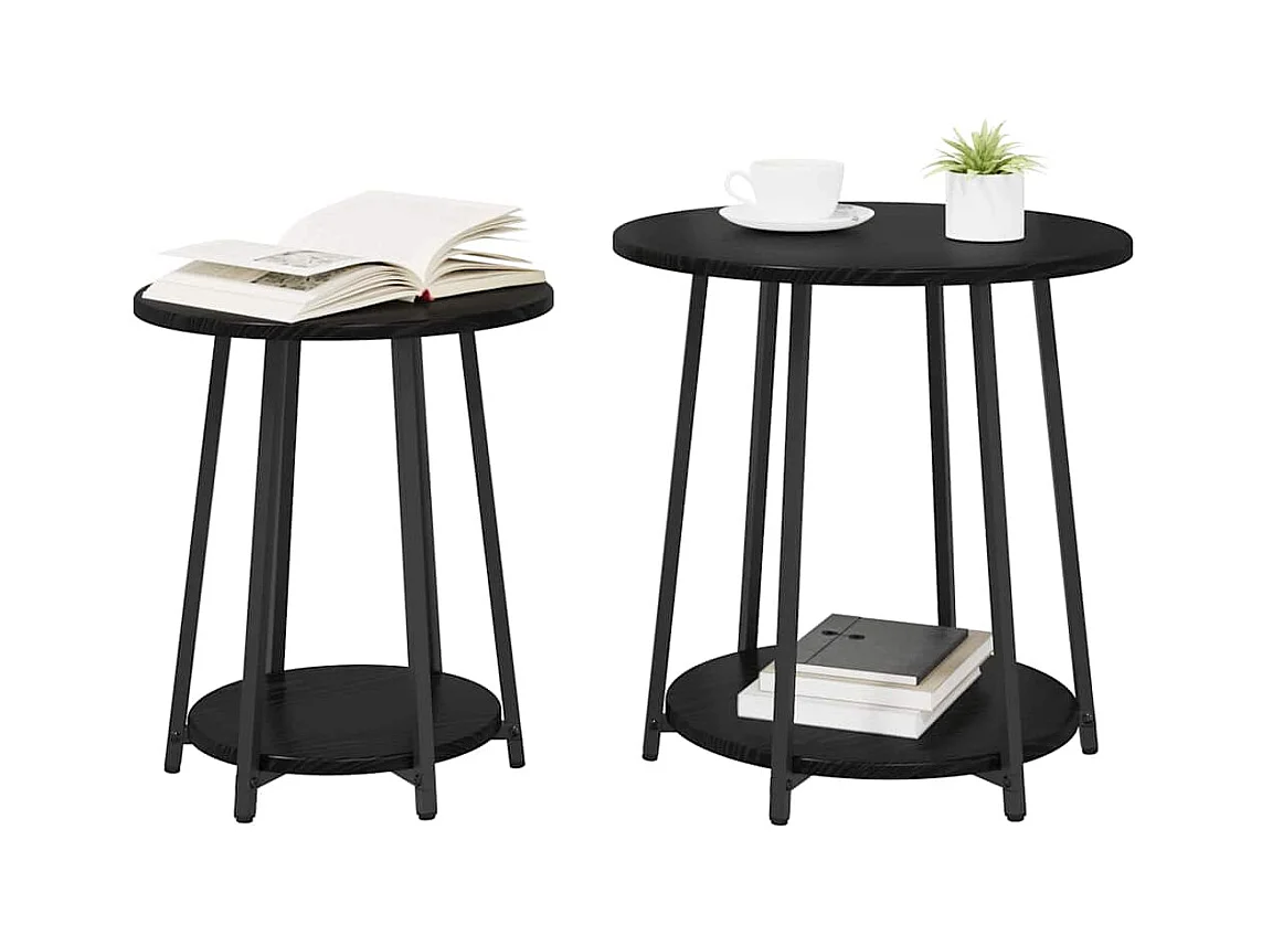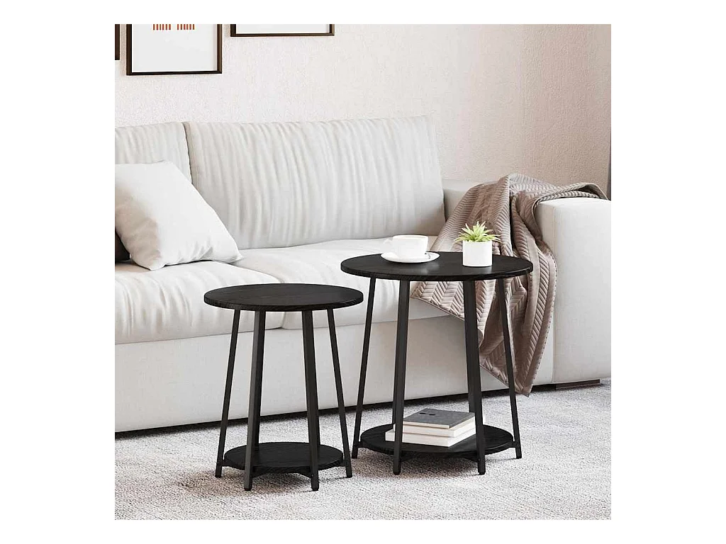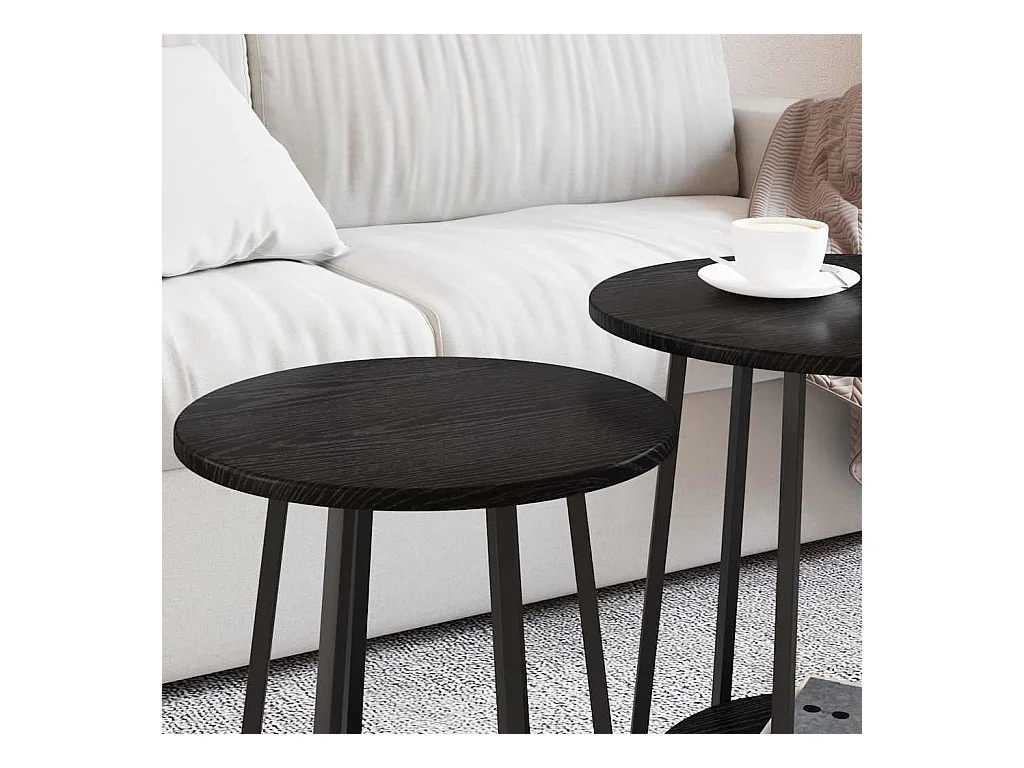 Lot de 2 tables basses gigognes rondes bois noir – Collection LAVE – Style industriel