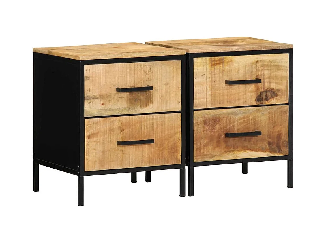 Ensemble de tables de chevet 2 pcs 40x35x50 cm Bois massif brut de manguier